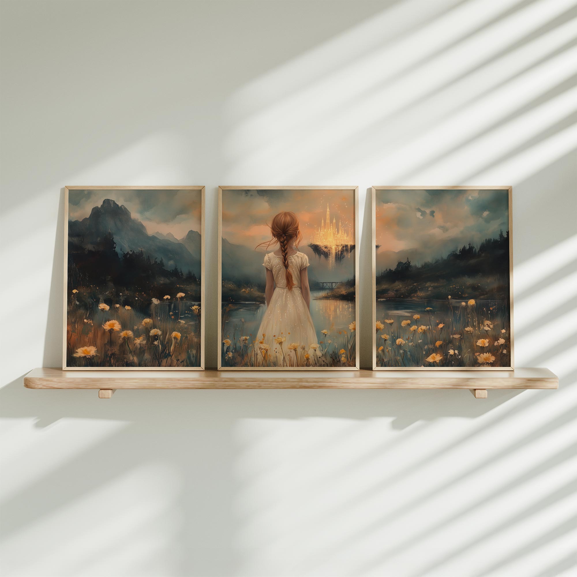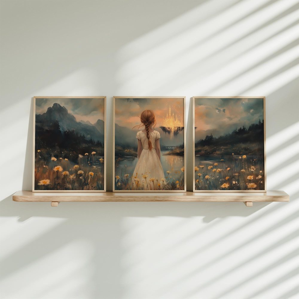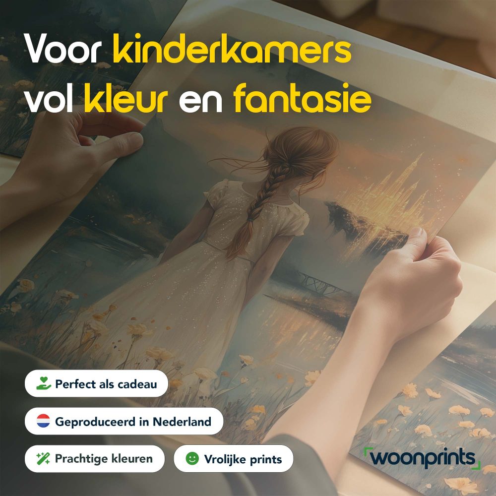 Terug naar collectie / Kinderkamer posters / Bloemen posters / Dromerig Meisje bij Betoverend Kasteel