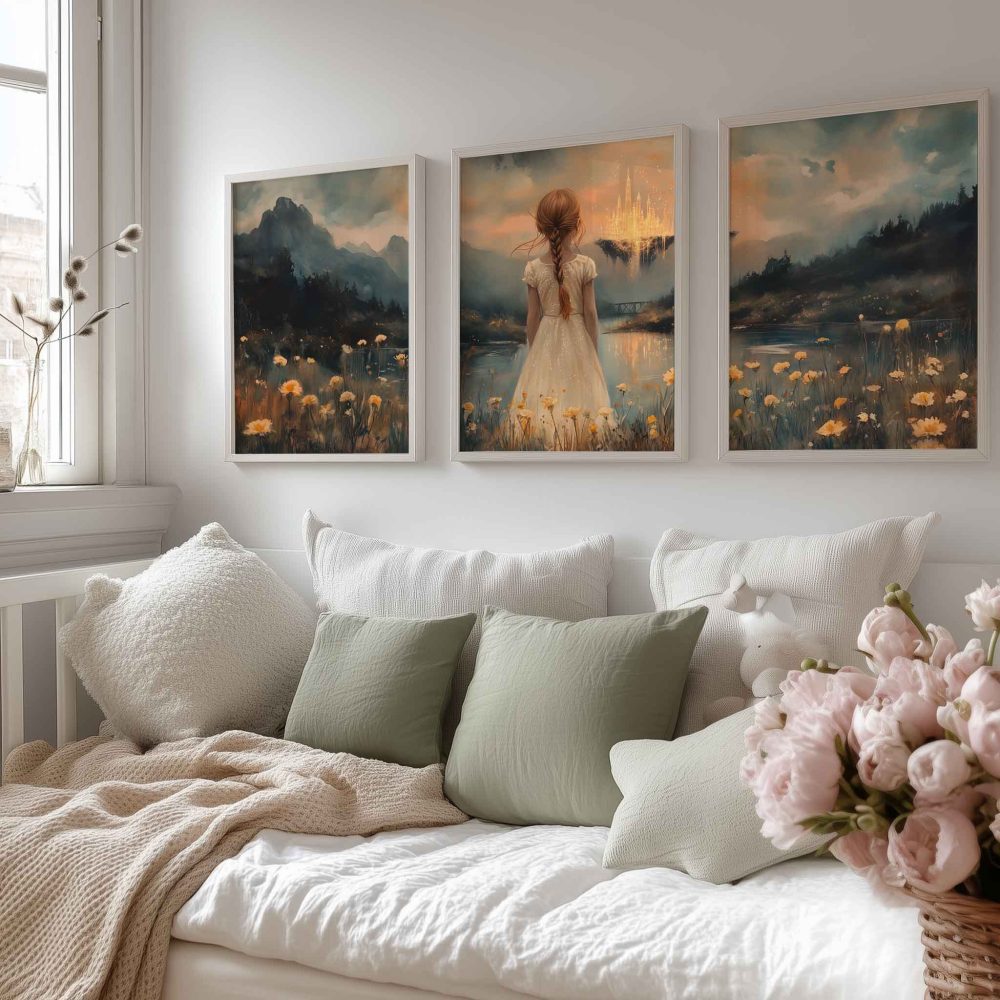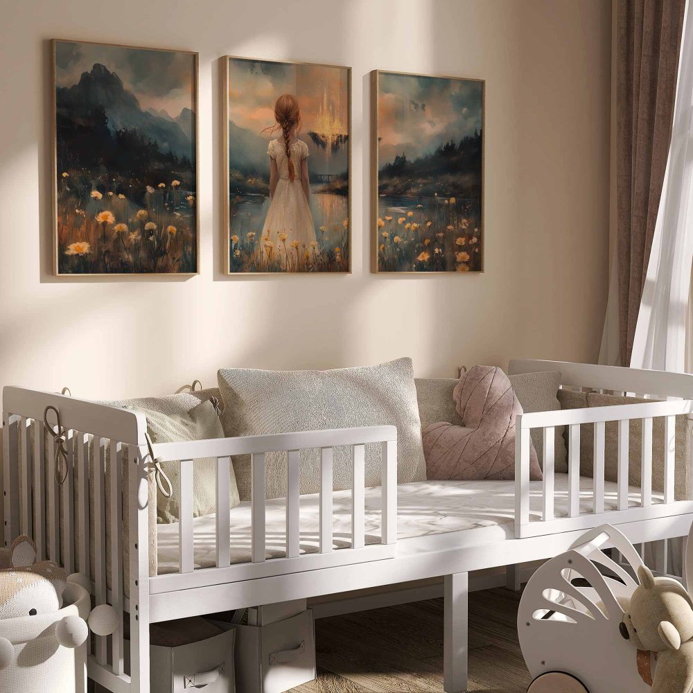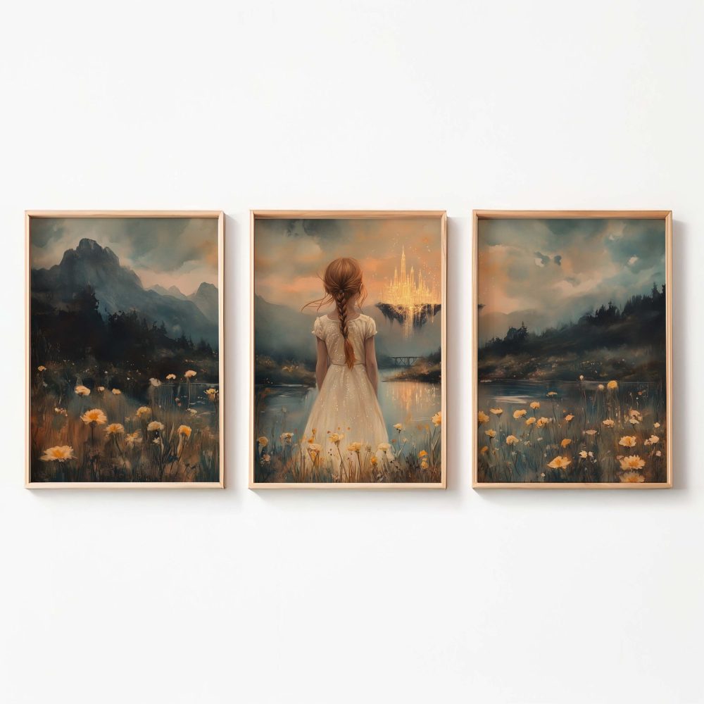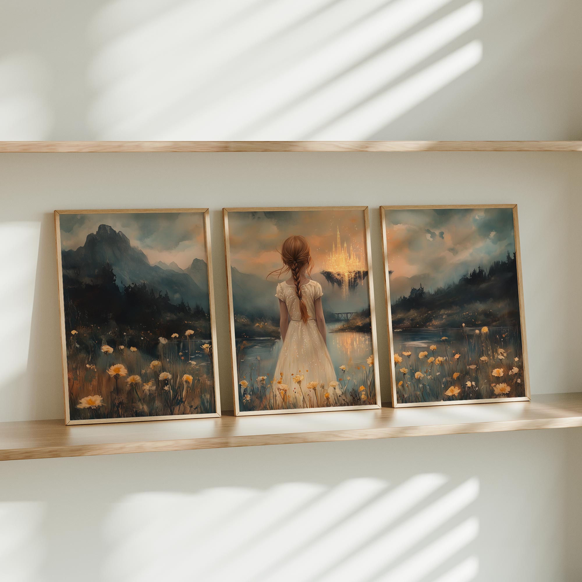 Terug naar collectie / Kinderkamer posters / Bloemen posters / Dromerig Meisje bij Betoverend Kasteel