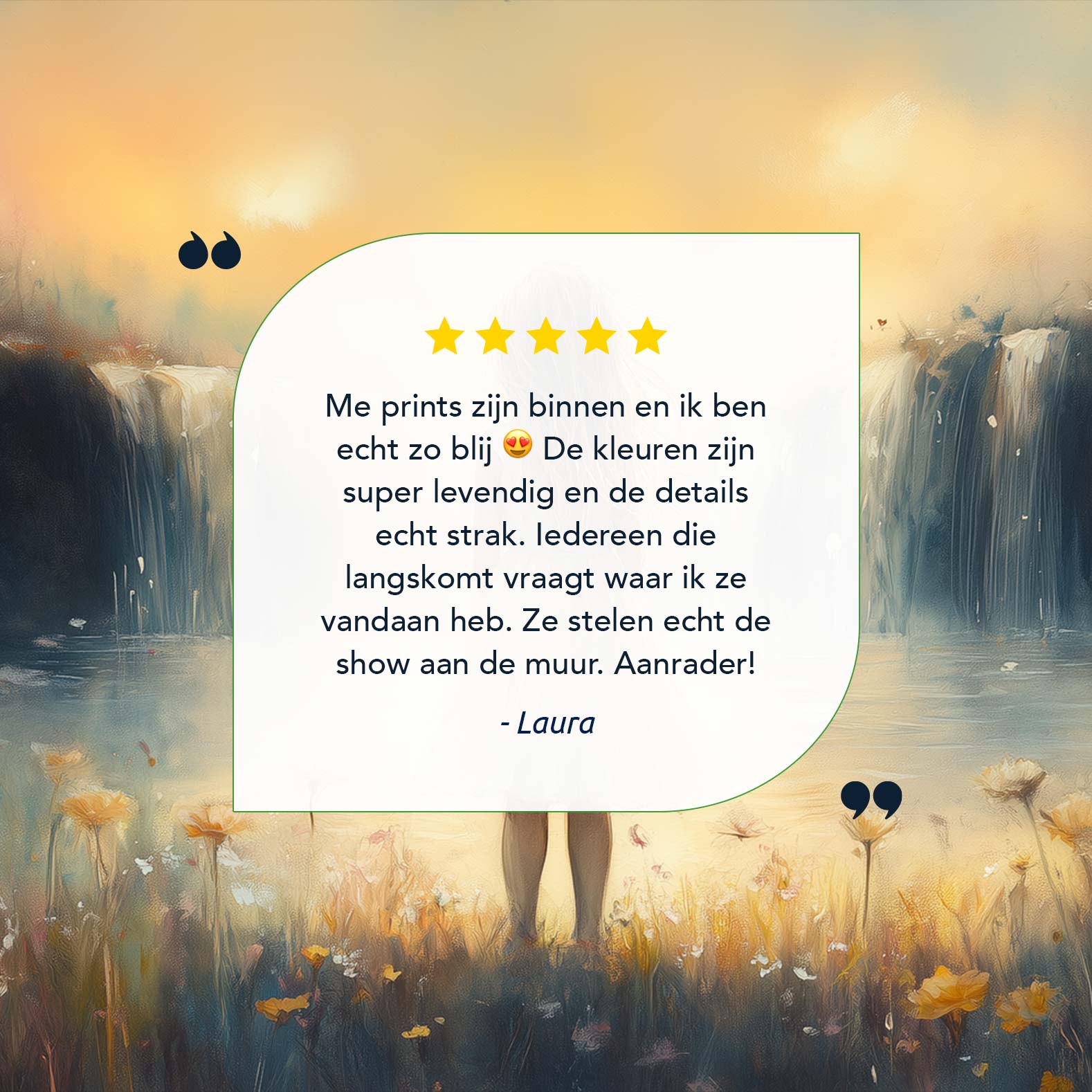 Dromerig Meisje bij Betoverende Waterval en Bloemenveld