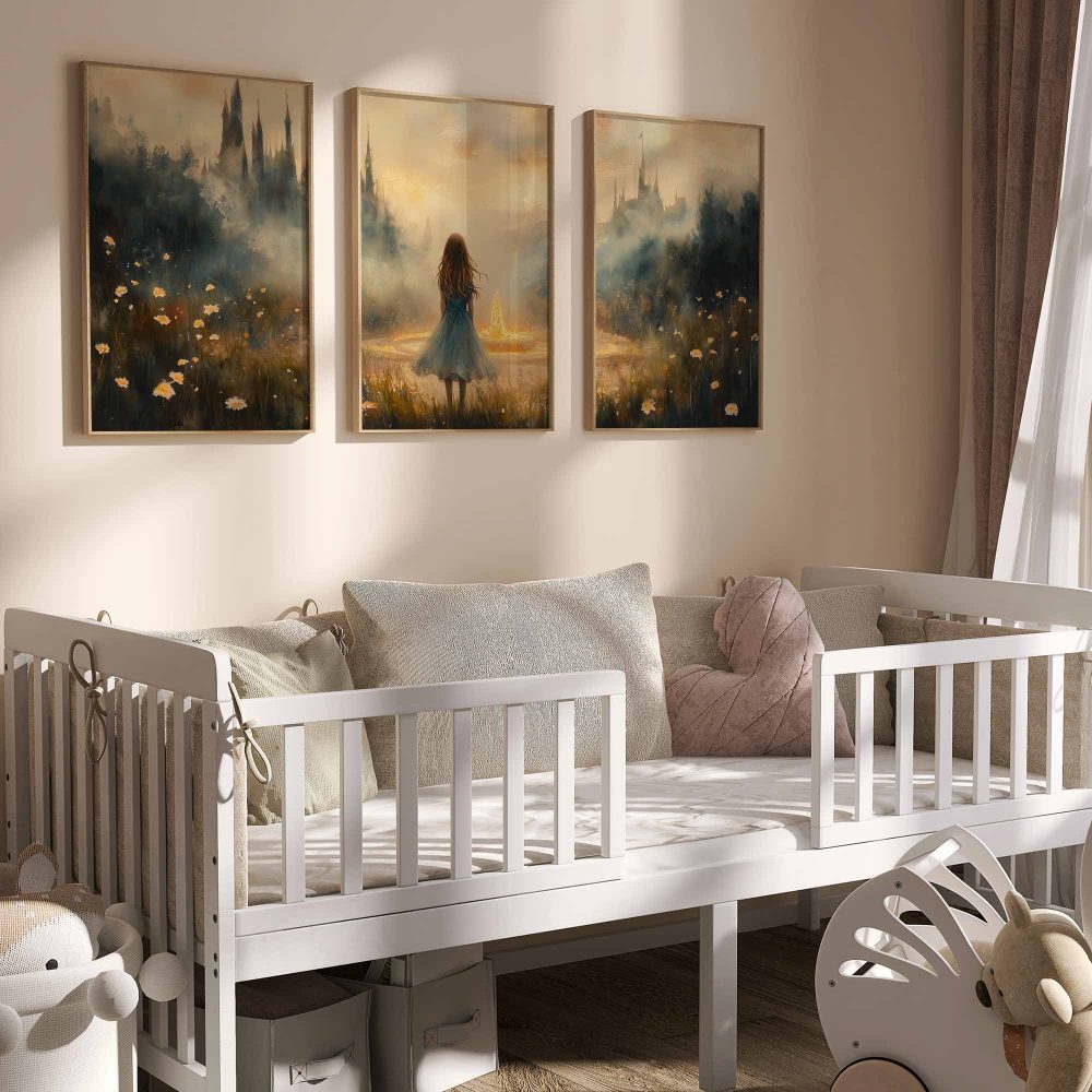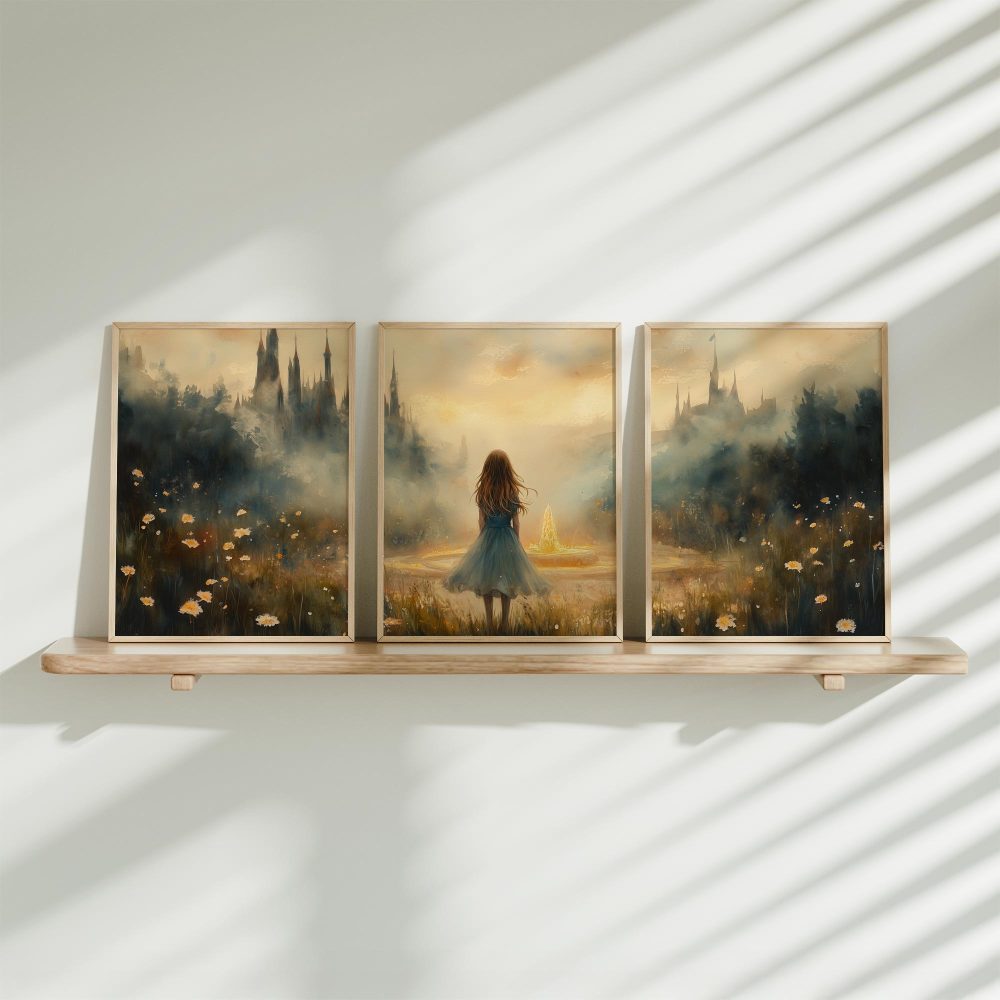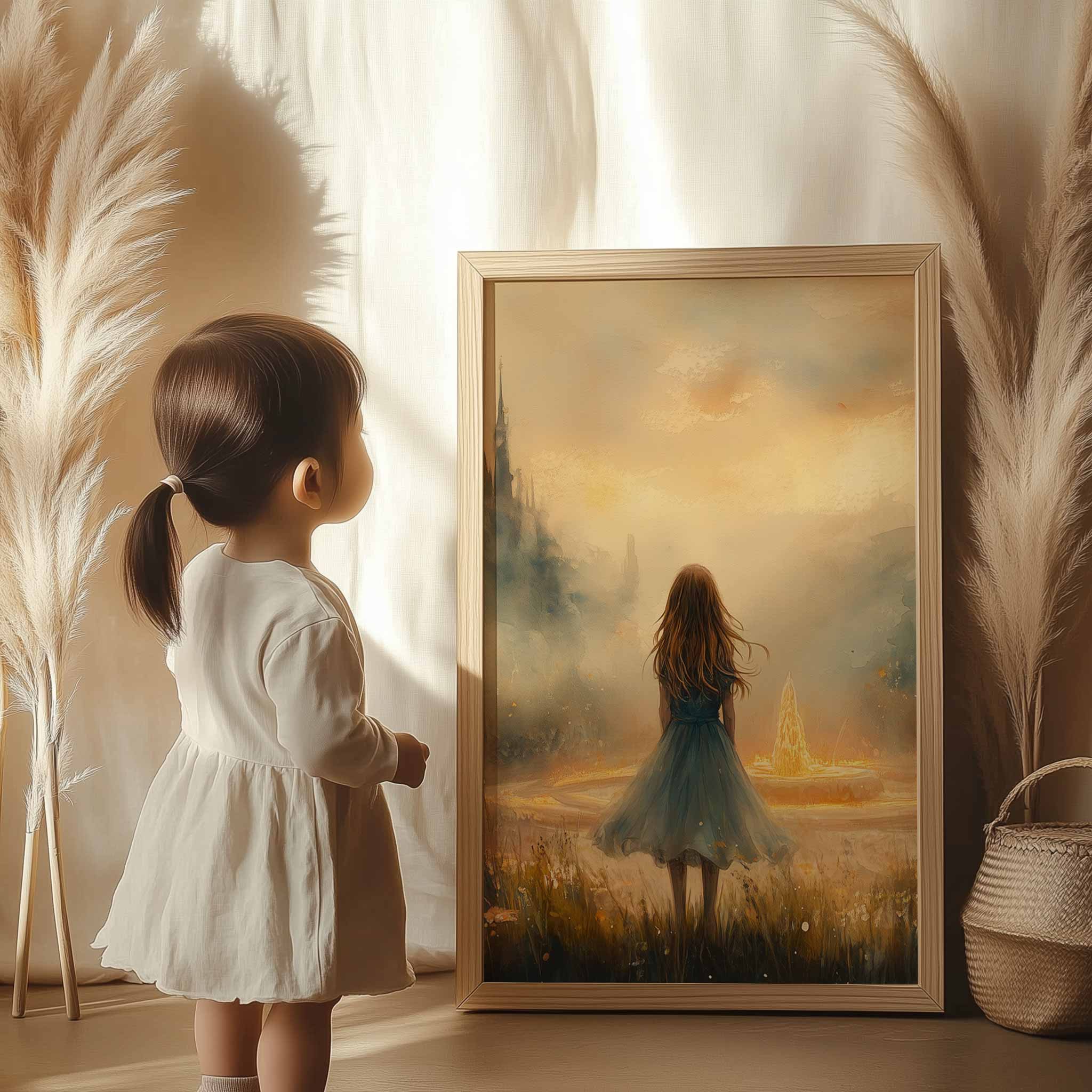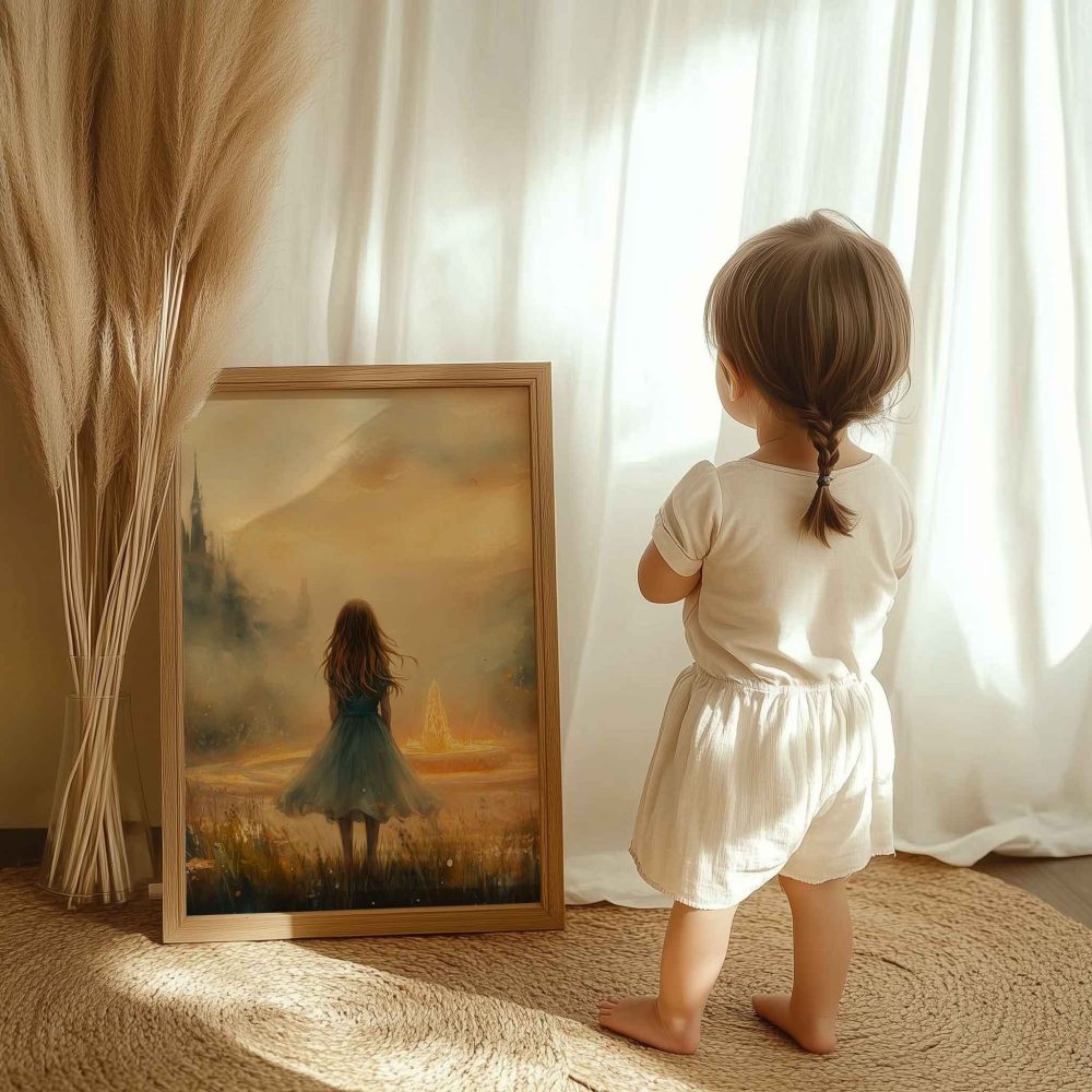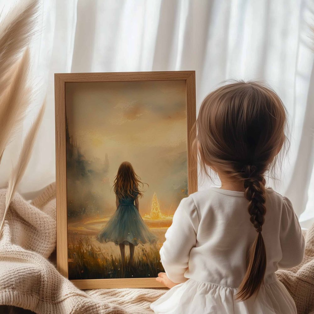 Terug naar collectie / Kinderkamer posters / Dromerig Meisje bij Fontein in Betoverend Landschap