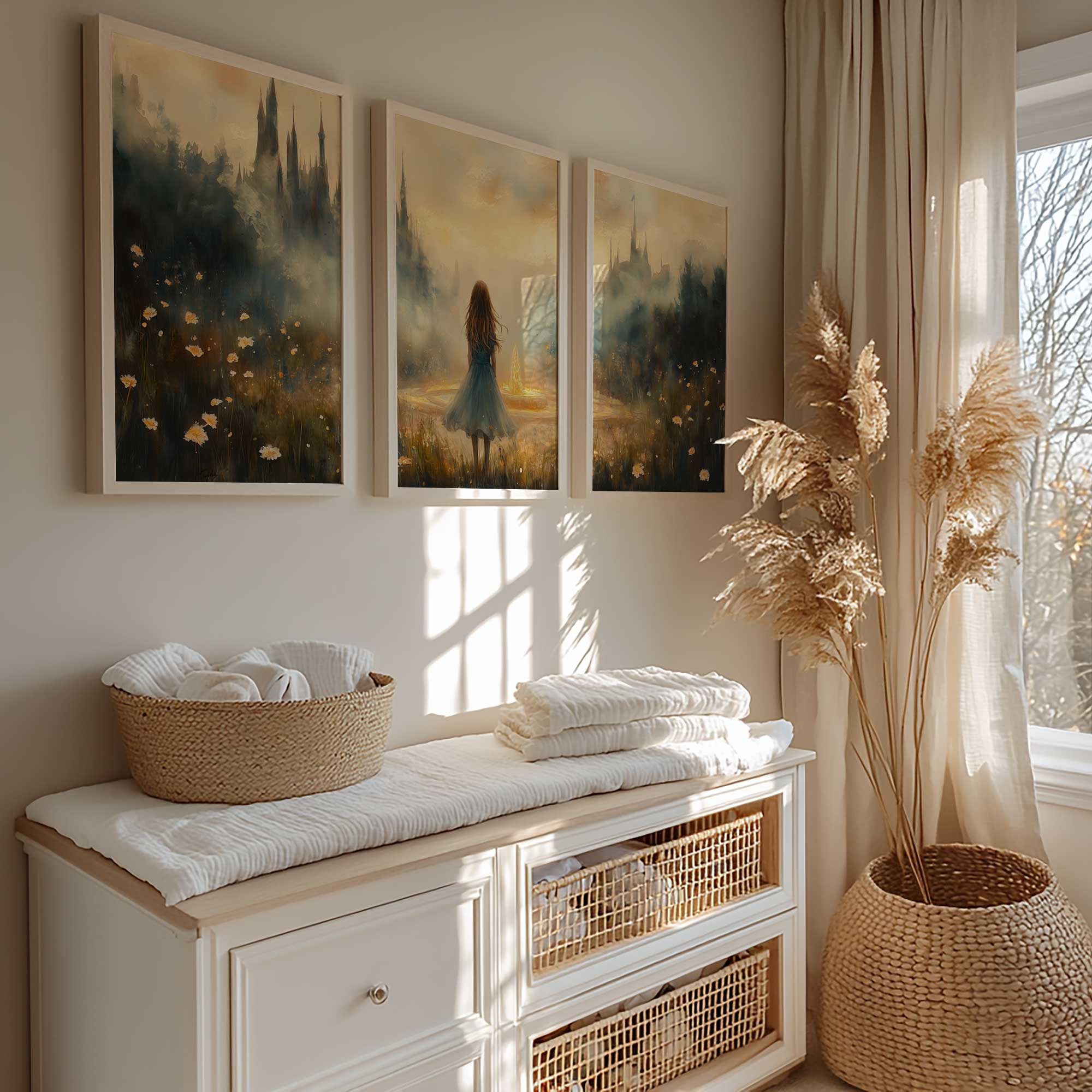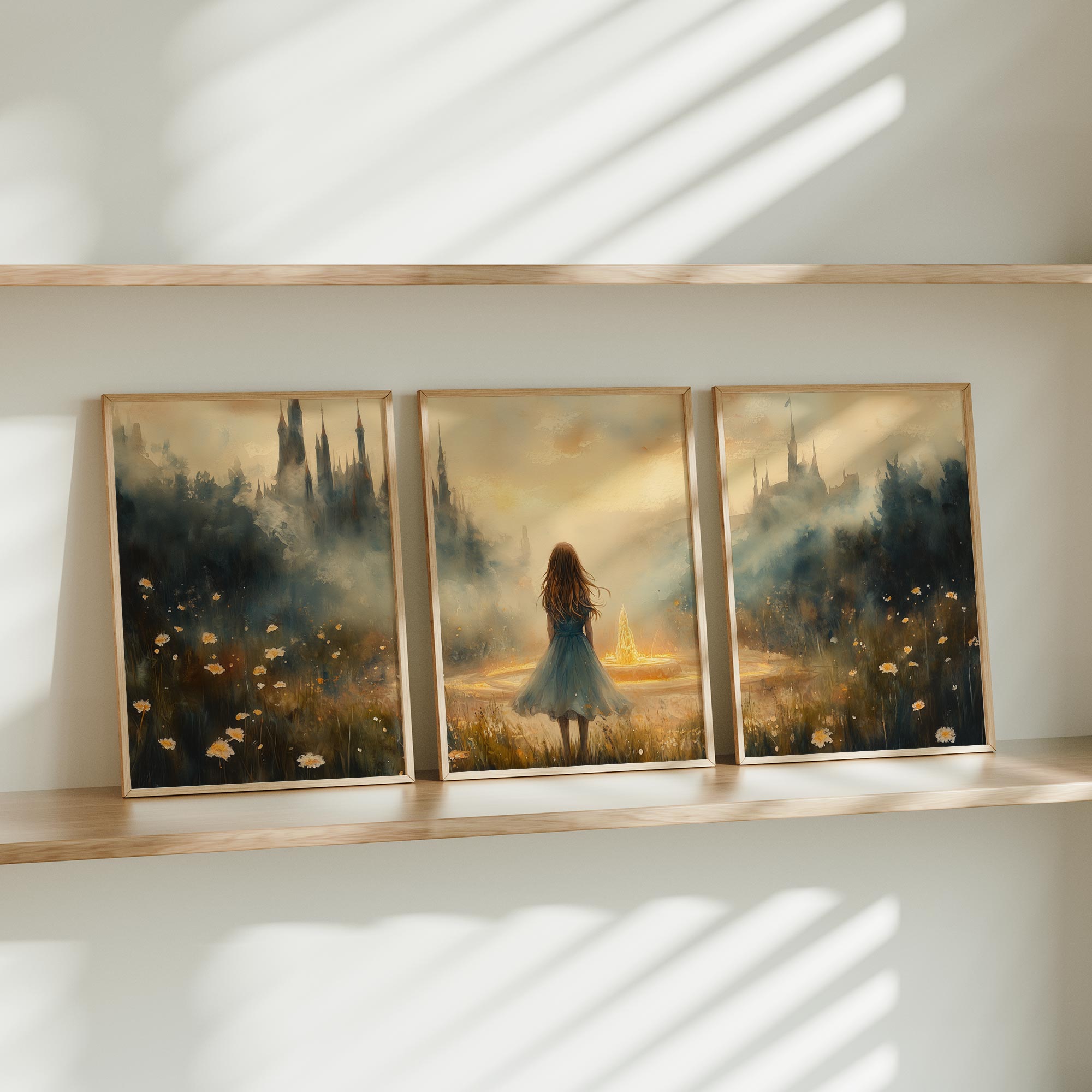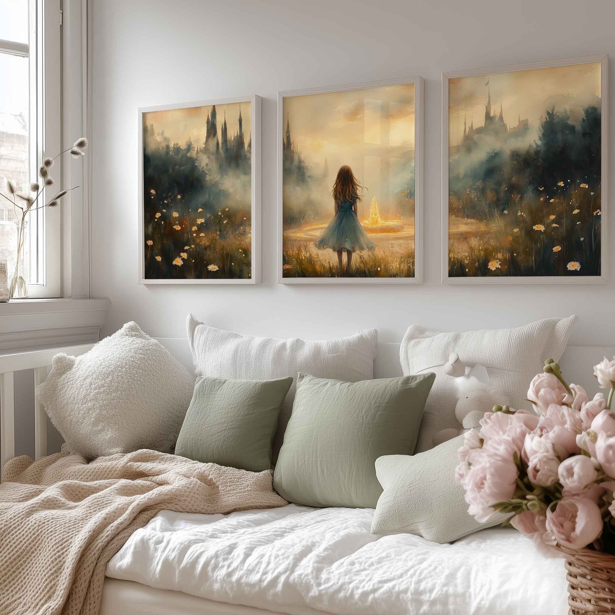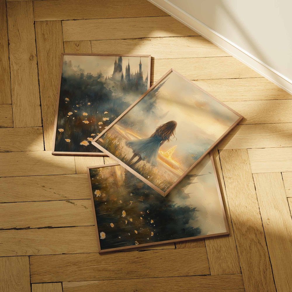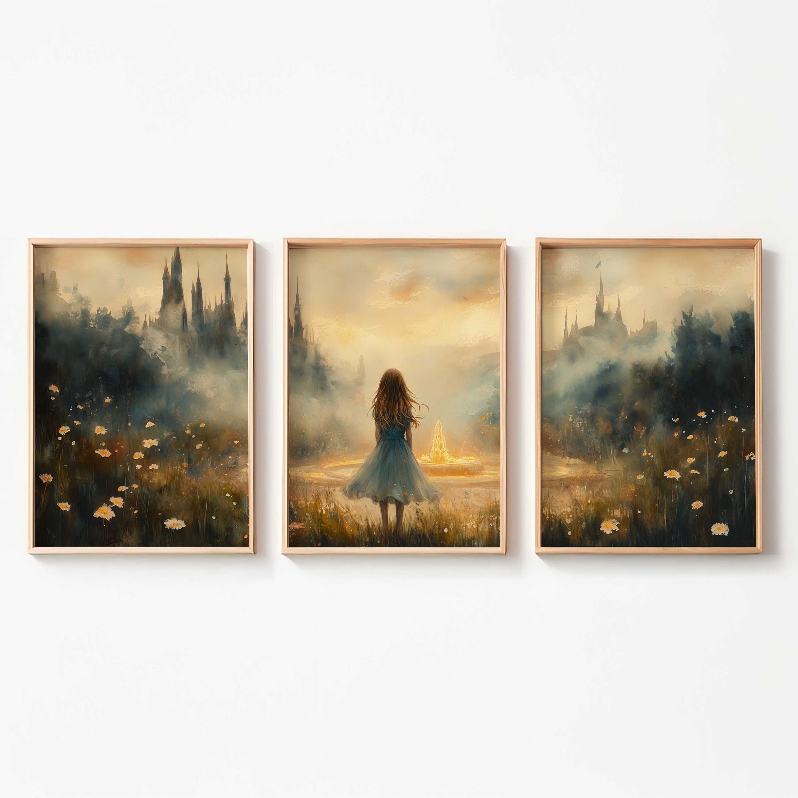Terug naar collectie / Kinderkamer posters / Dromerig Meisje bij Fontein in Betoverend Landschap