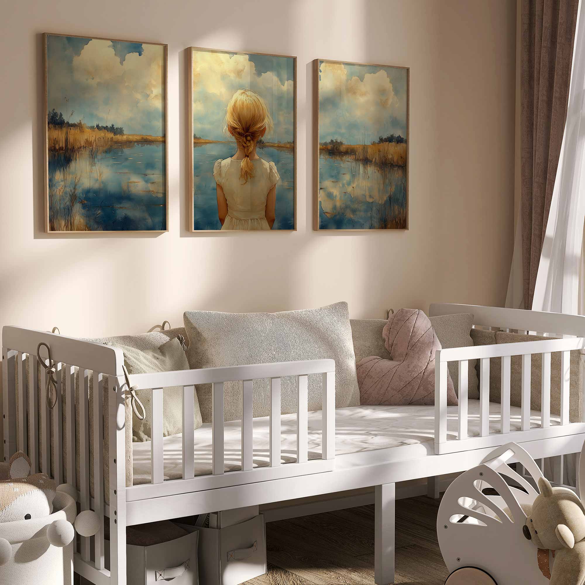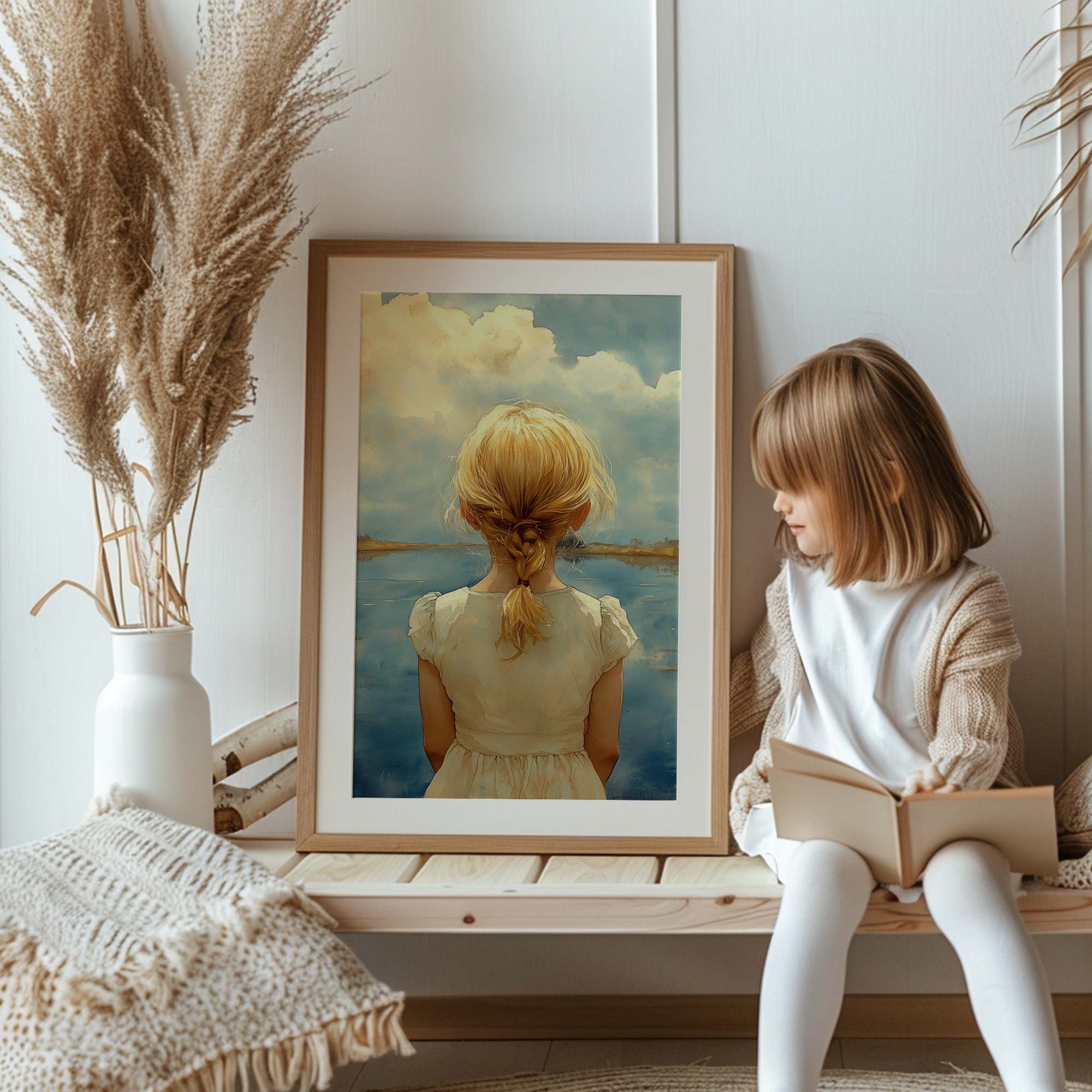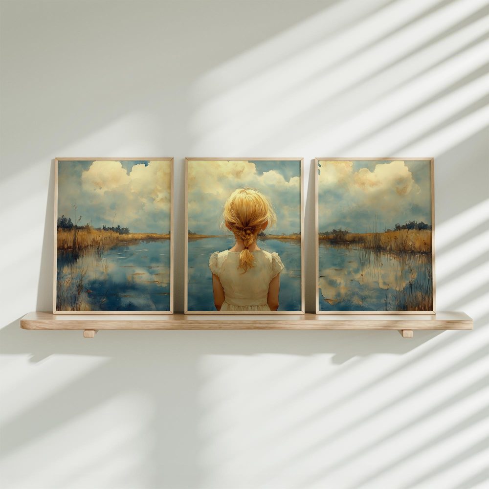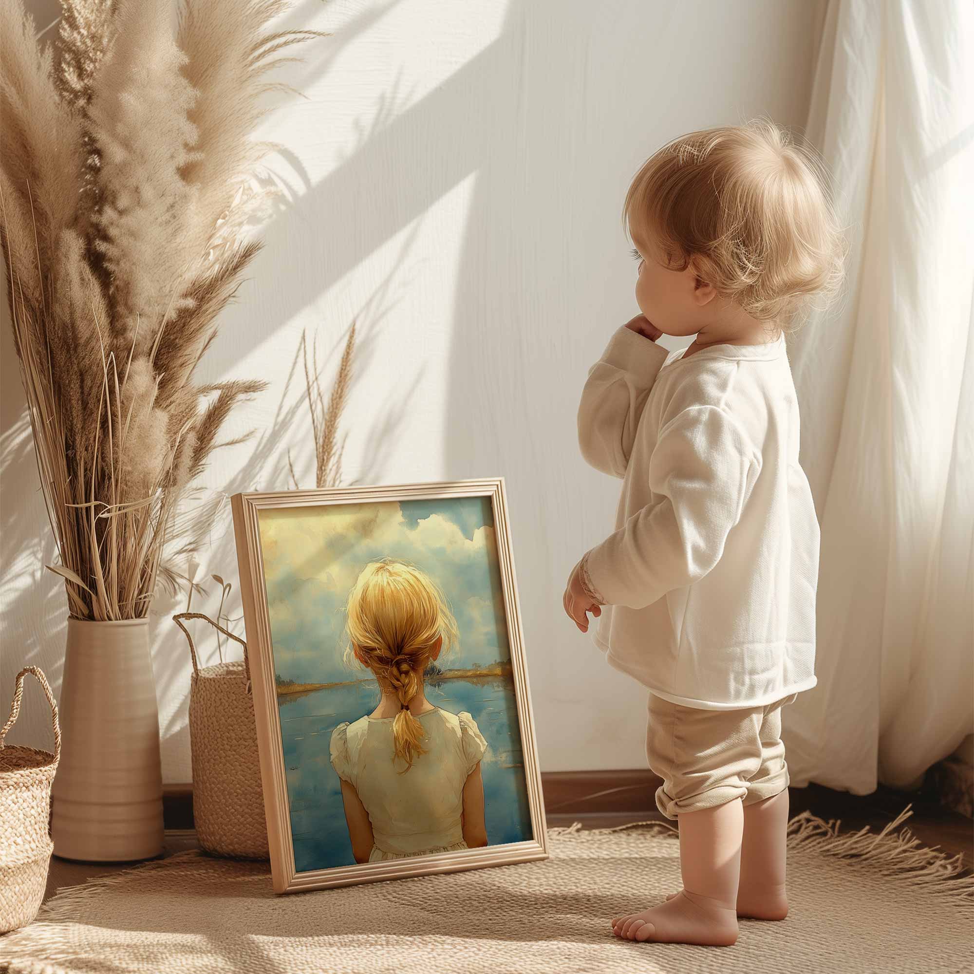 Terug naar collectie / Kinderkamer posters / Dromerig Meisje bij het Meer – Pastel Impressie