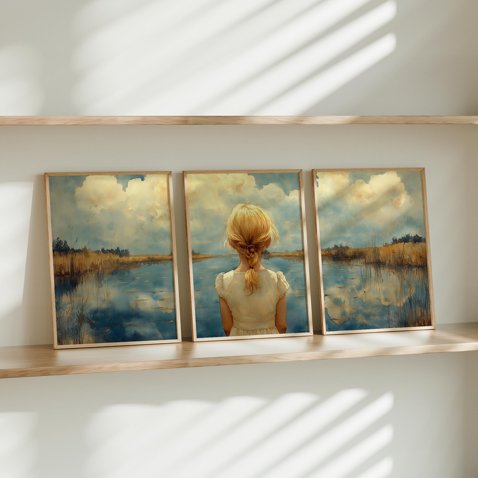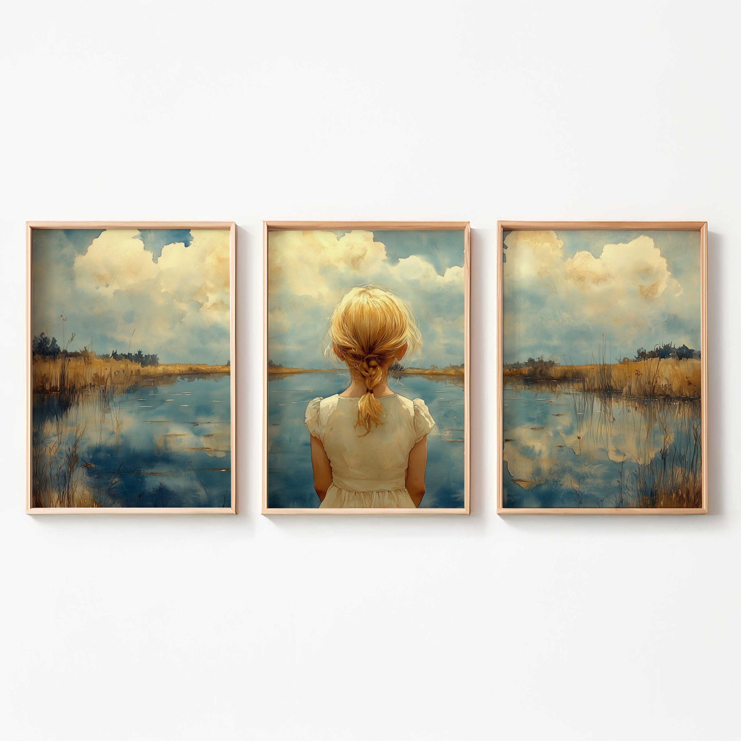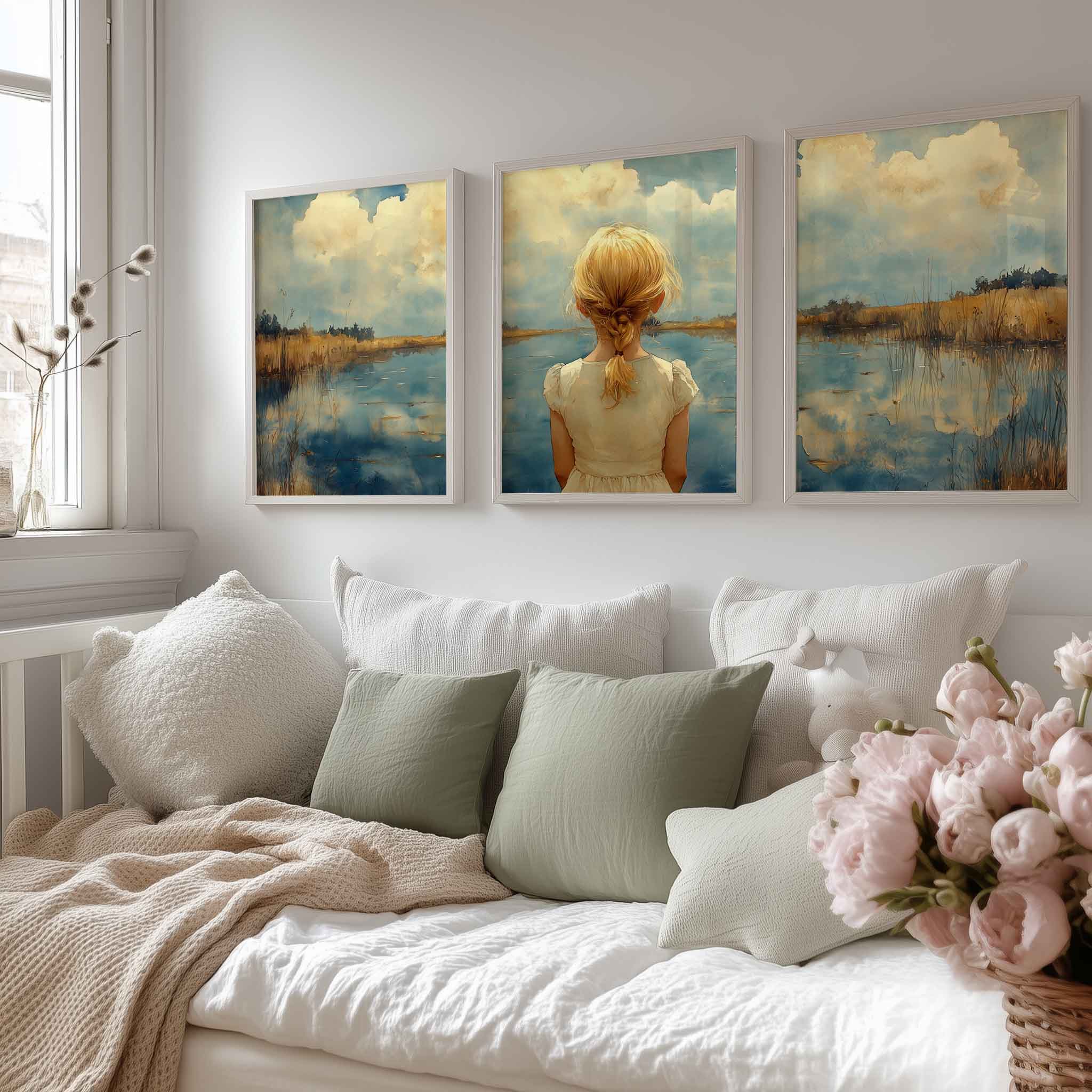 Terug naar collectie / Kinderkamer posters / Dromerig Meisje bij het Meer – Pastel Impressie