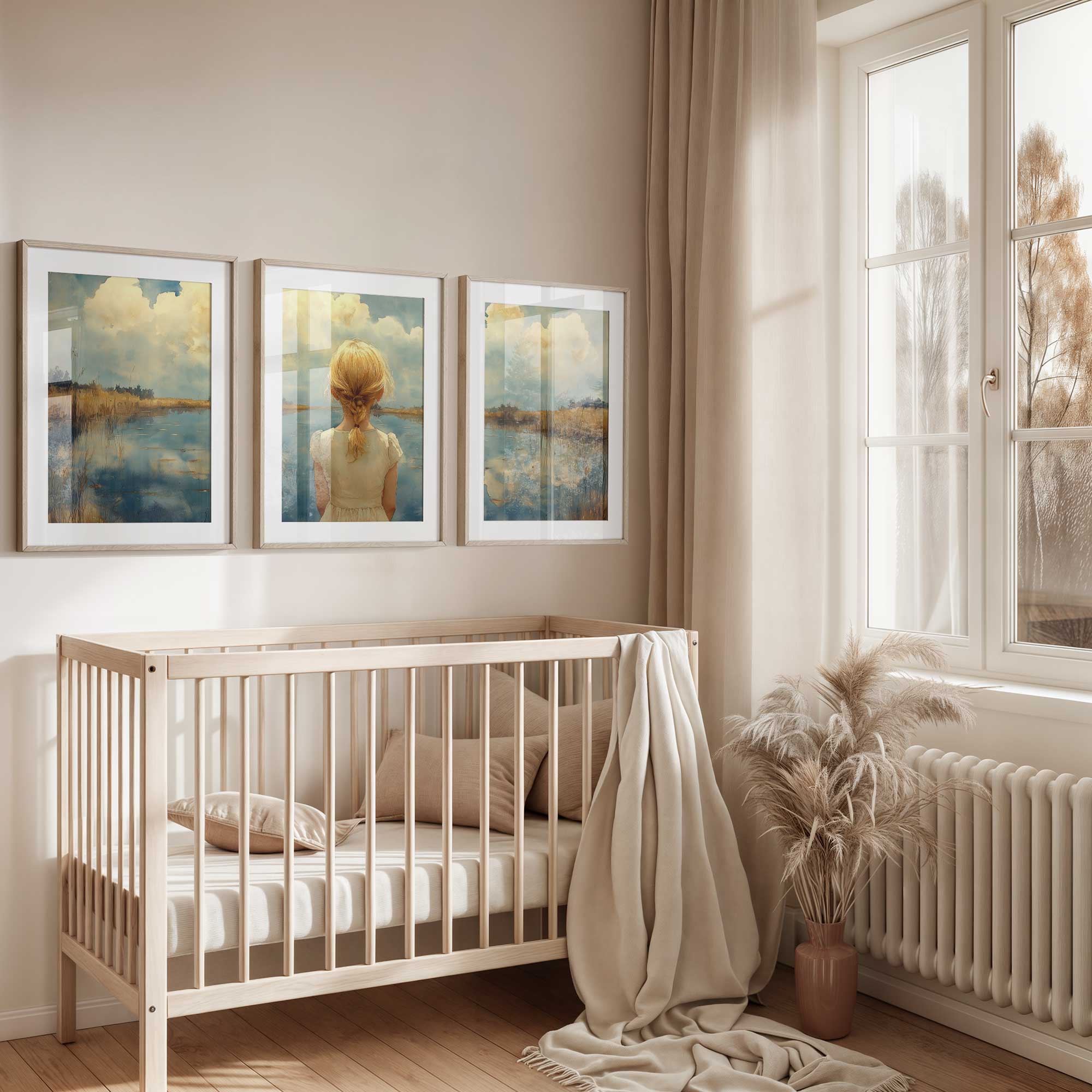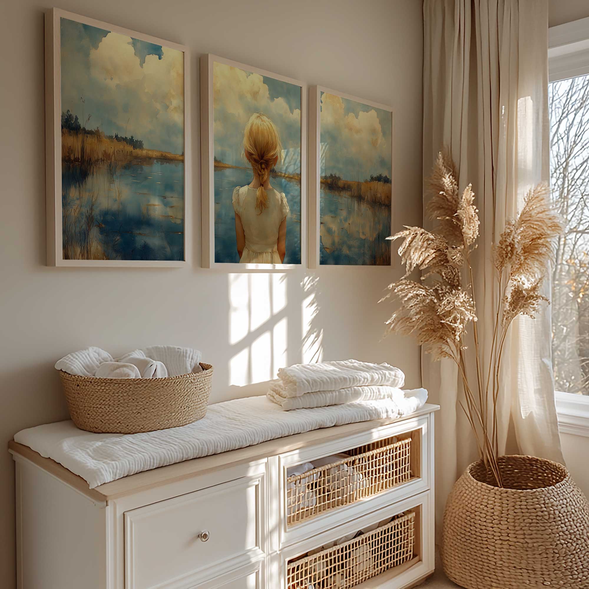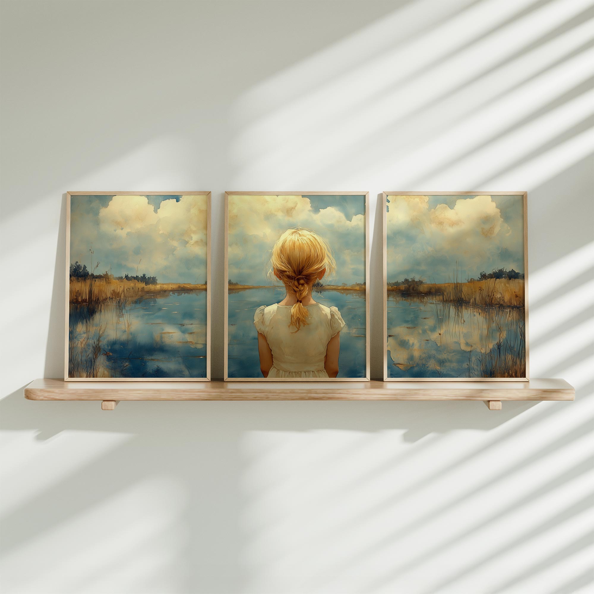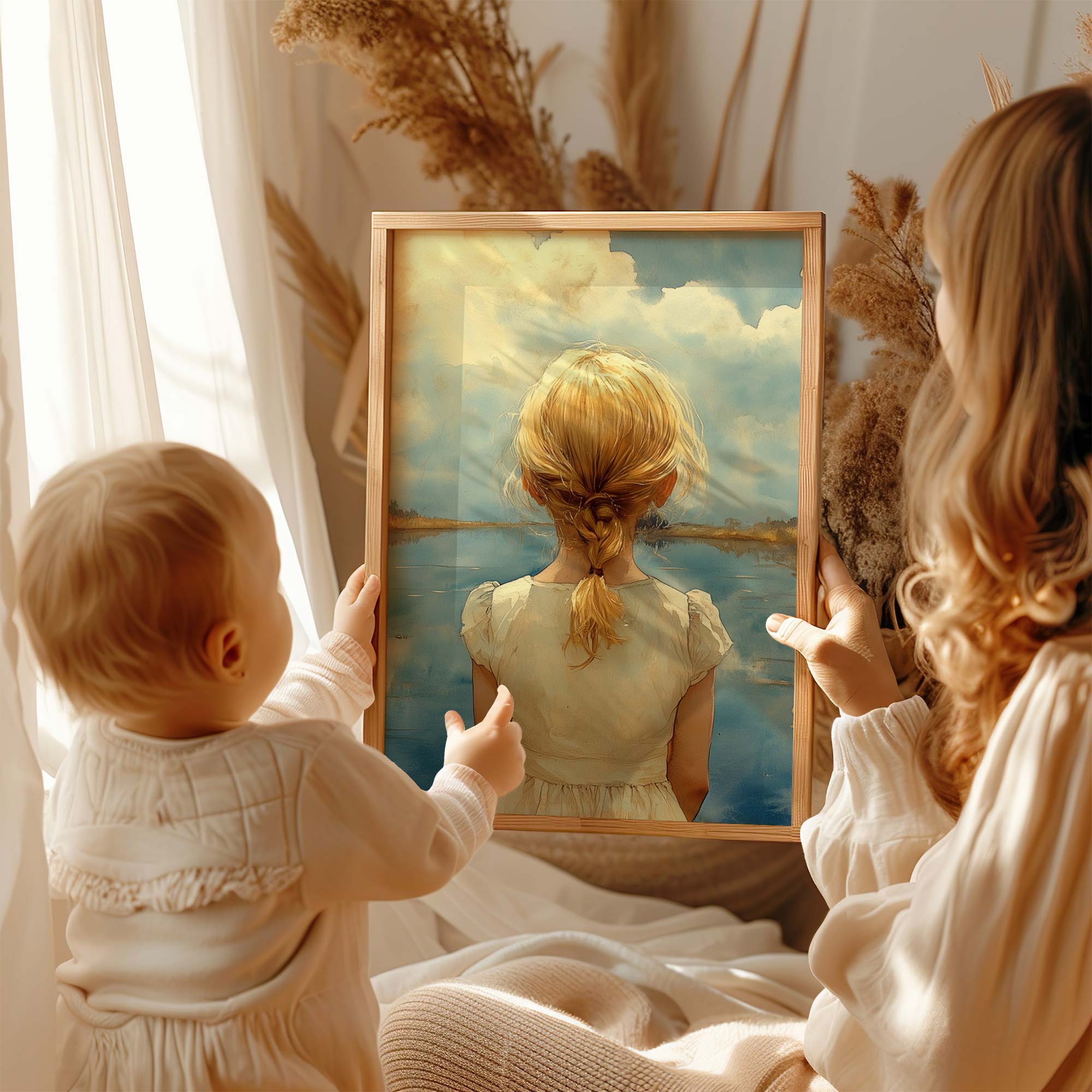 Terug naar collectie / Kinderkamer posters / Dromerig Meisje bij het Meer – Pastel Impressie