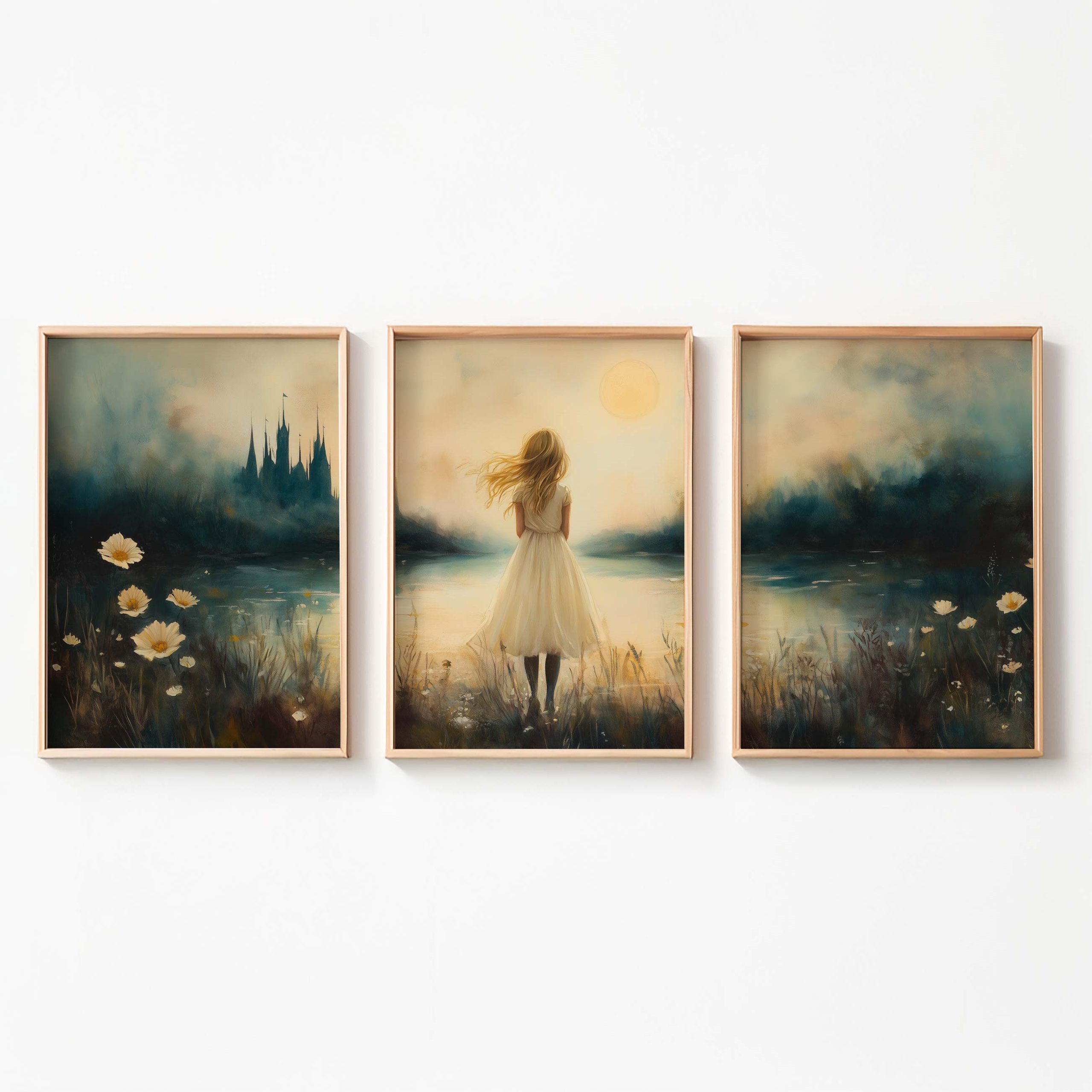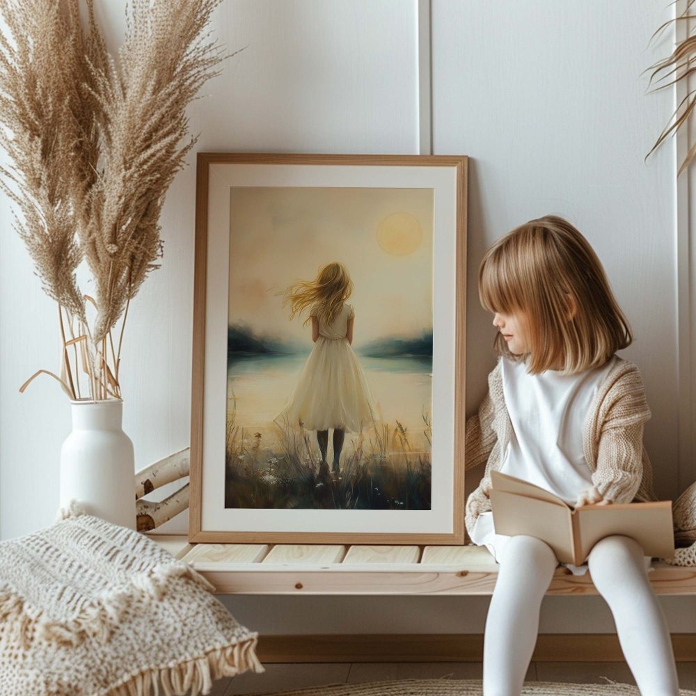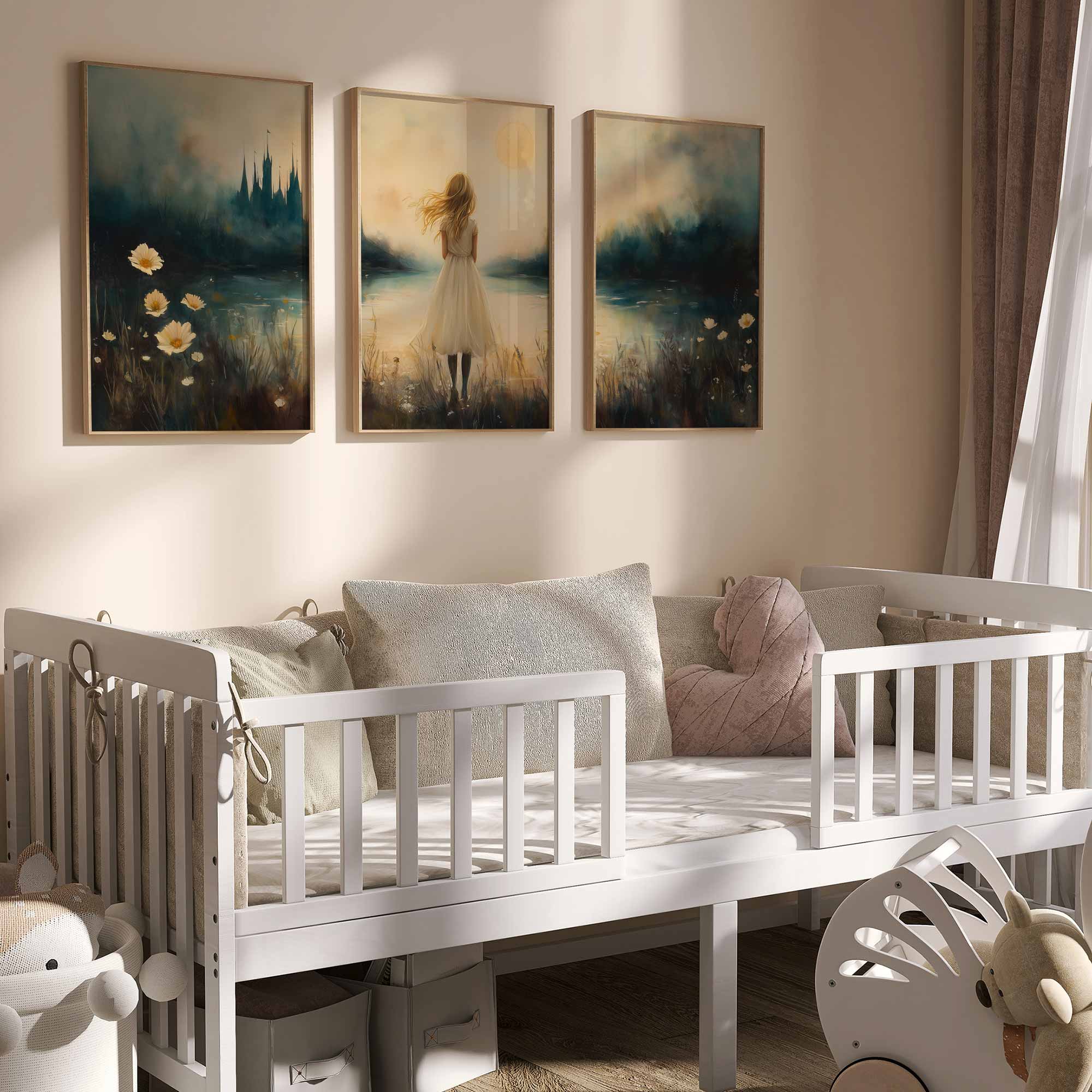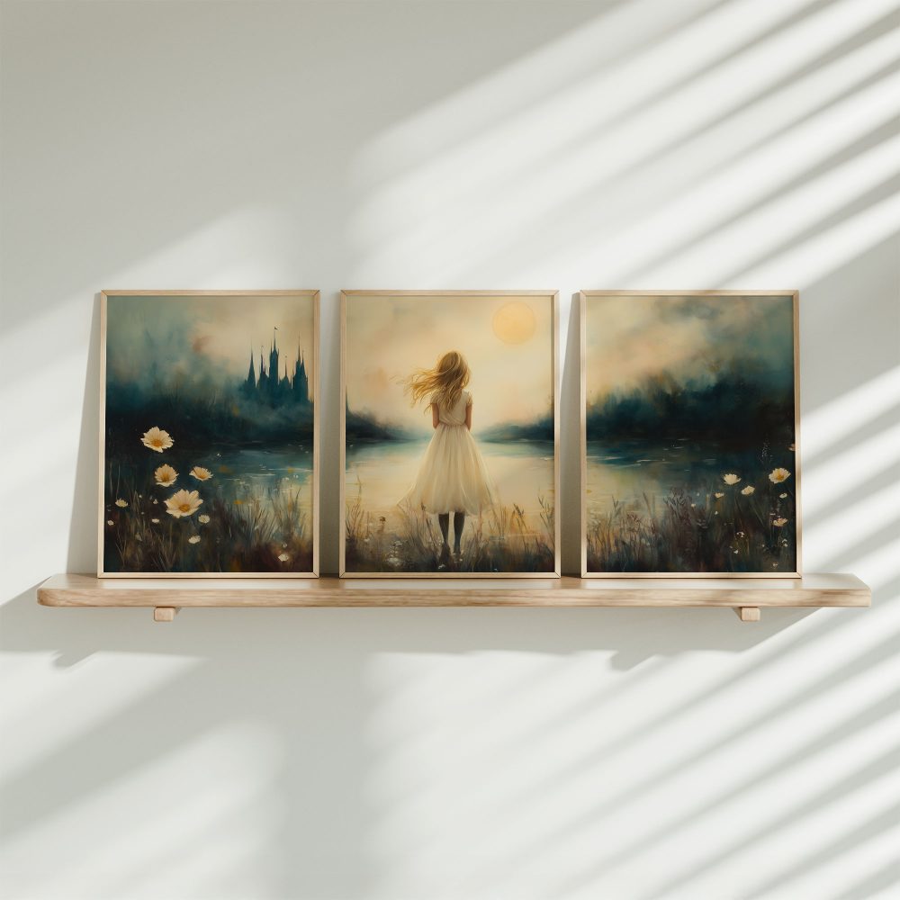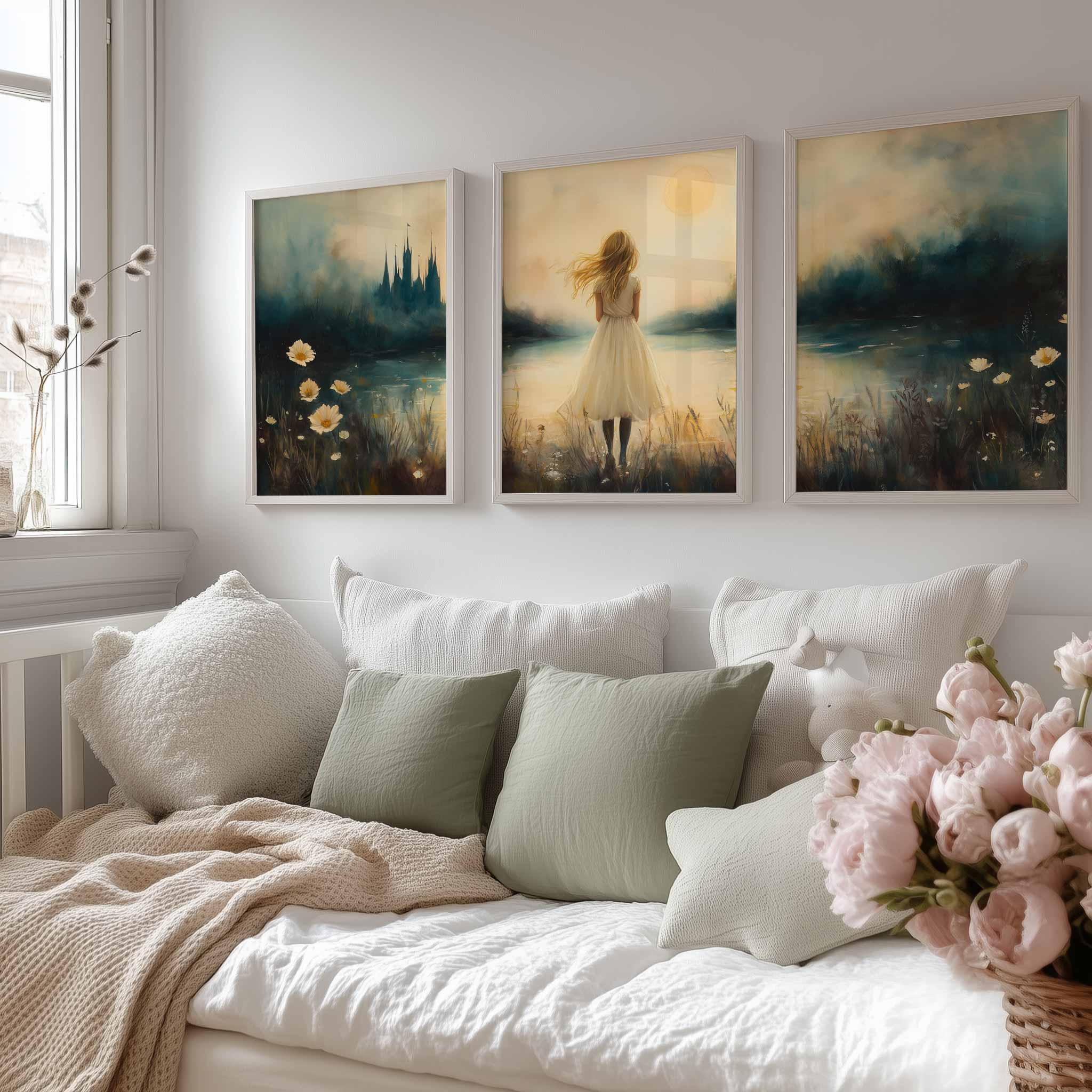 Terug naar collectie / Kinderkamer posters / Dromerig Meisje bij Kasteel in Betoverend Landschap