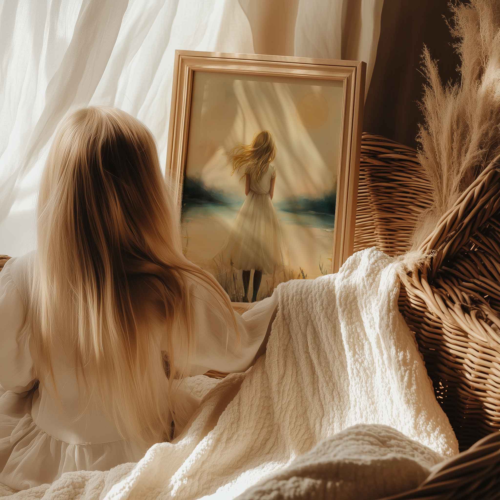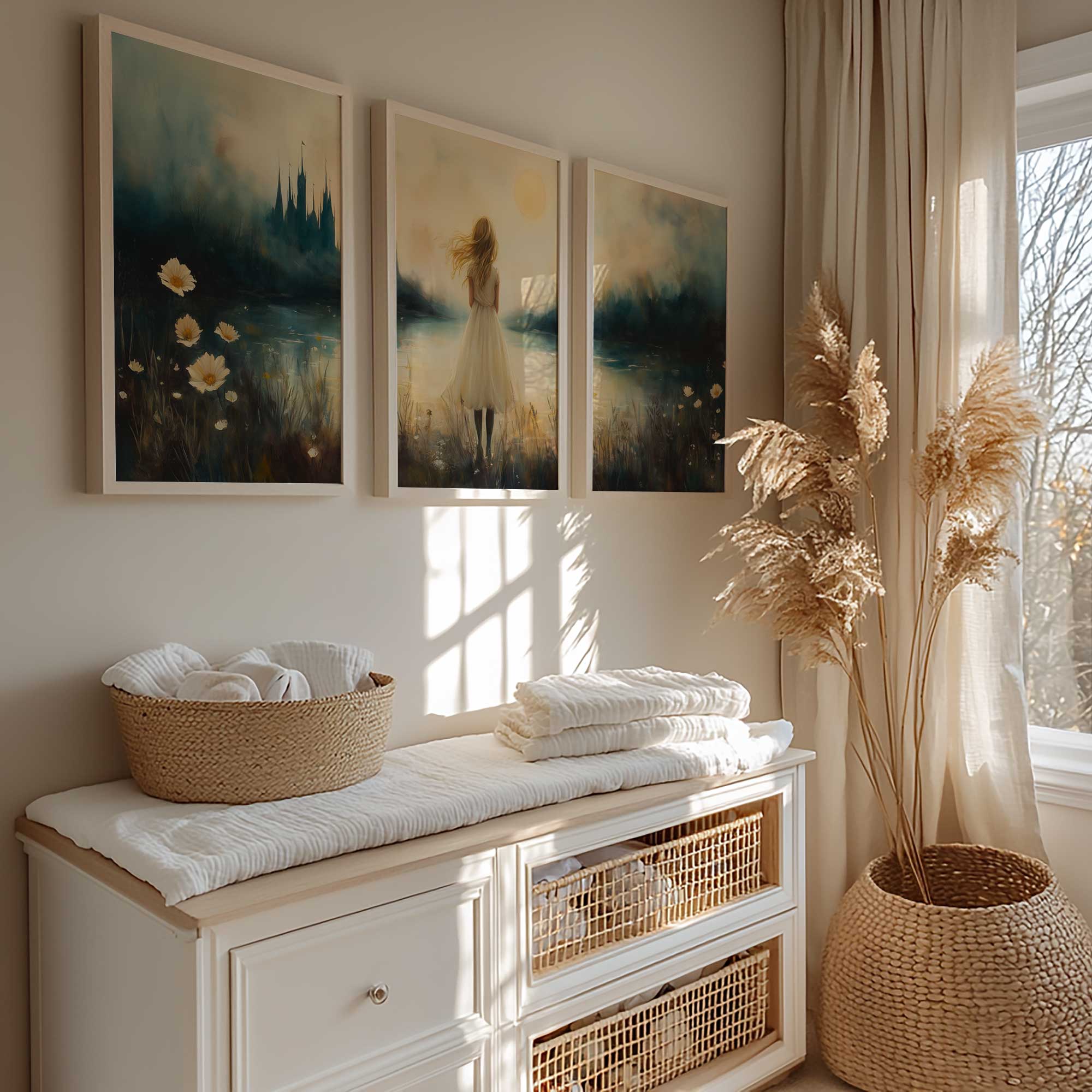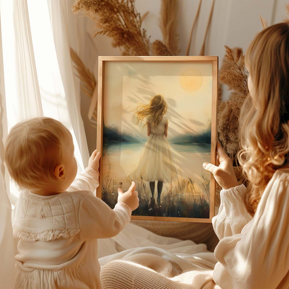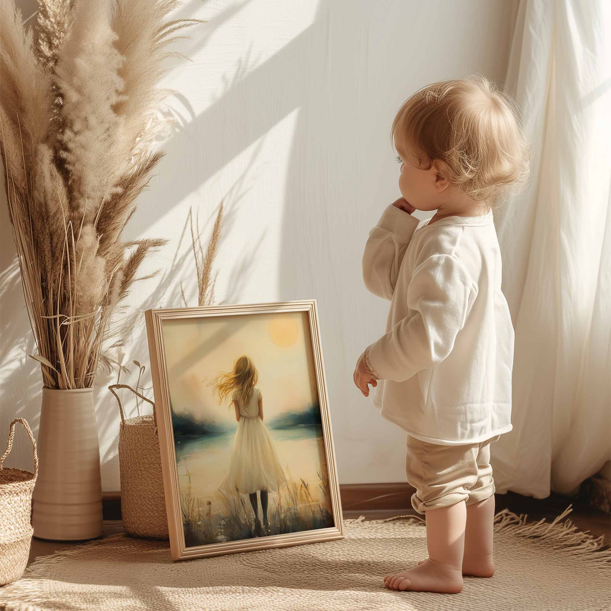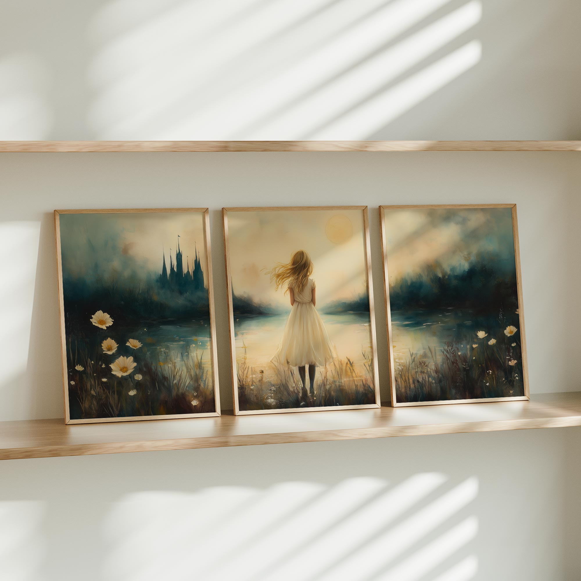 Terug naar collectie / Kinderkamer posters / Dromerig Meisje bij Kasteel in Betoverend Landschap