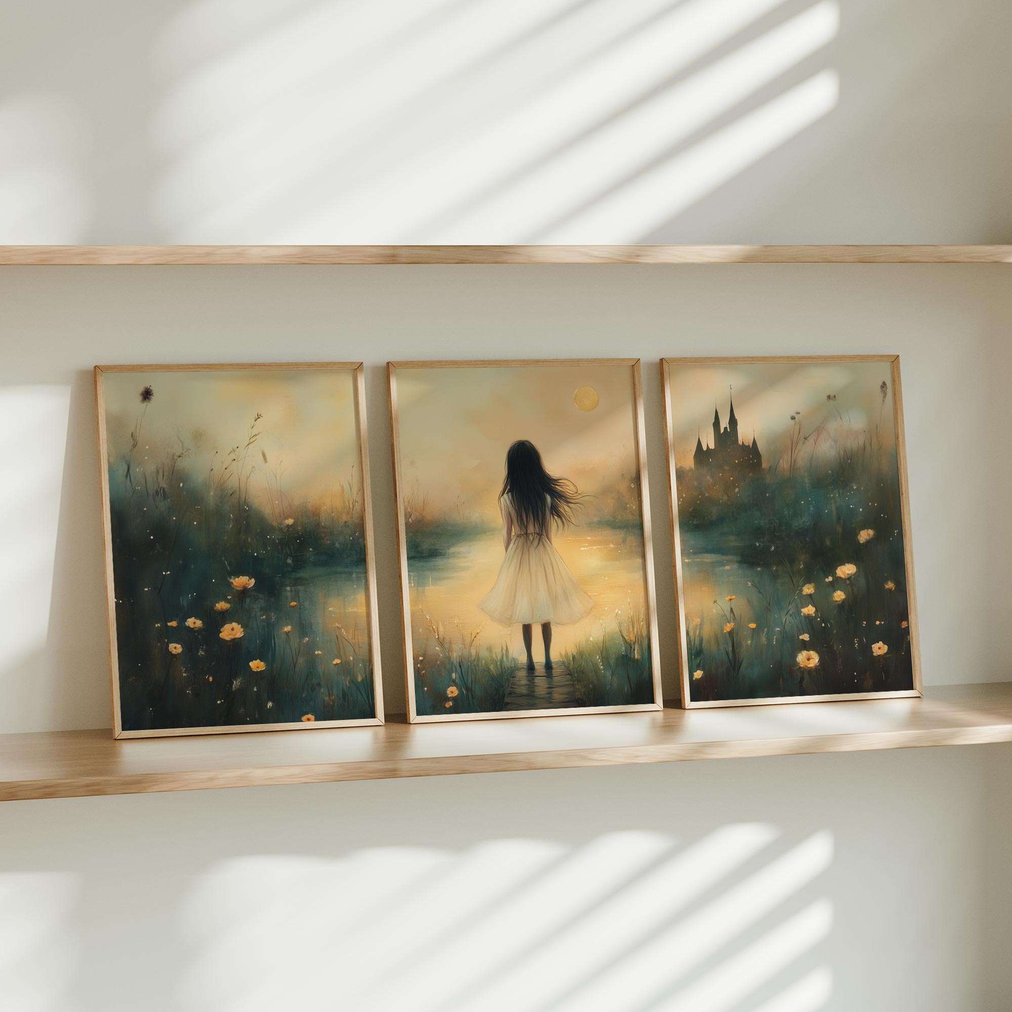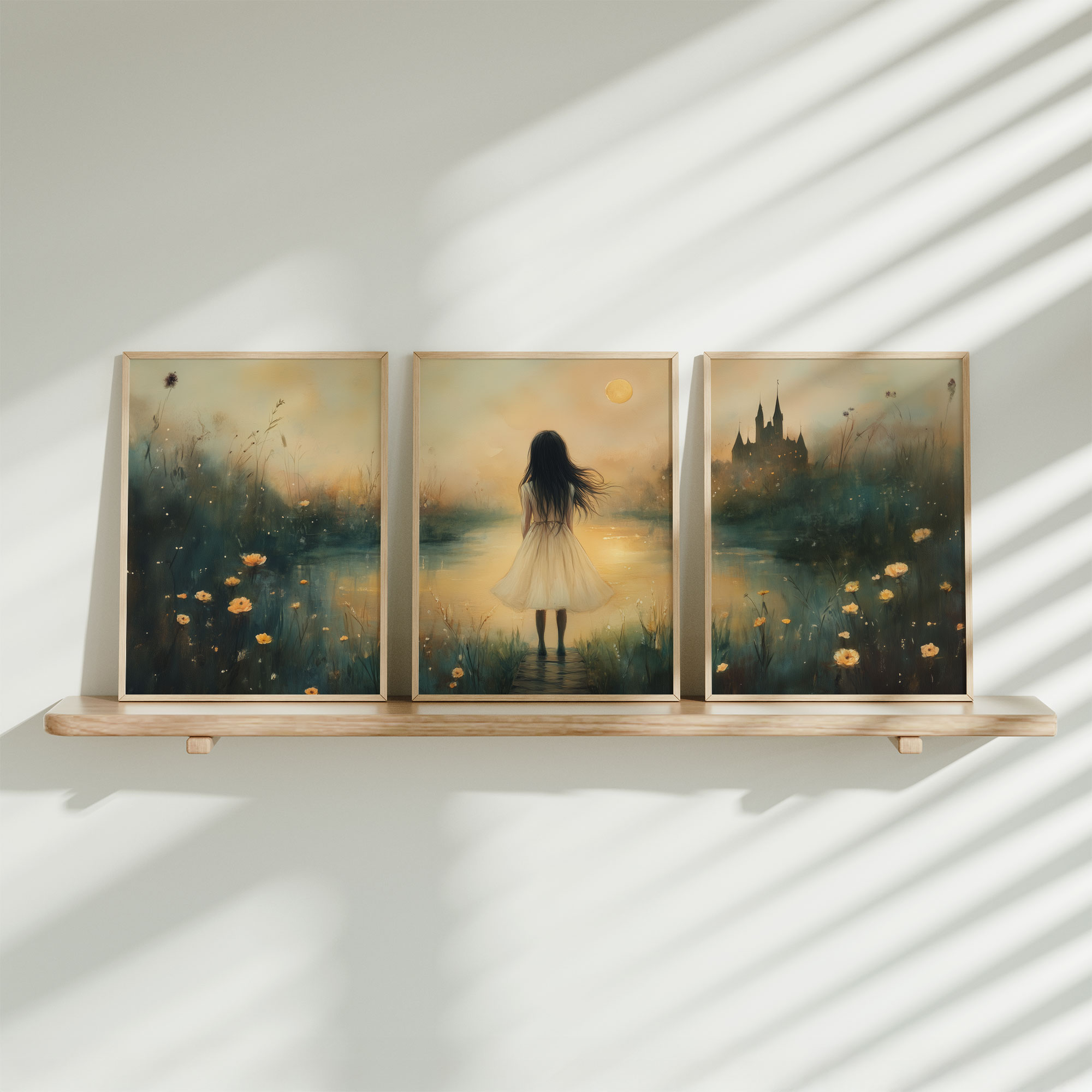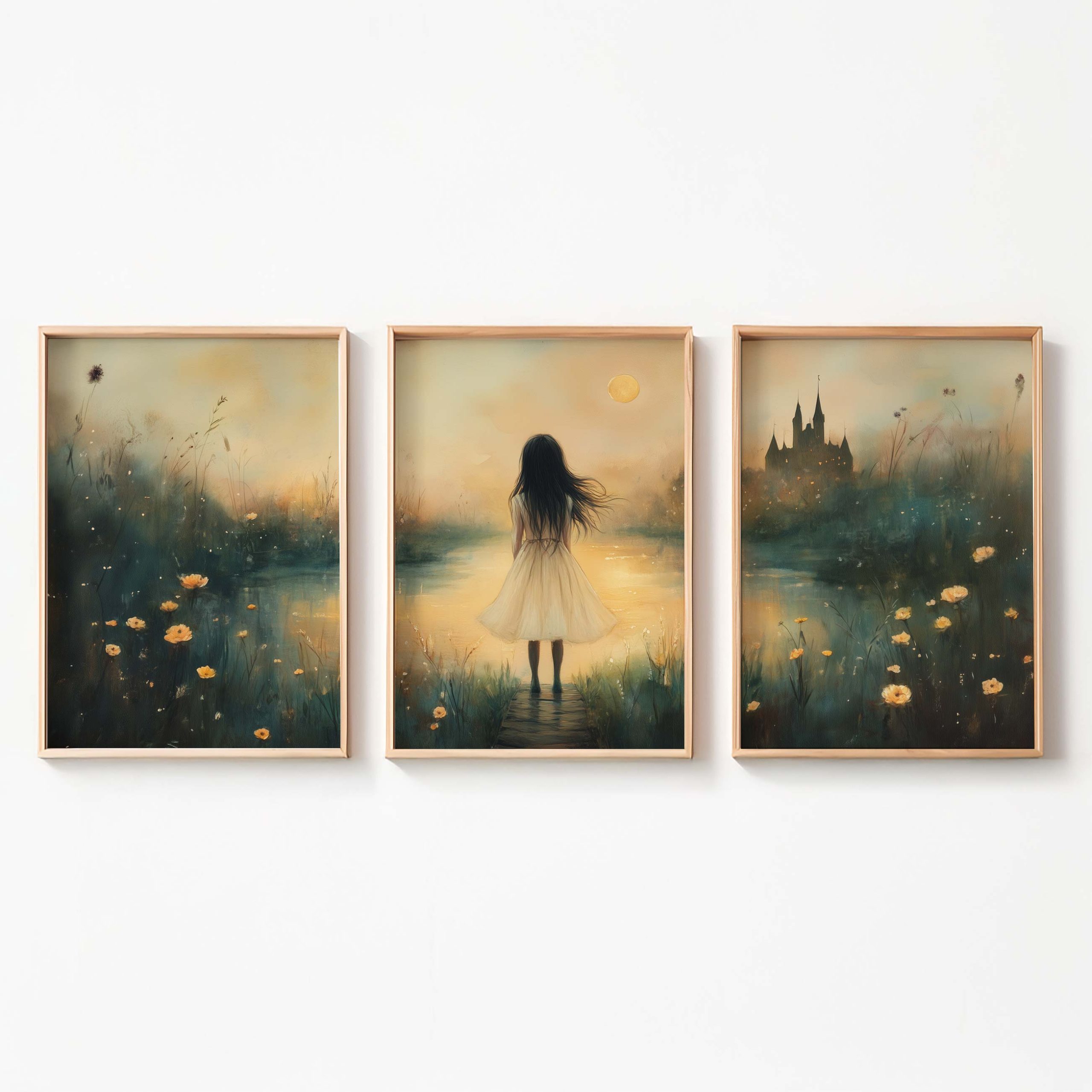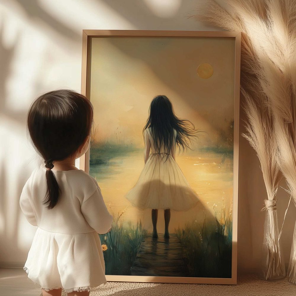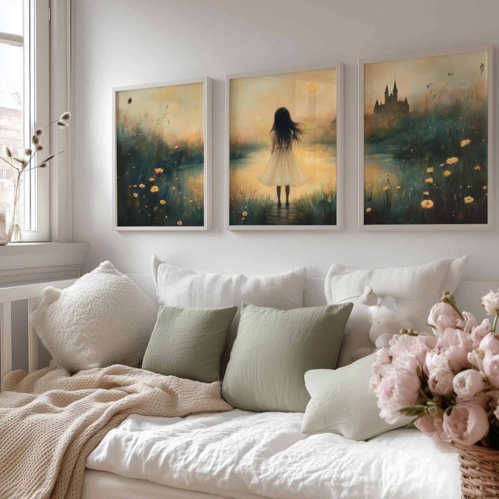 Terug naar collectie / Kinderkamer posters / Dromerig Meisje bij Kasteel – Pastel Schilderij