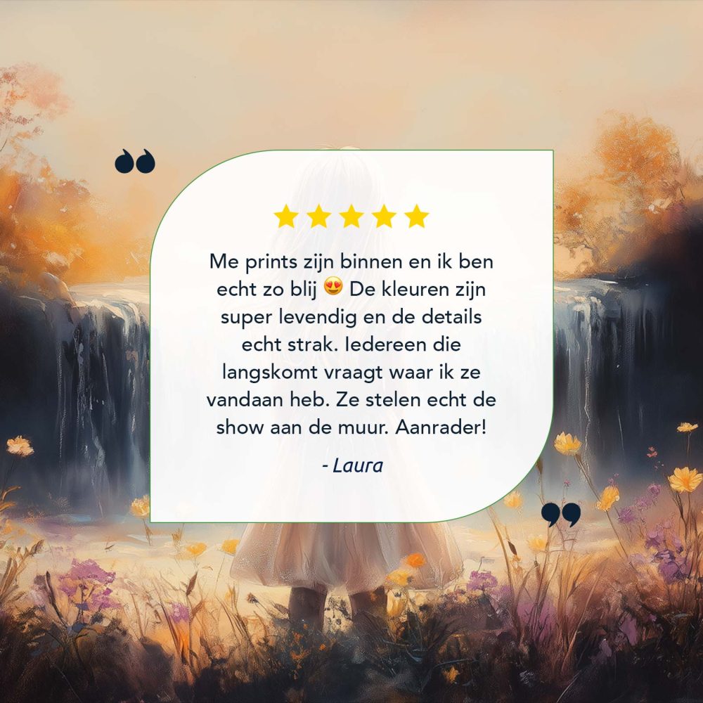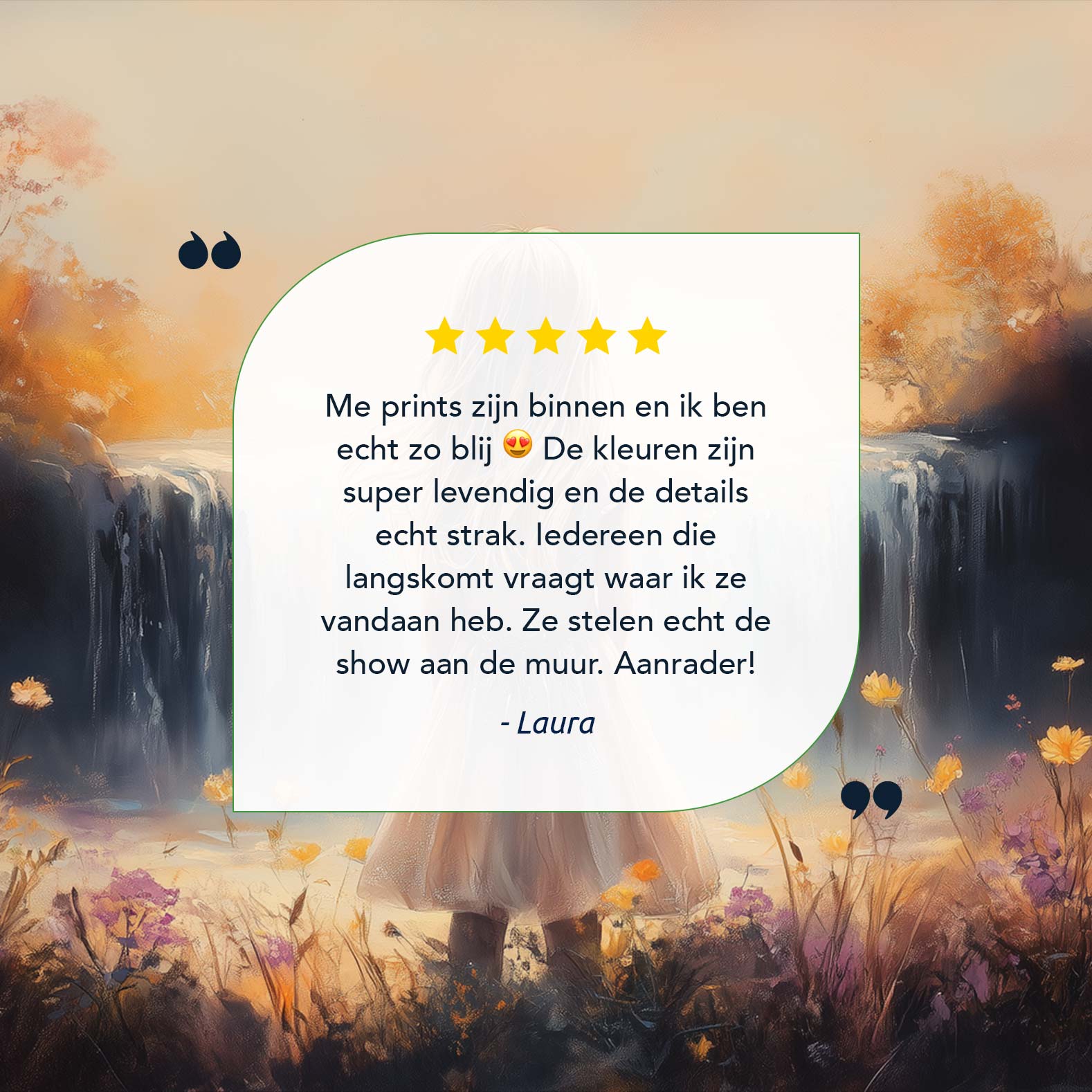 Dromerig Meisje bij Waterval – Pastel Bloemenwereld