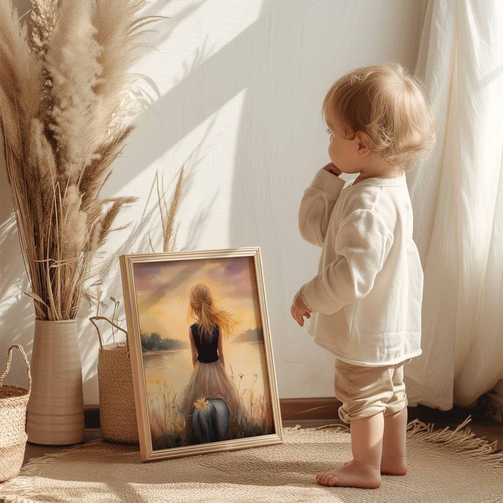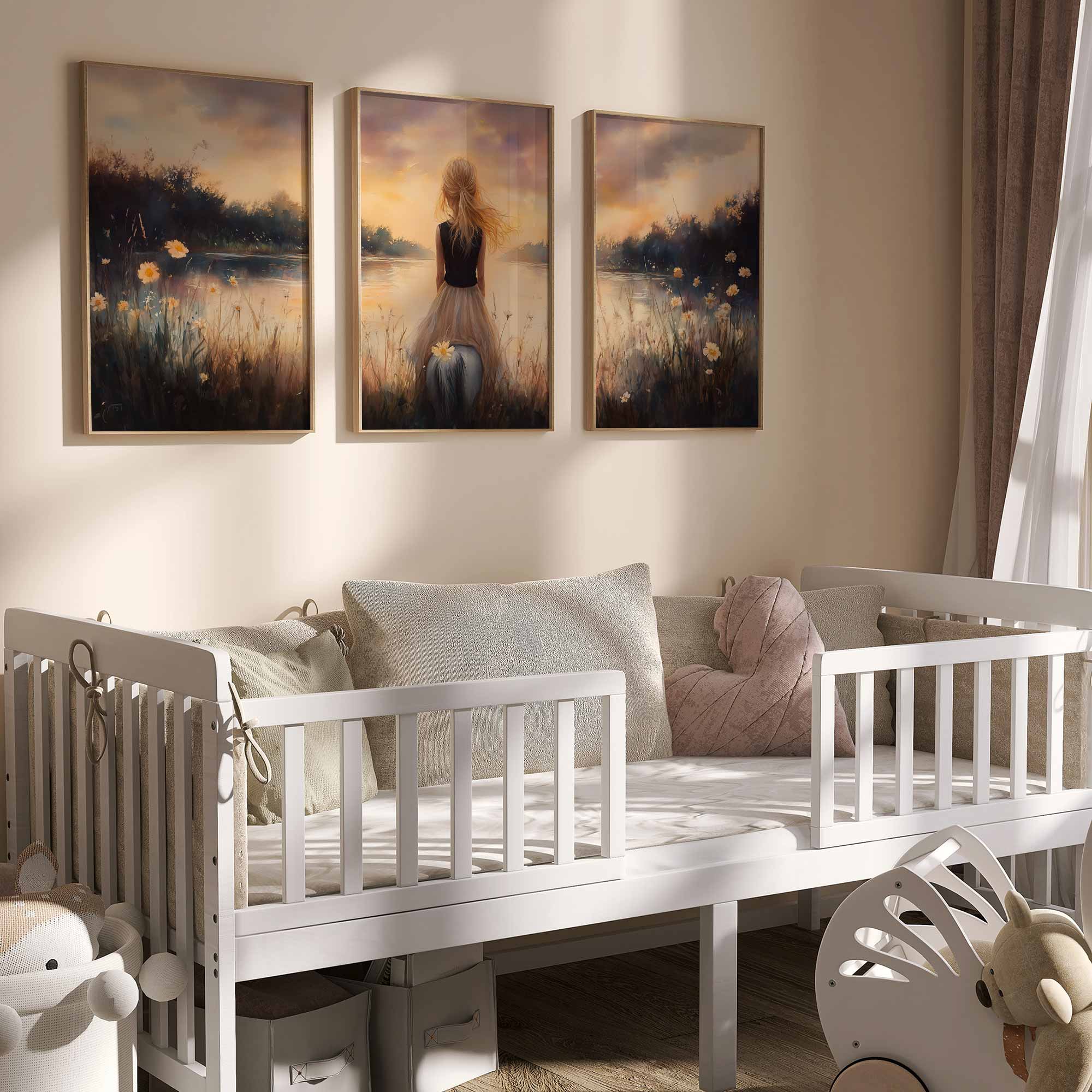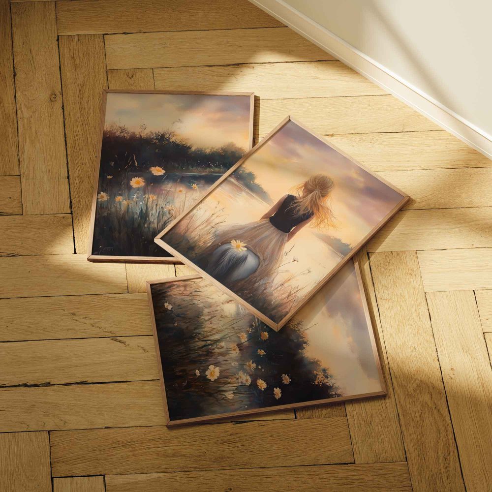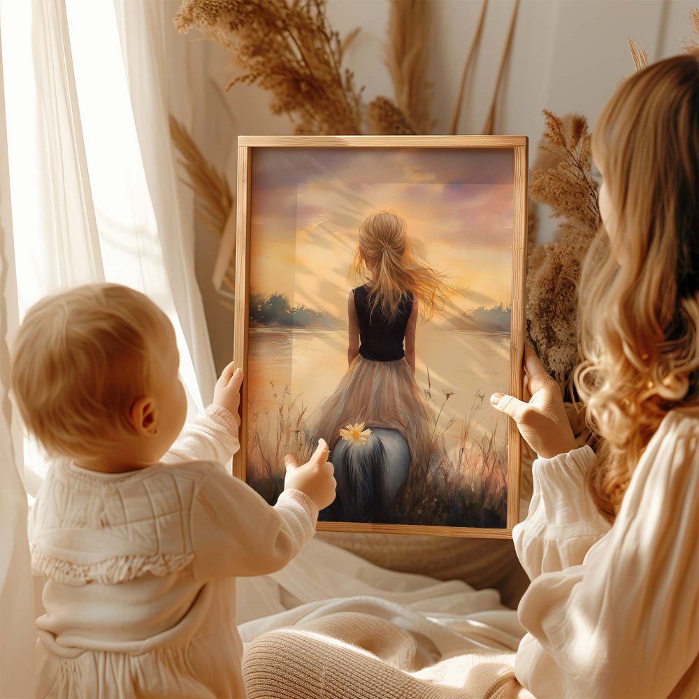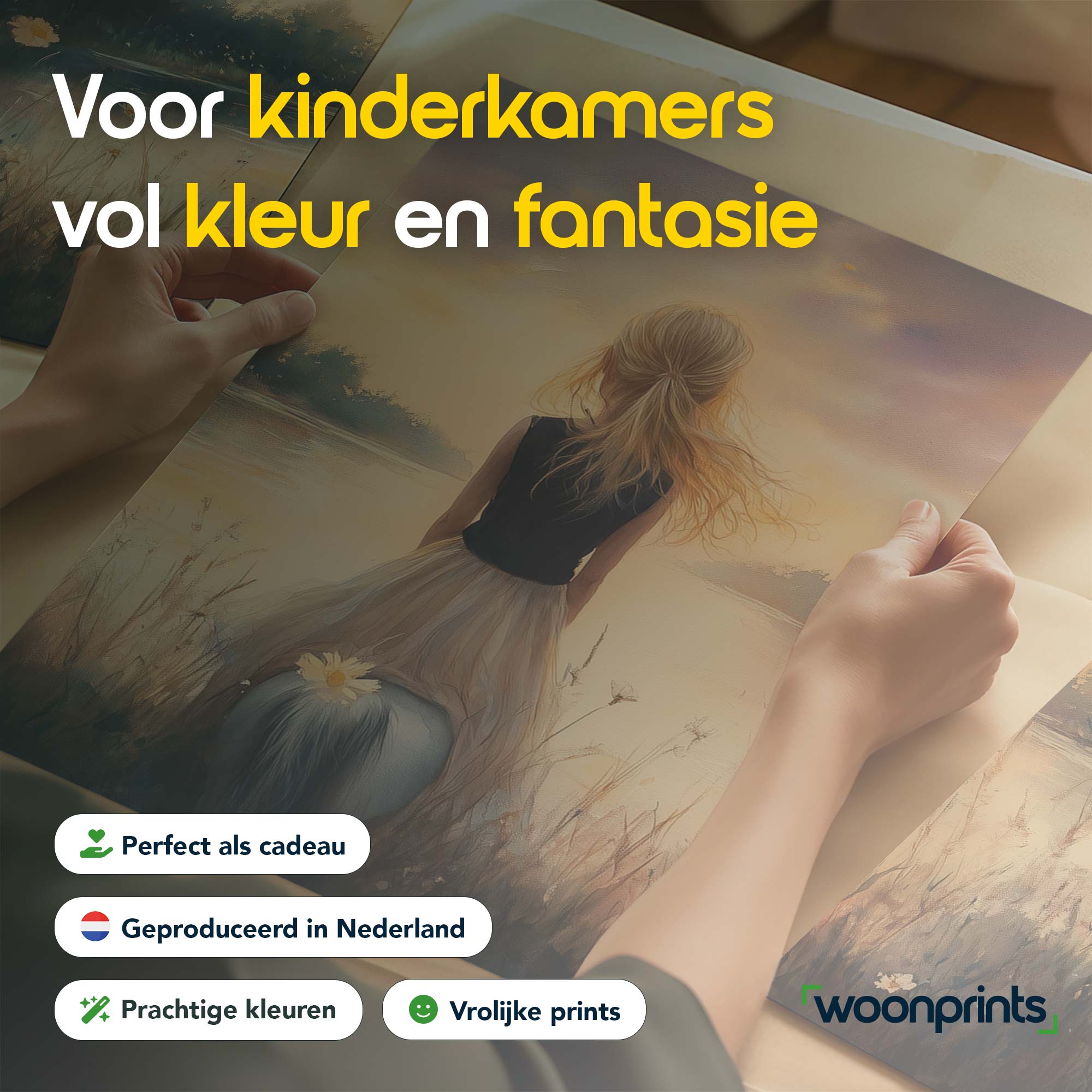 Terug naar collectie / Kinderkamer posters / Bloemen posters / Dromerig Meisje en Paard in Bloemenveld