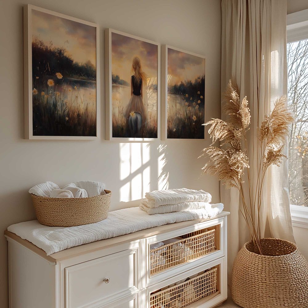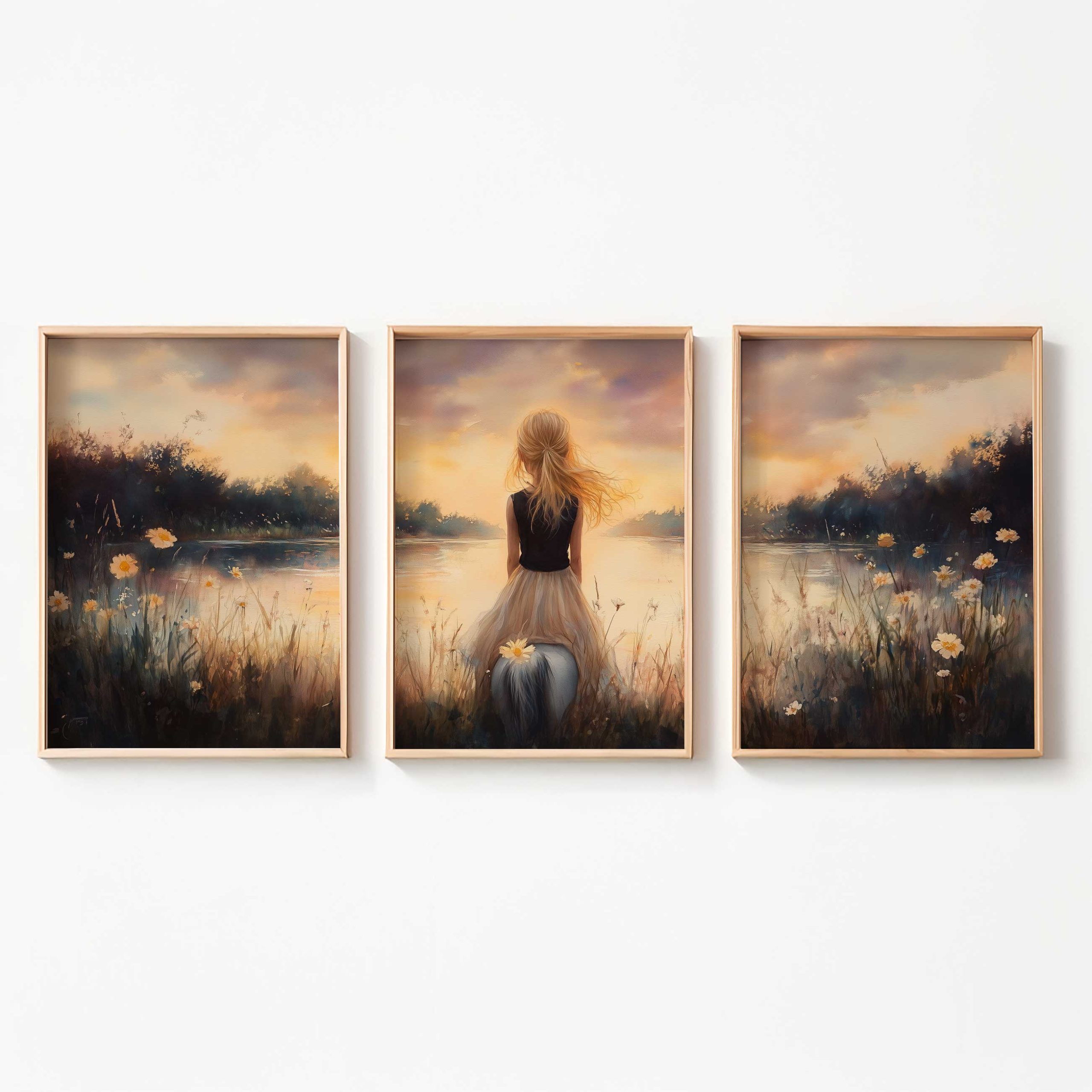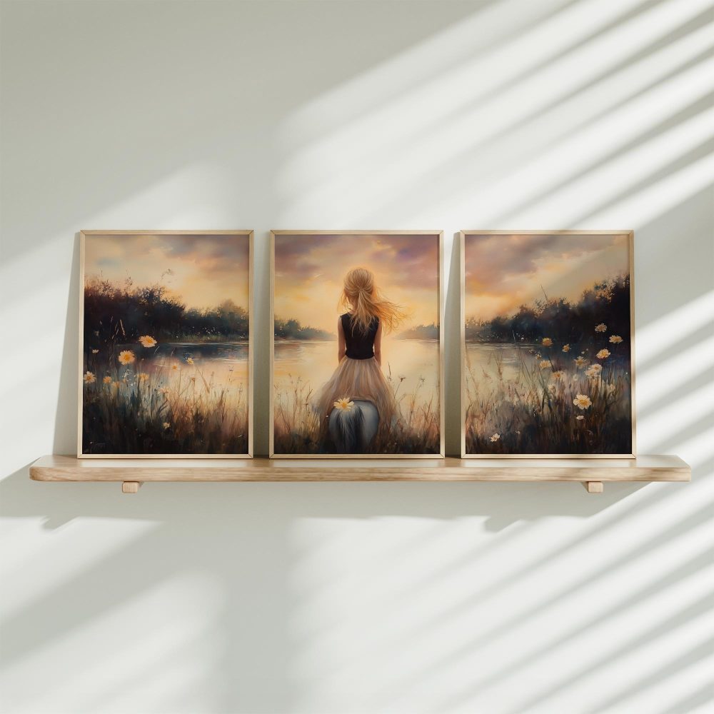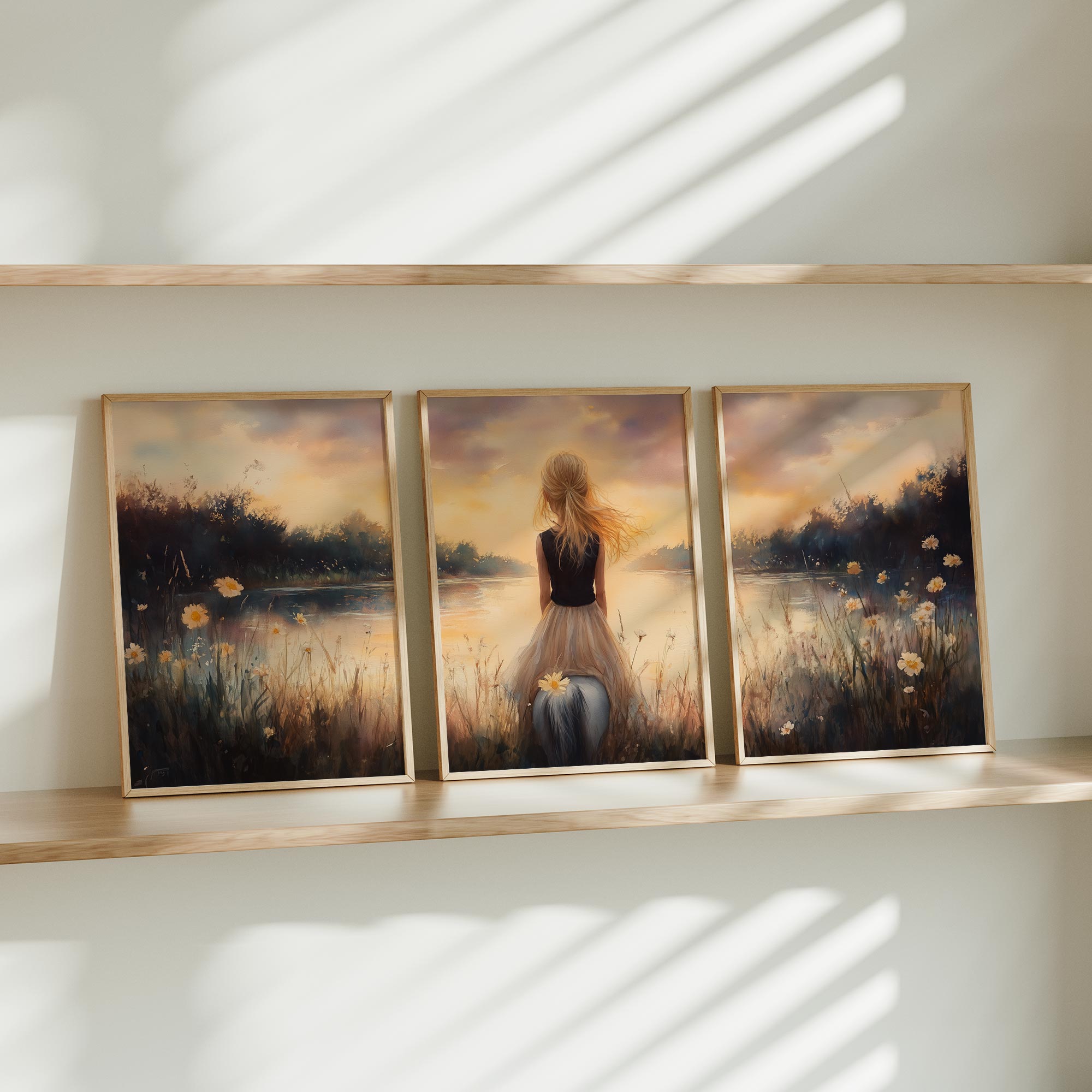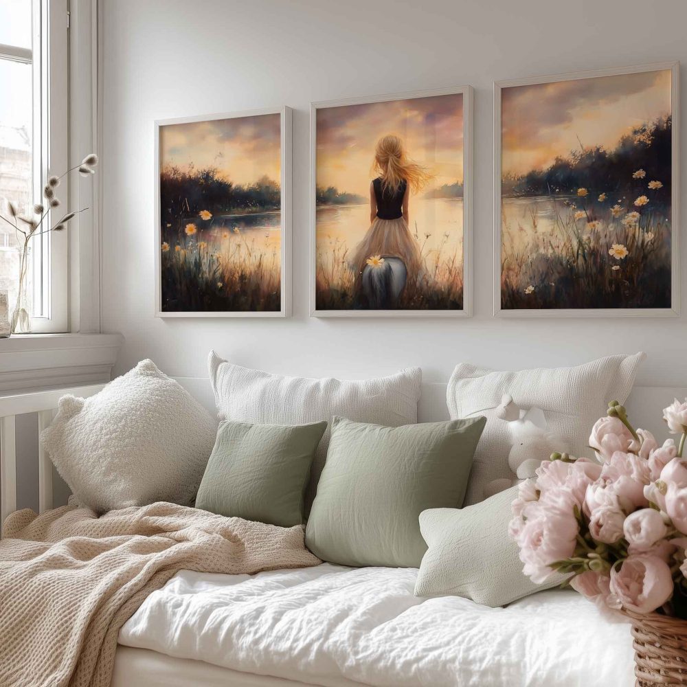 Terug naar collectie / Kinderkamer posters / Bloemen posters / Dromerig Meisje en Paard in Bloemenveld