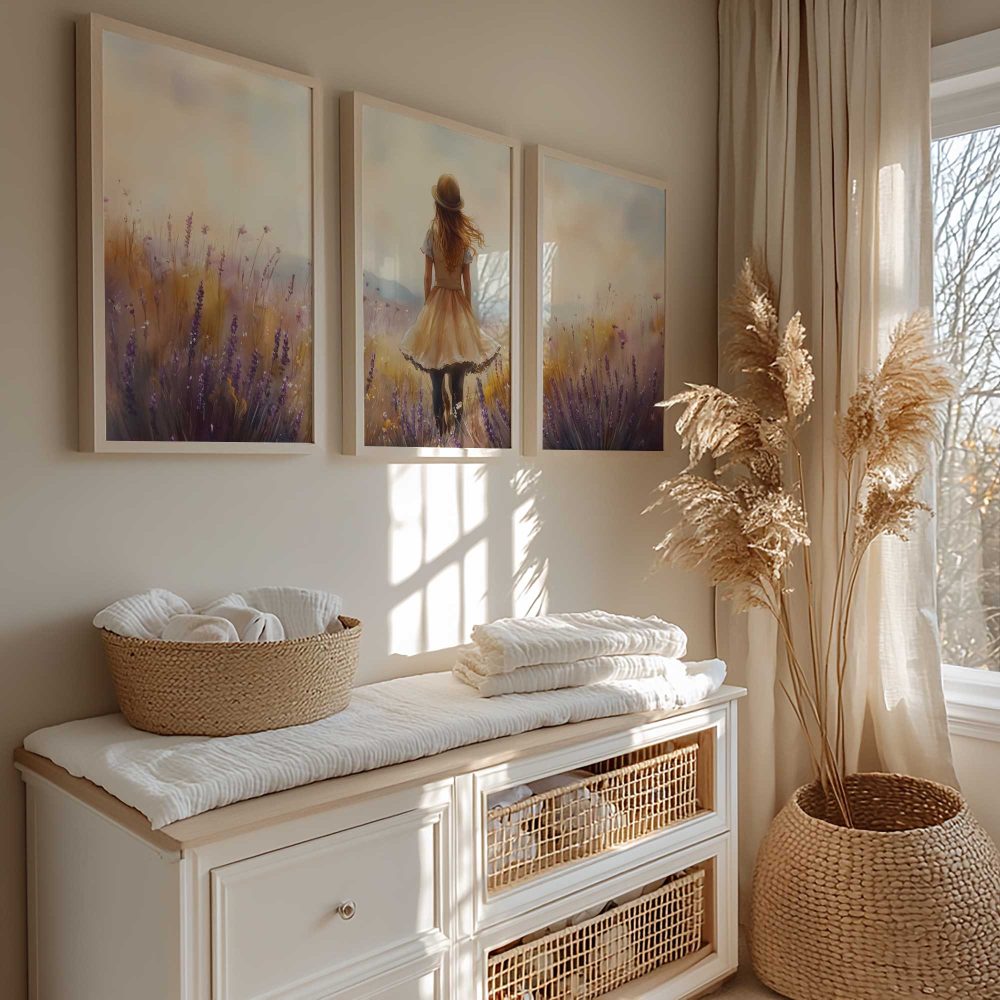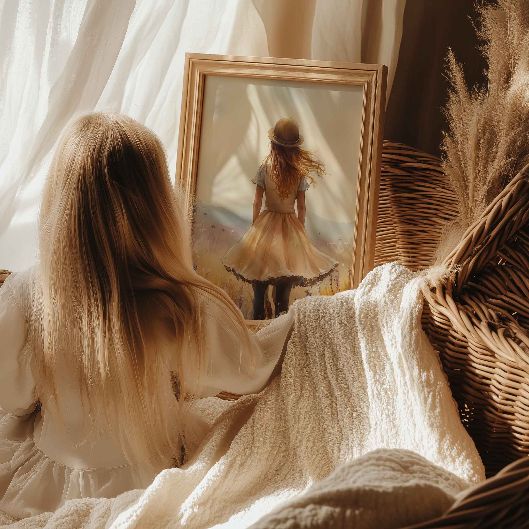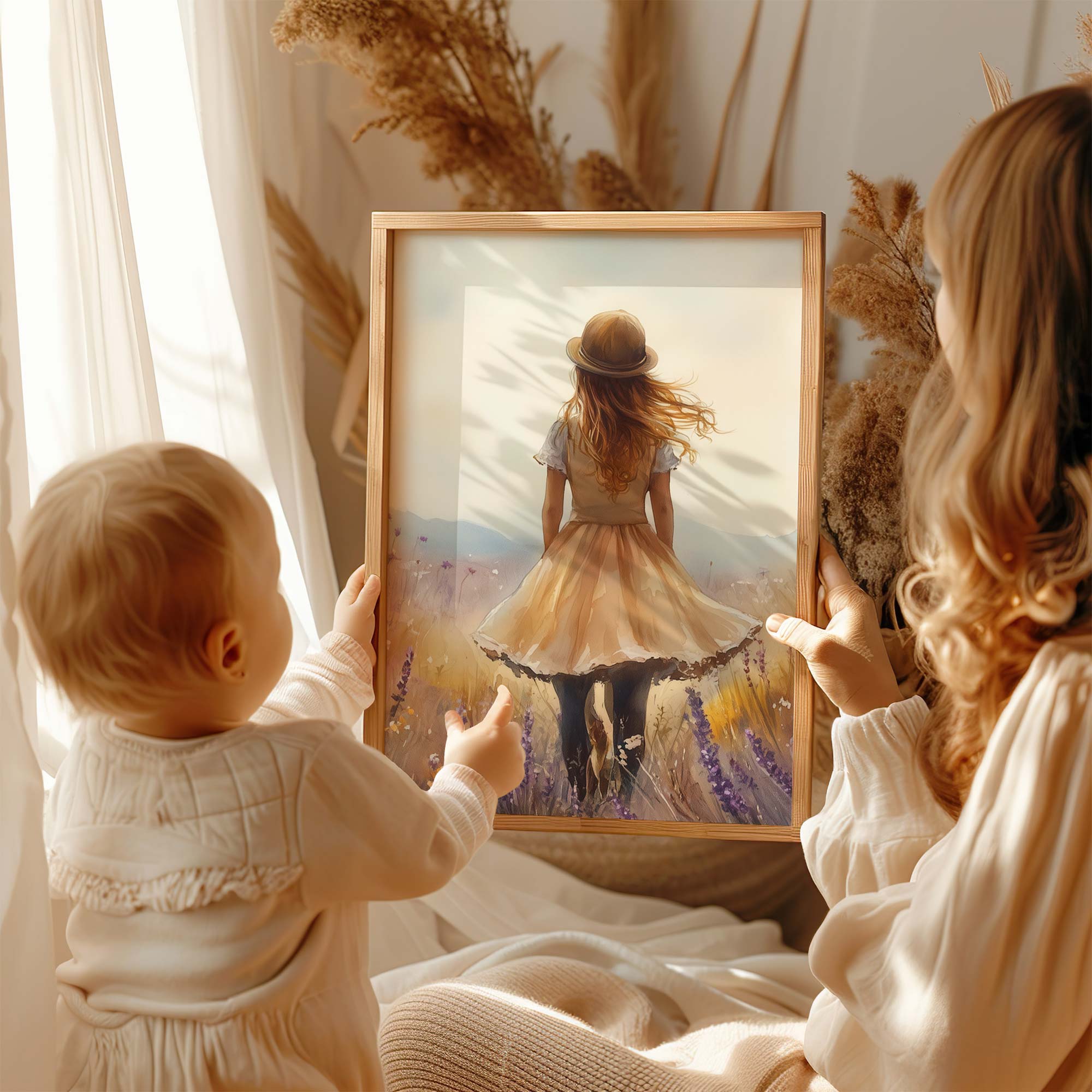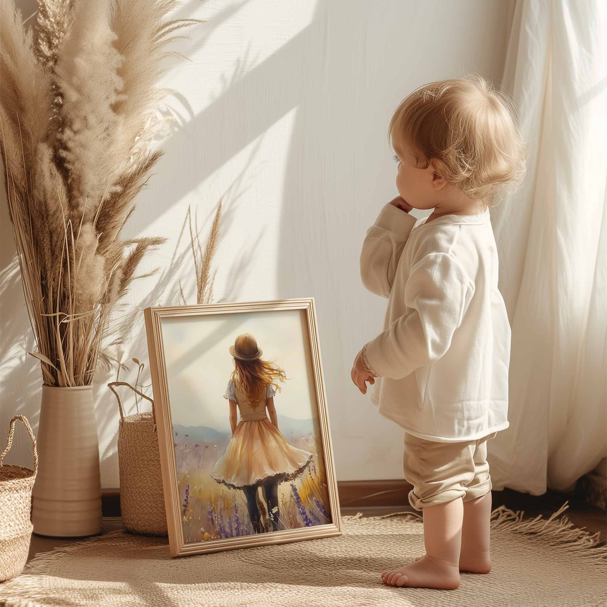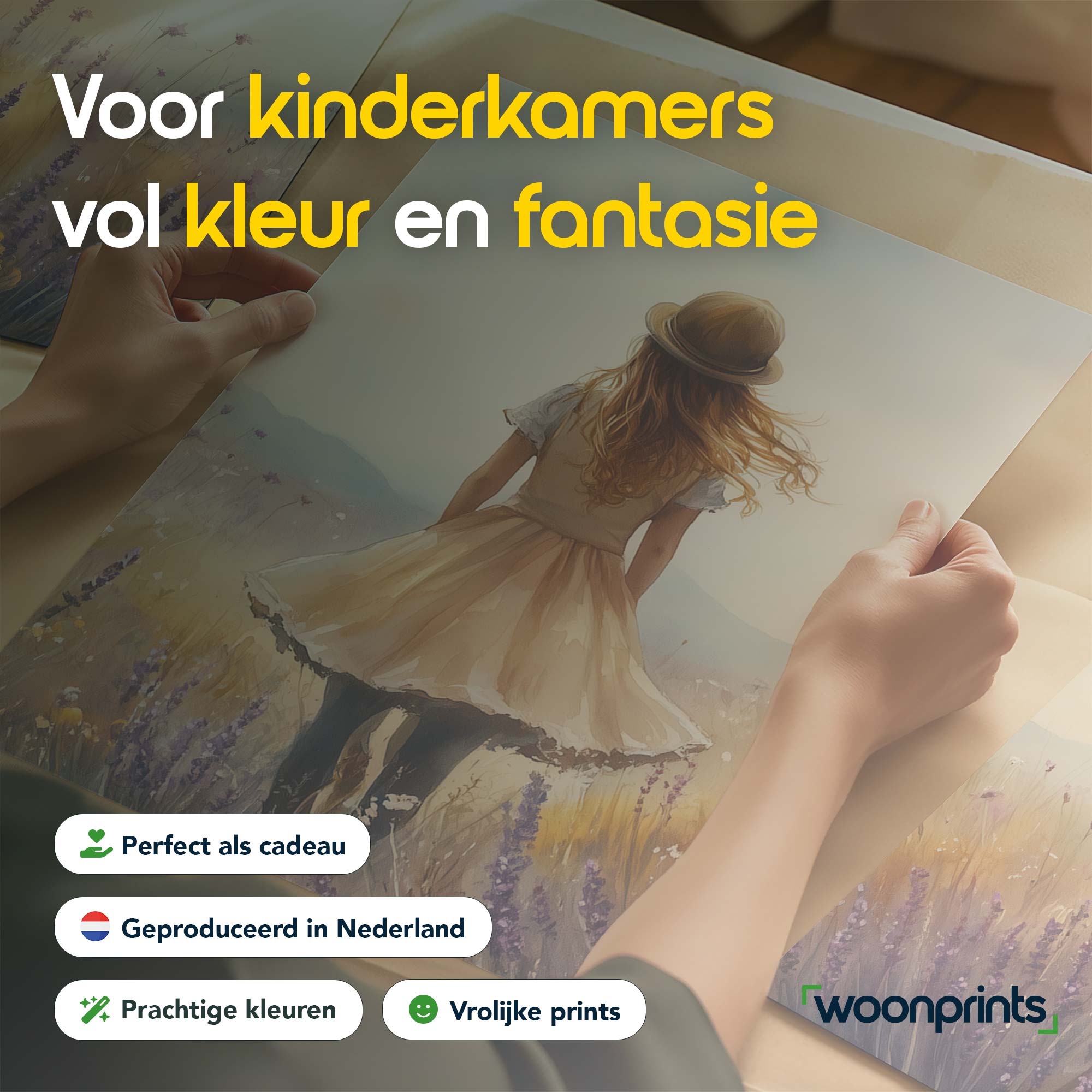 Terug naar collectie / Kinderkamer posters / Bloemen posters / Dromerig Meisje in Bloeiend Bloemenveld