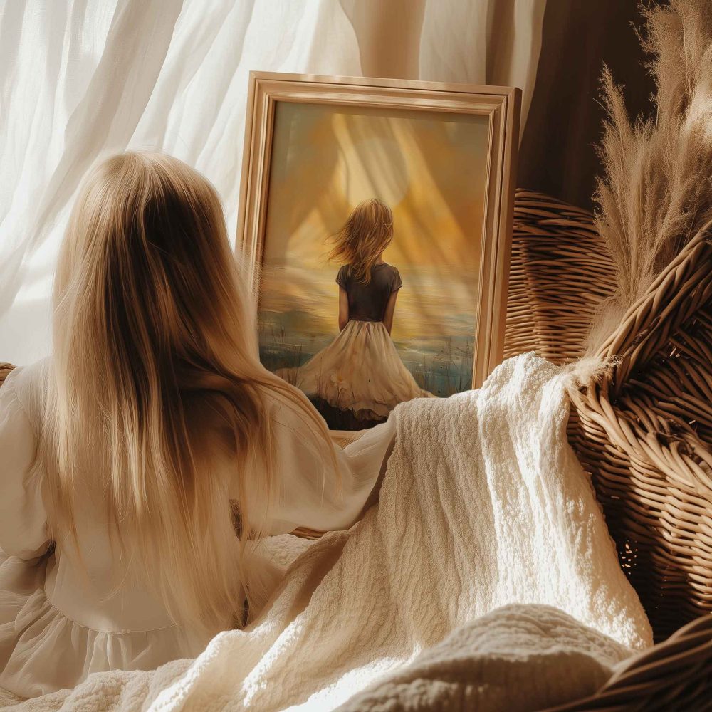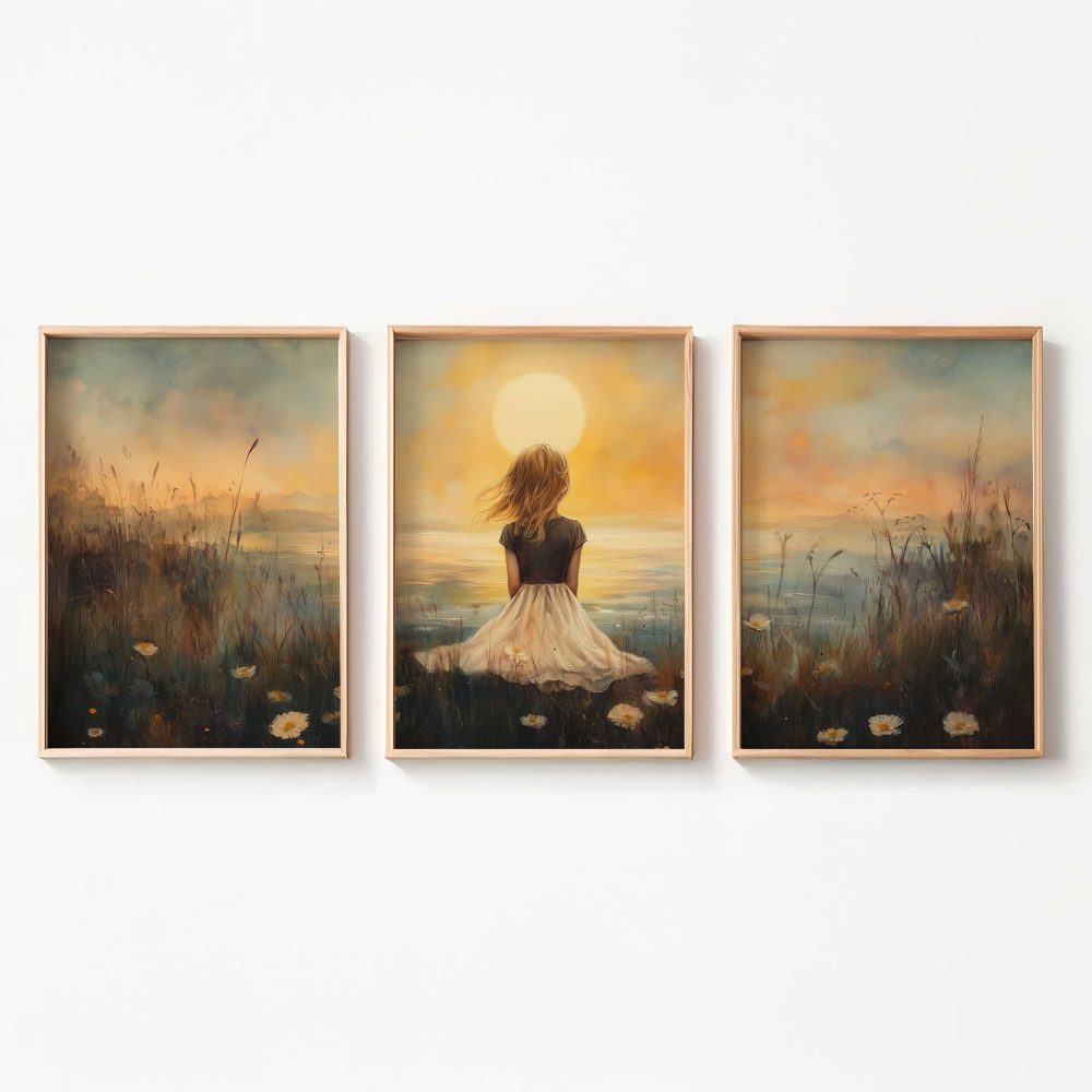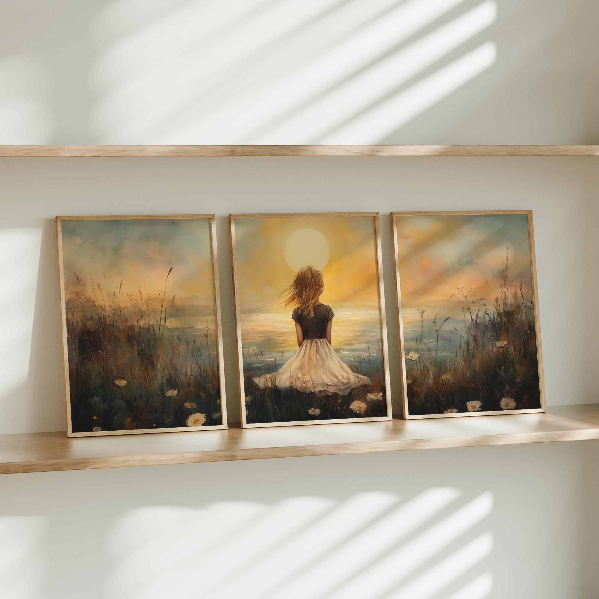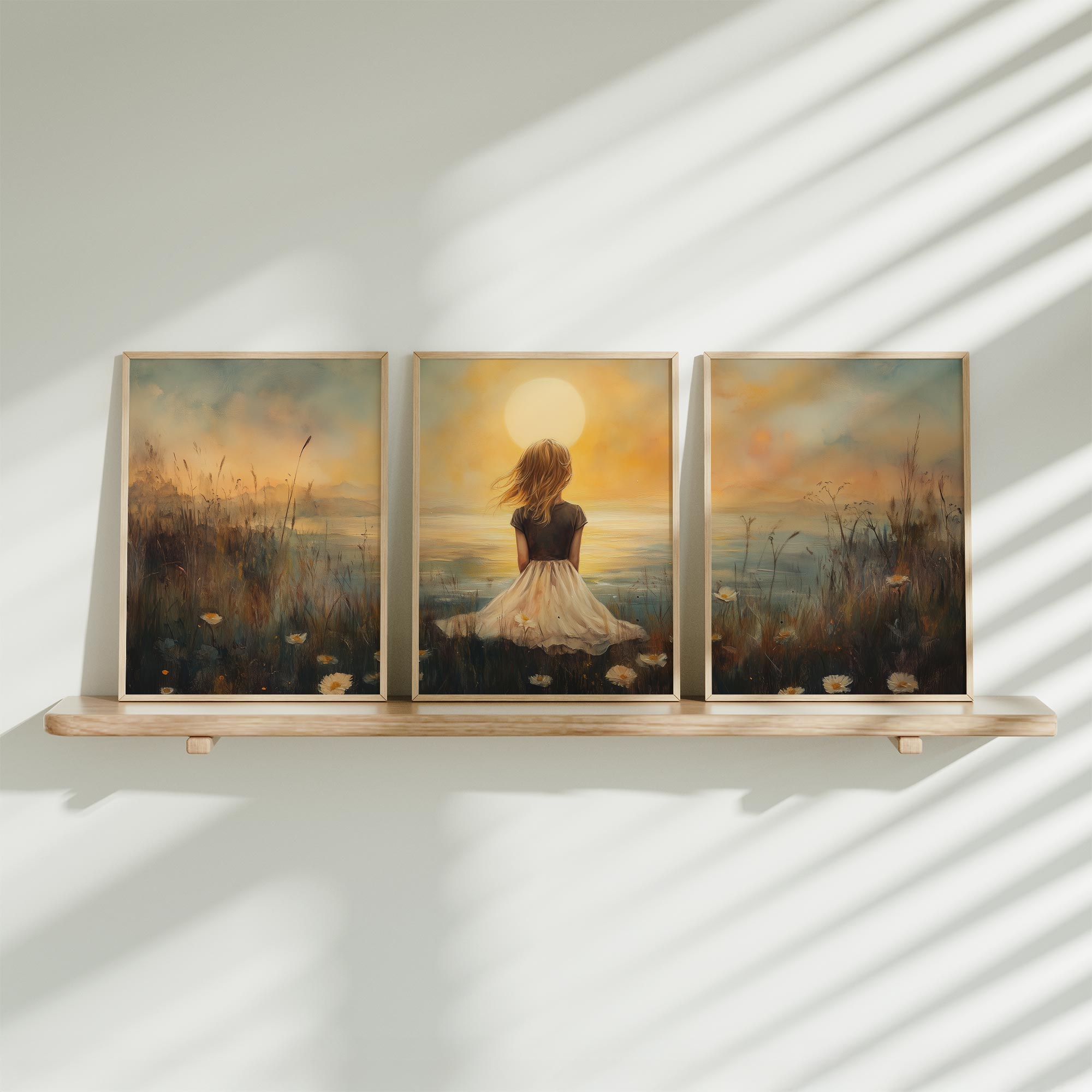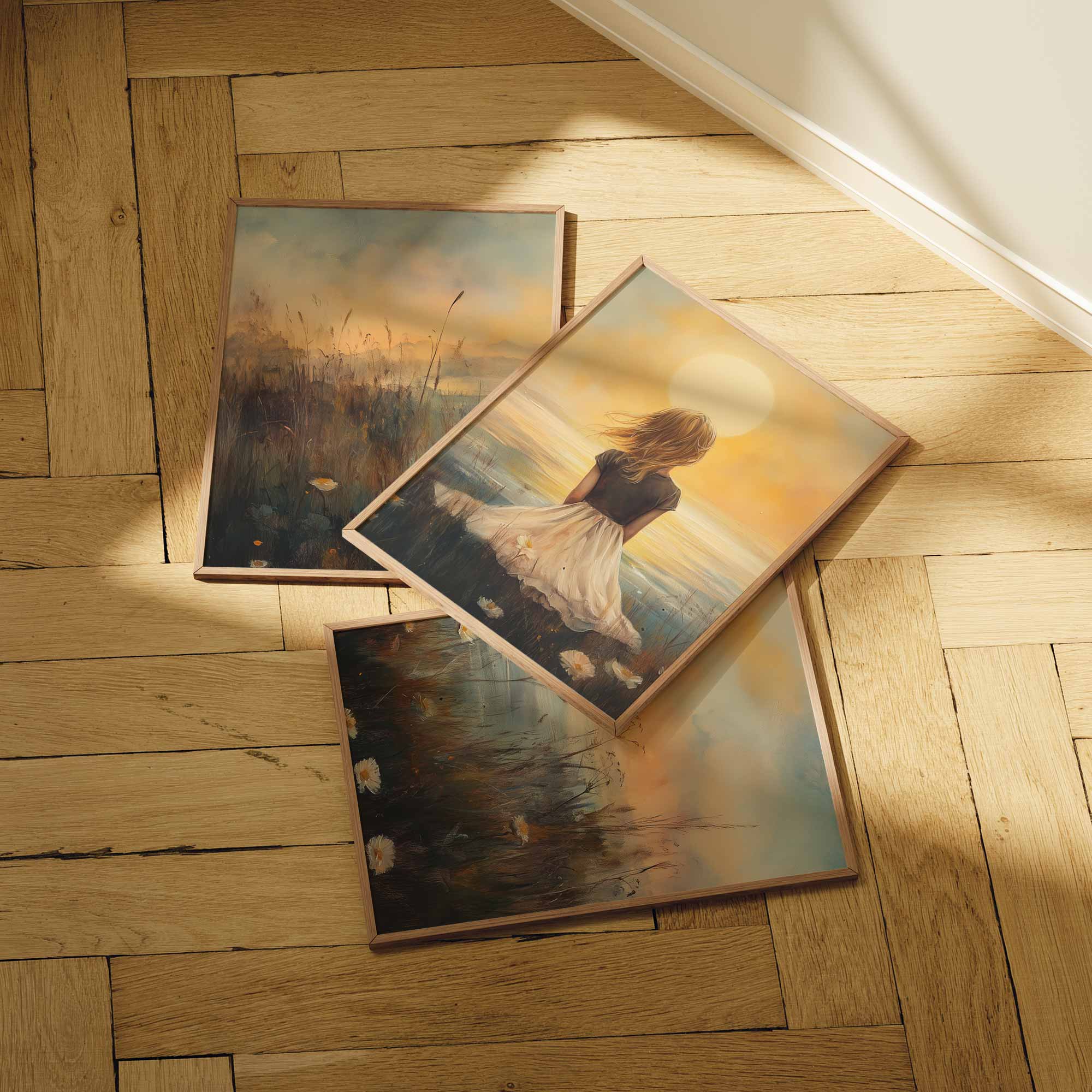 Terug naar collectie / Kinderkamer posters / Bloemen posters / Dromerig Meisje in Bloemenveld aan Zee