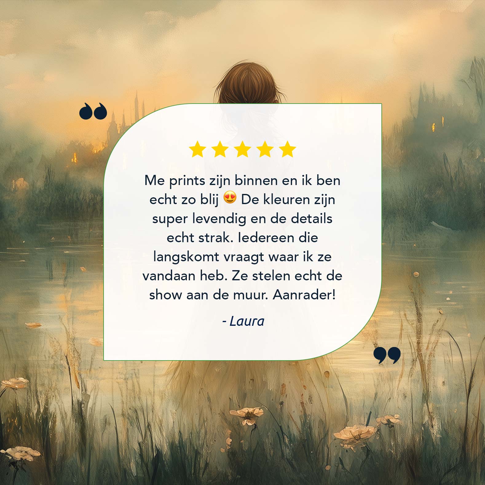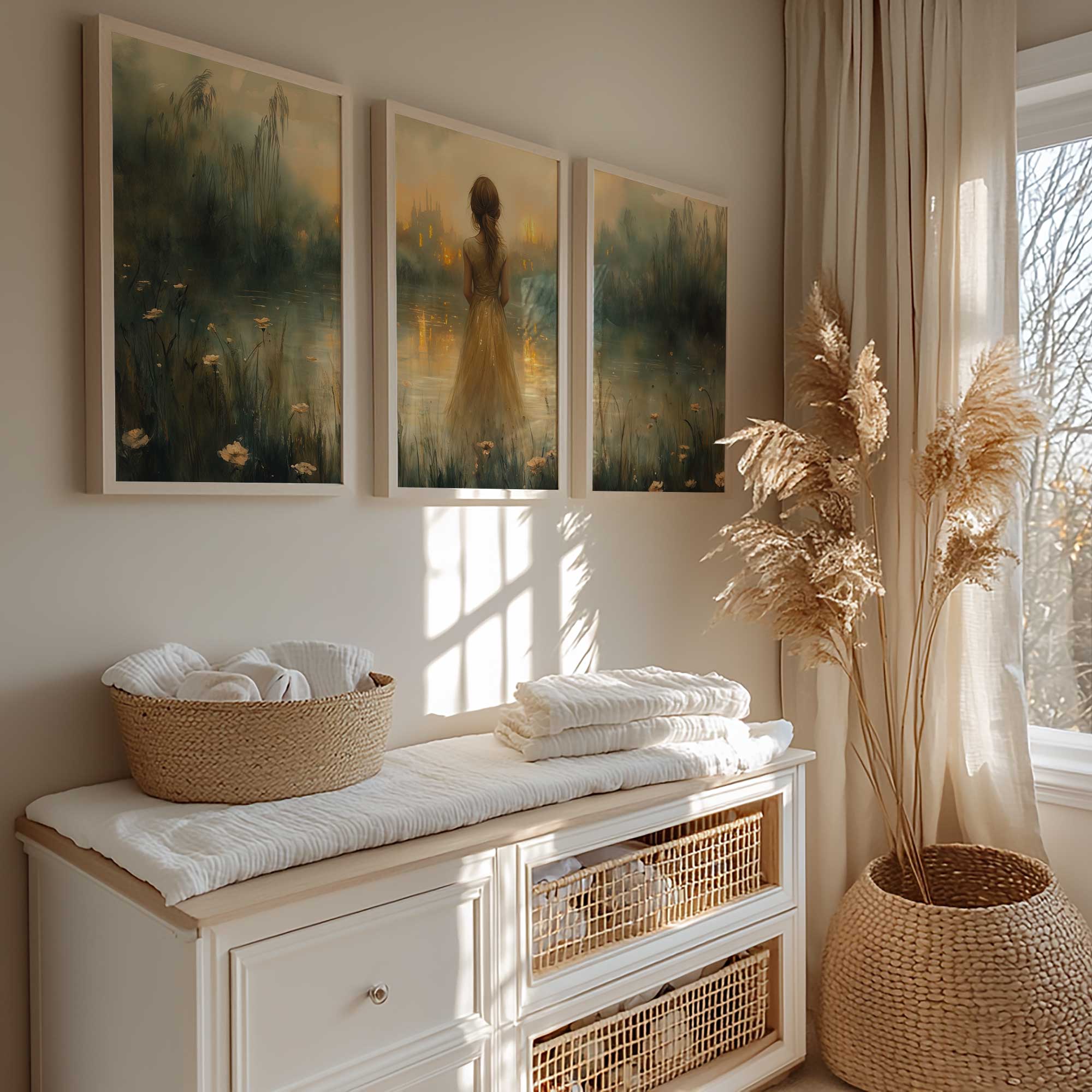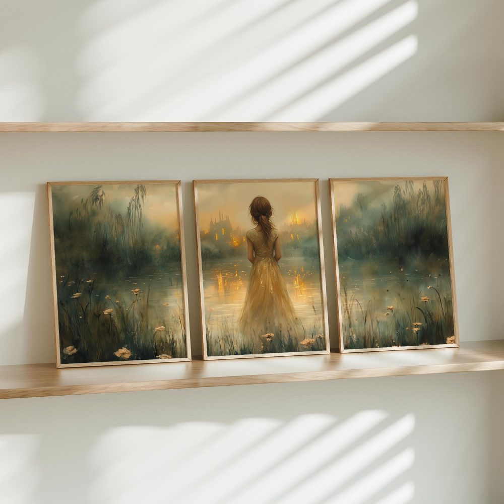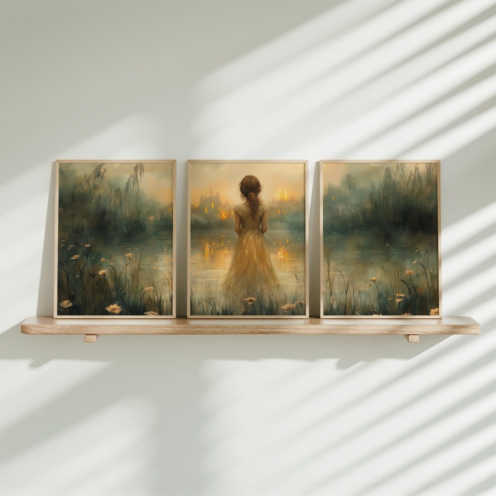 Terug naar collectie / Kinderkamer posters / Bloemen posters / Dromerig Meisje in Bloemenveld bij Water