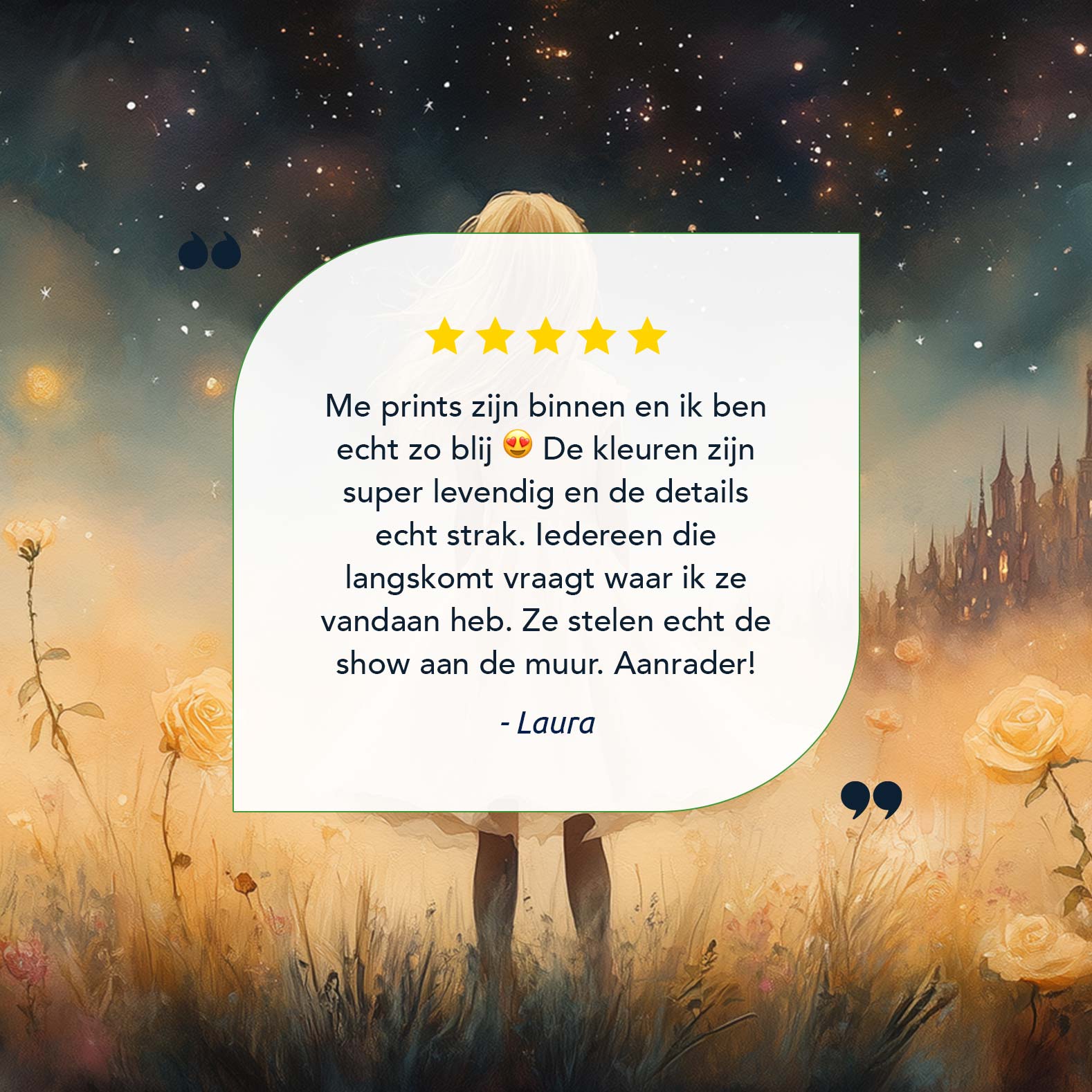 Dromerig Meisje in Bloemenveld met Betoverend Kasteel