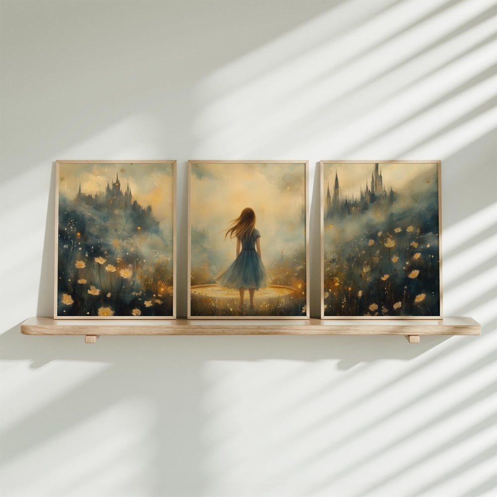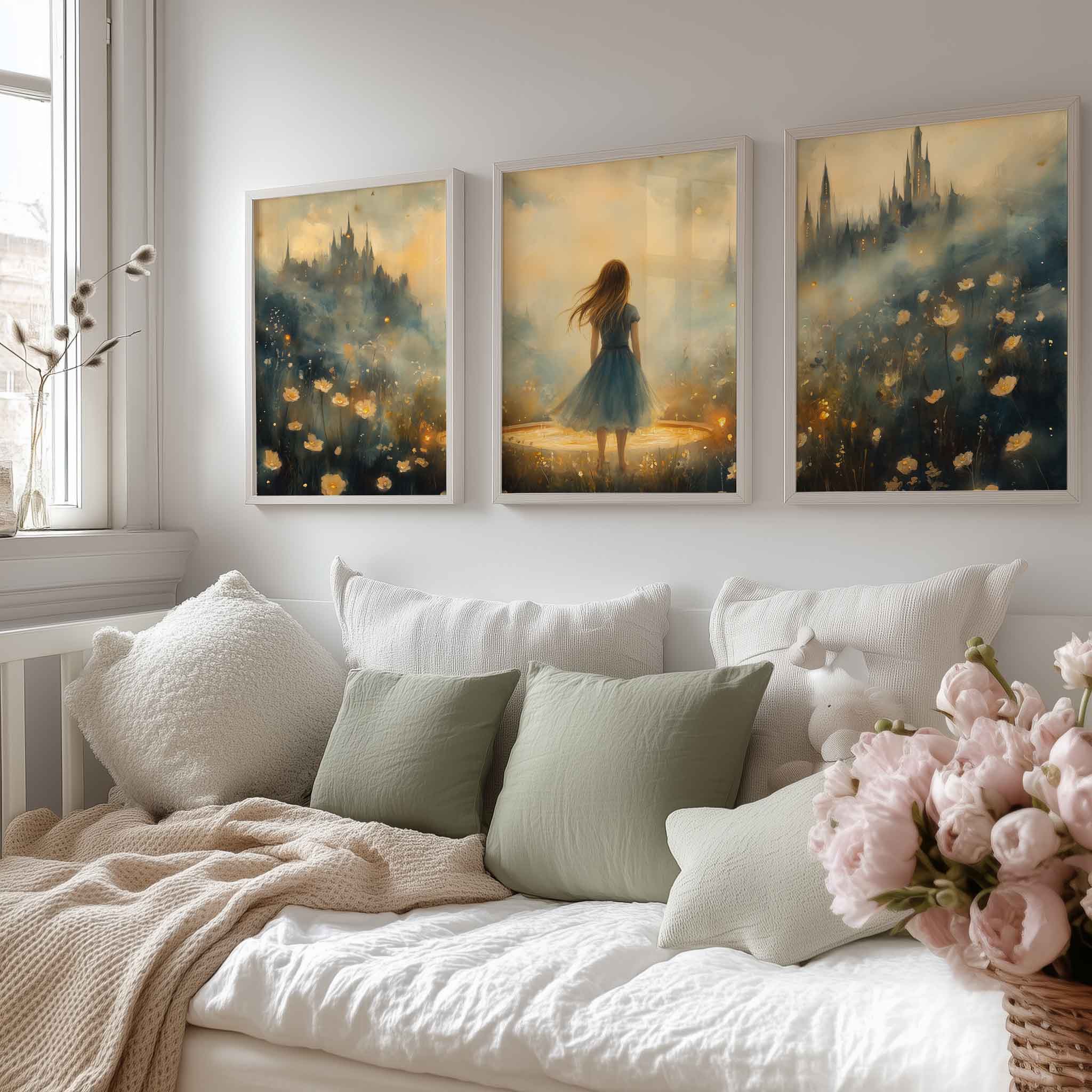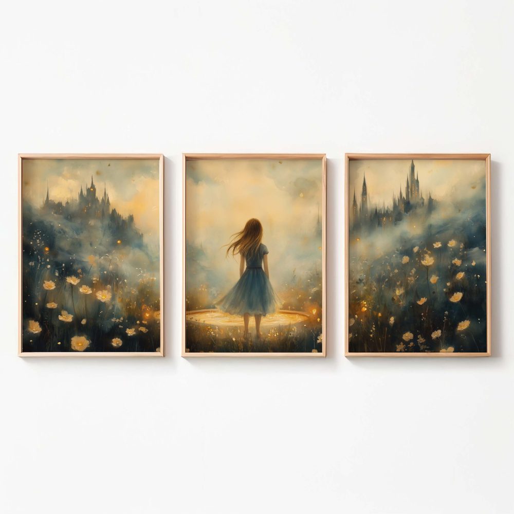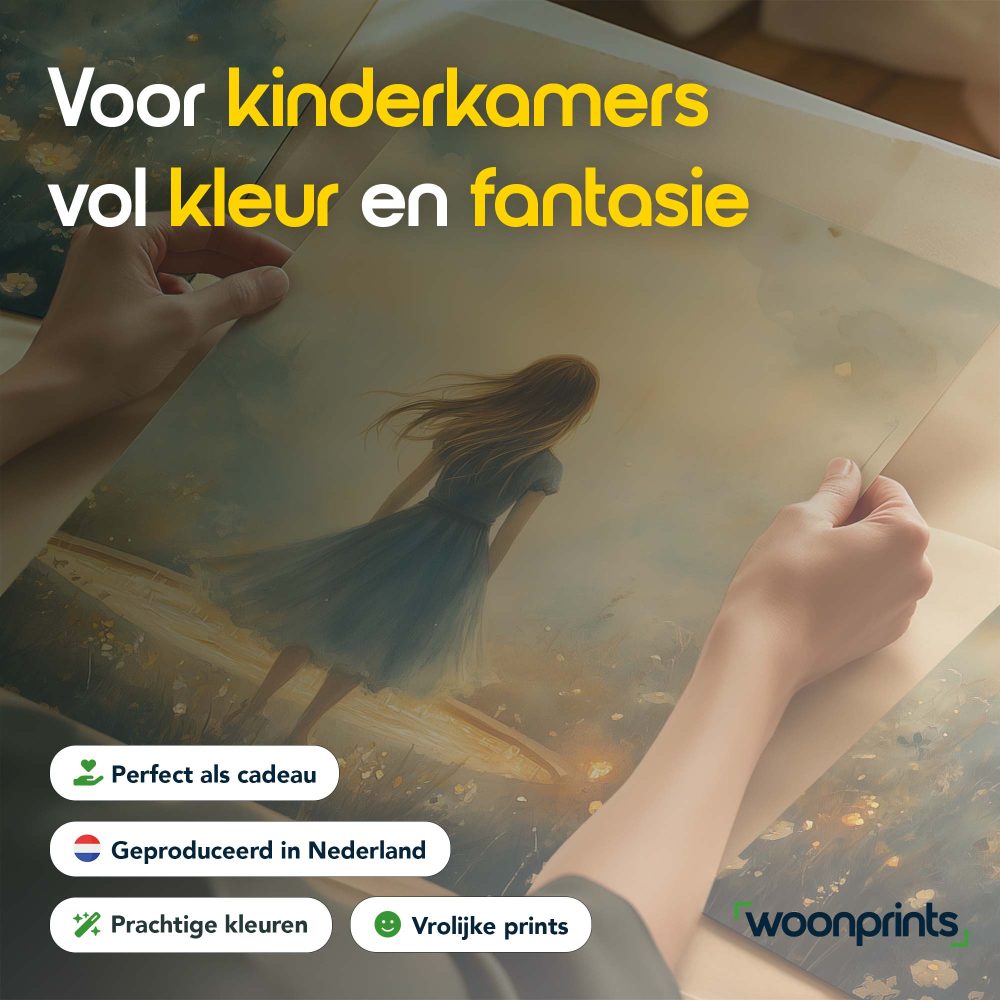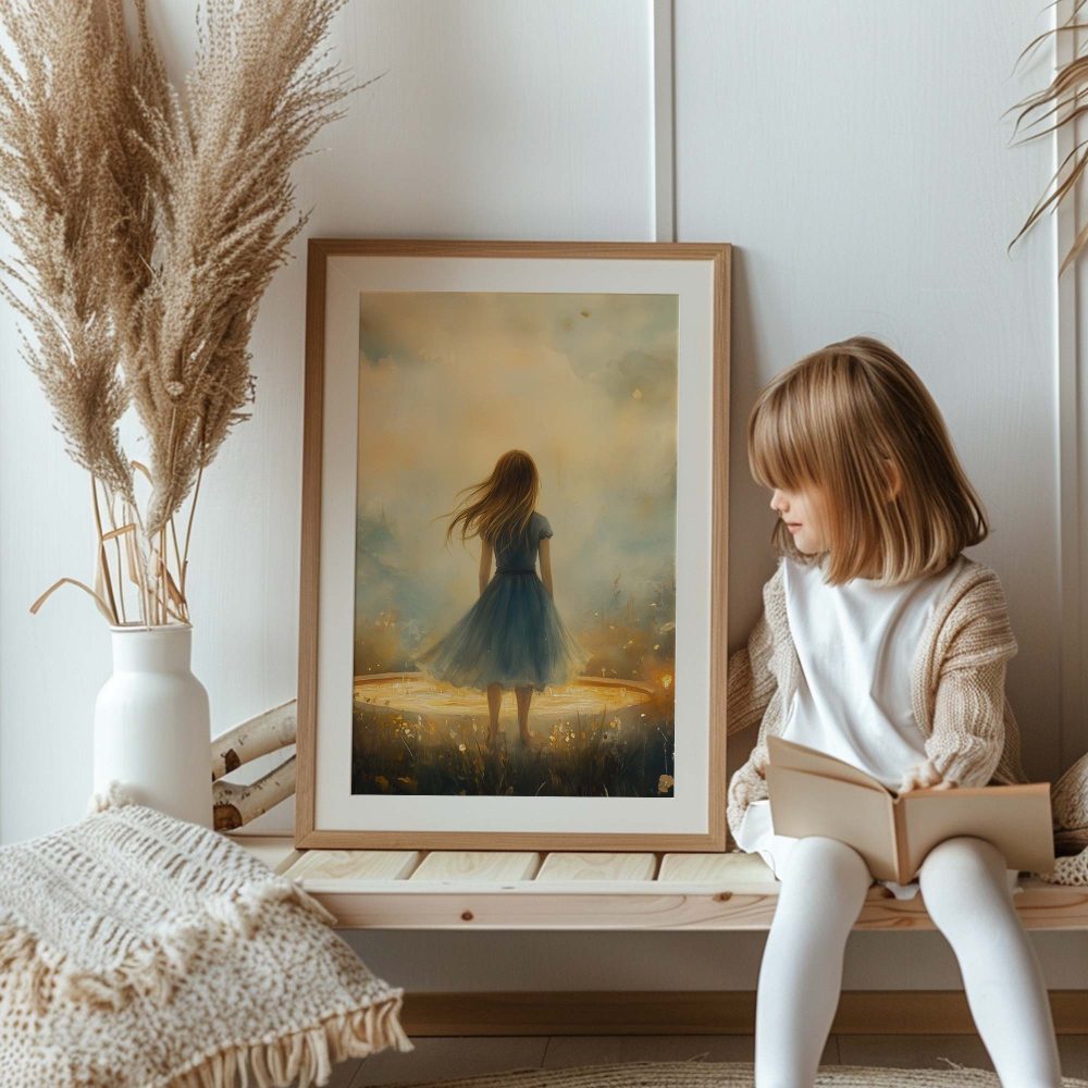 Terug naar collectie / Kinderkamer posters / Bloemen posters / Dromerig Meisje in Bloemenveld met Kasteel