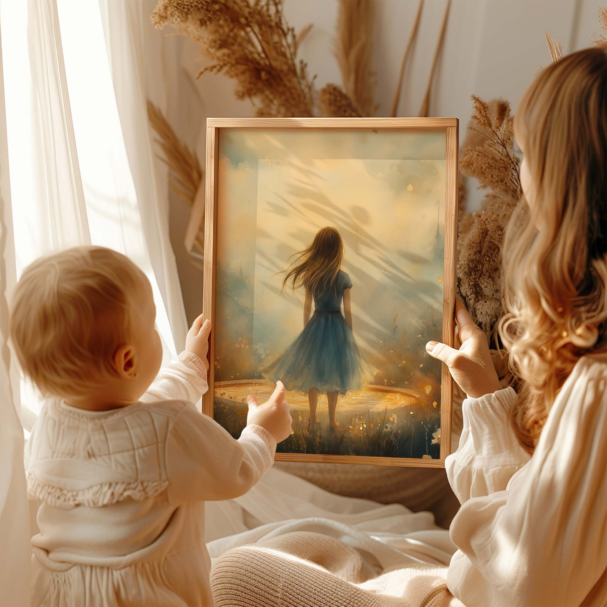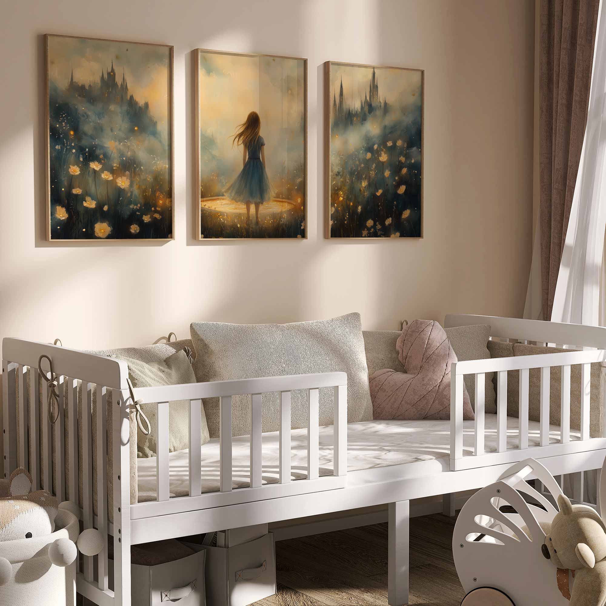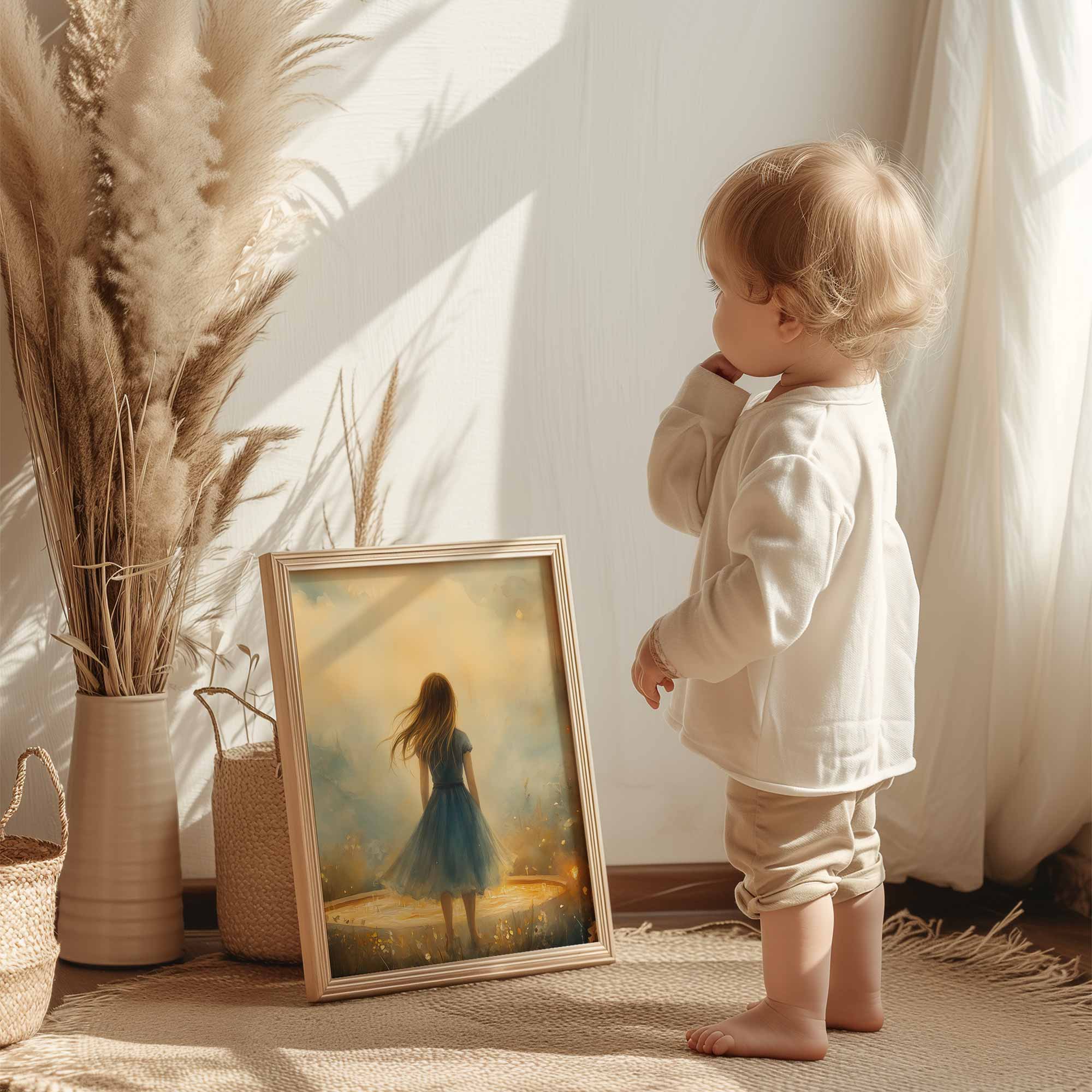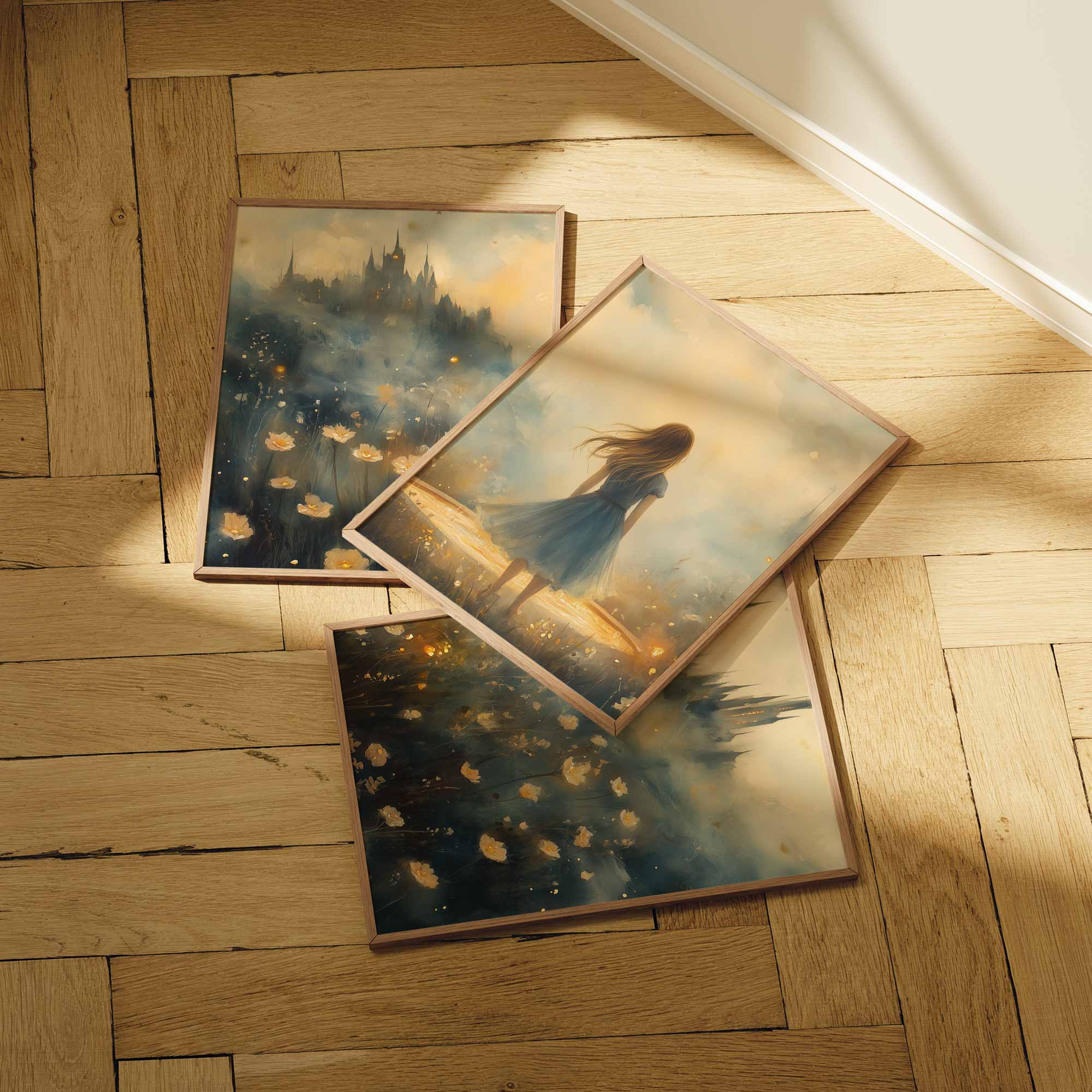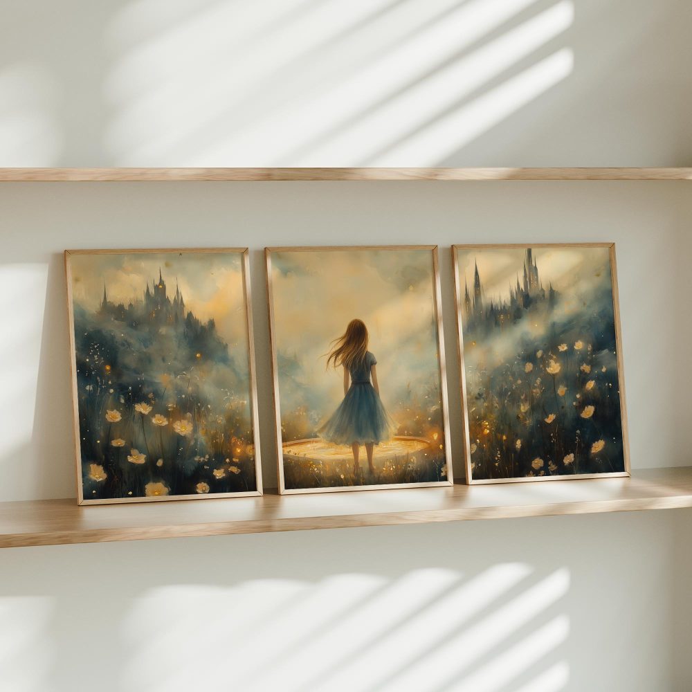 Terug naar collectie / Kinderkamer posters / Bloemen posters / Dromerig Meisje in Bloemenveld met Kasteel