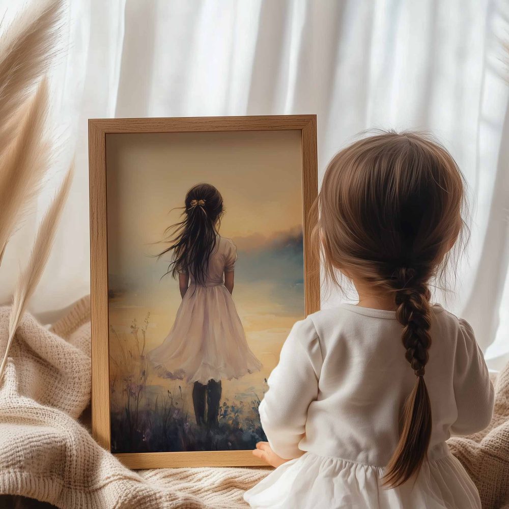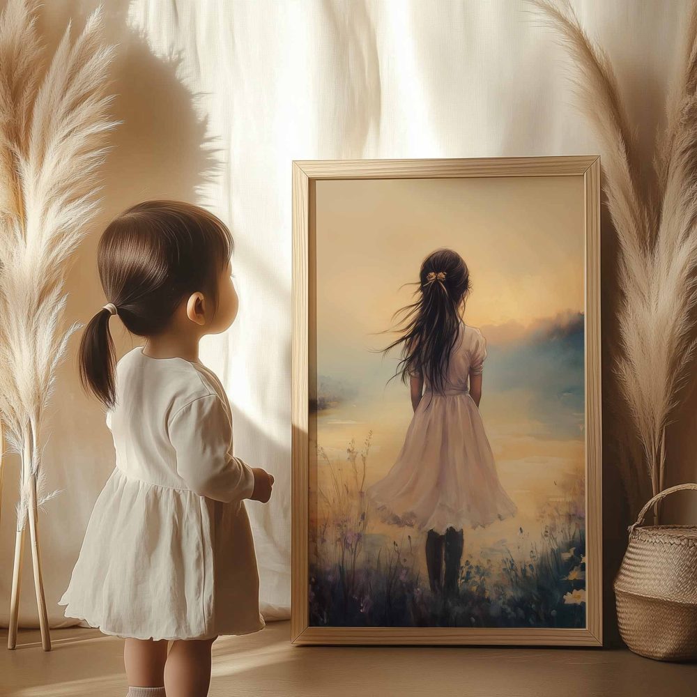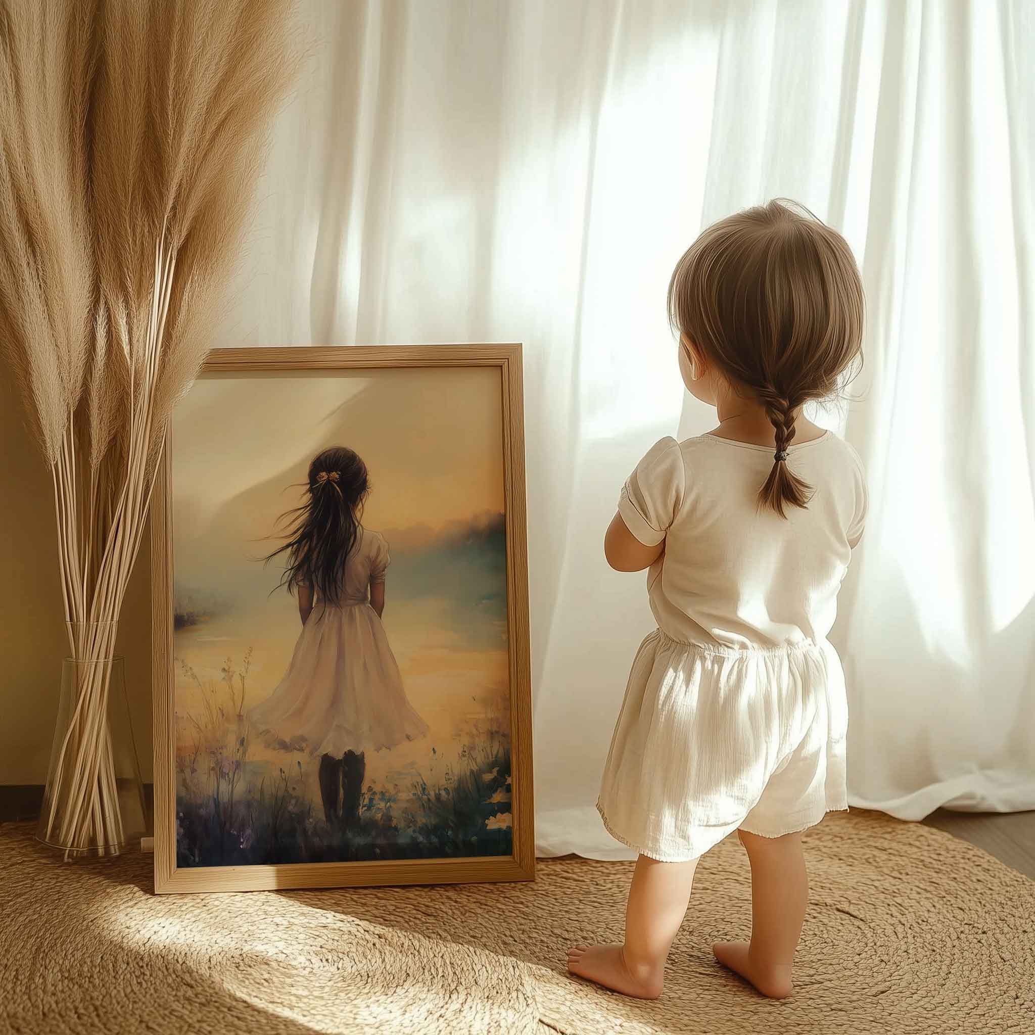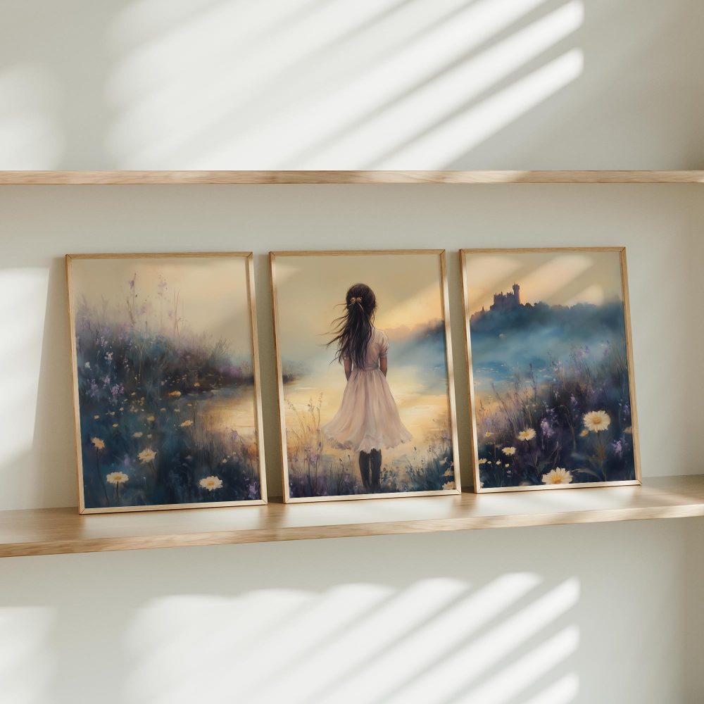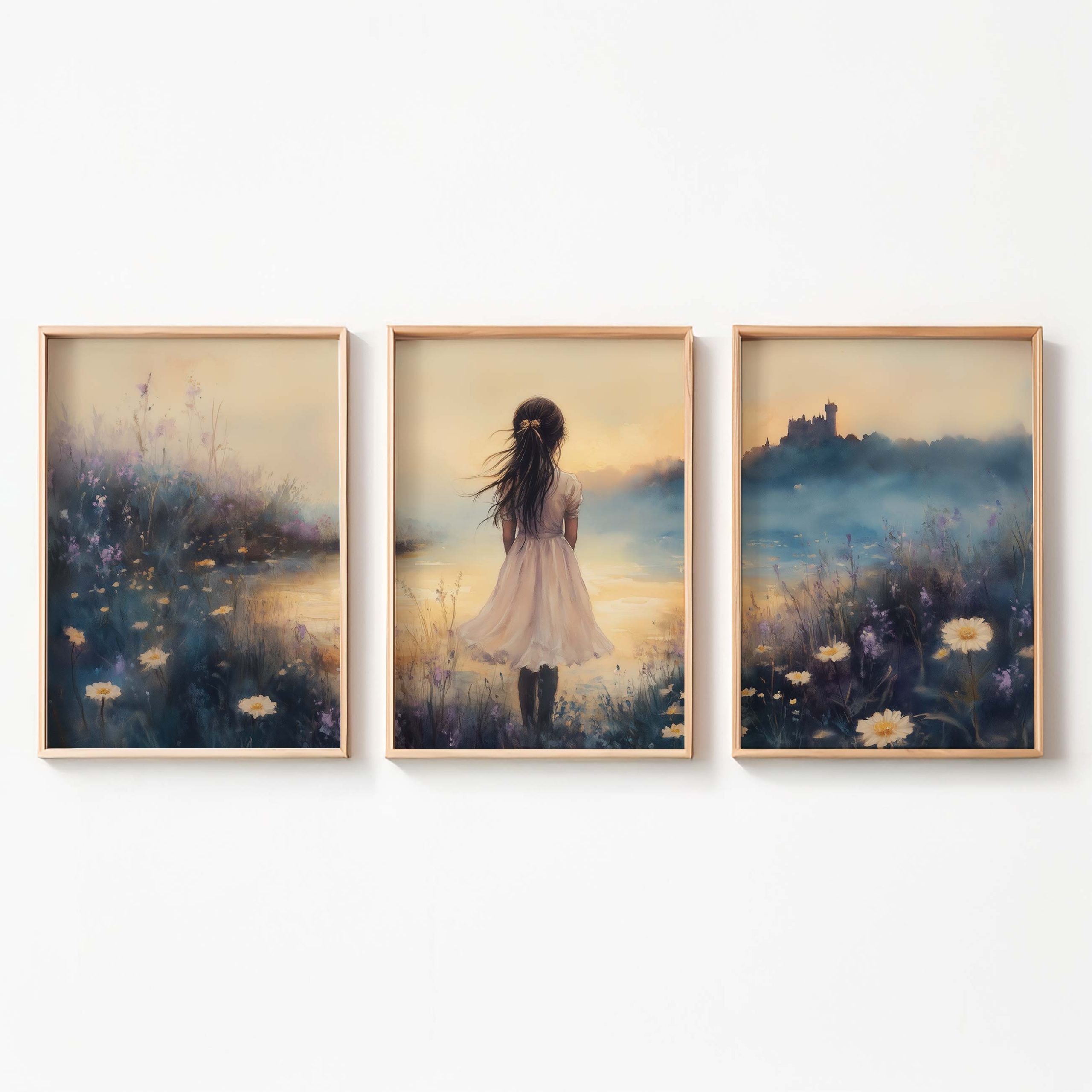 Terug naar collectie / Kinderkamer posters / Bloemen posters / Dromerig Meisje in Bloemenveld met Kasteel