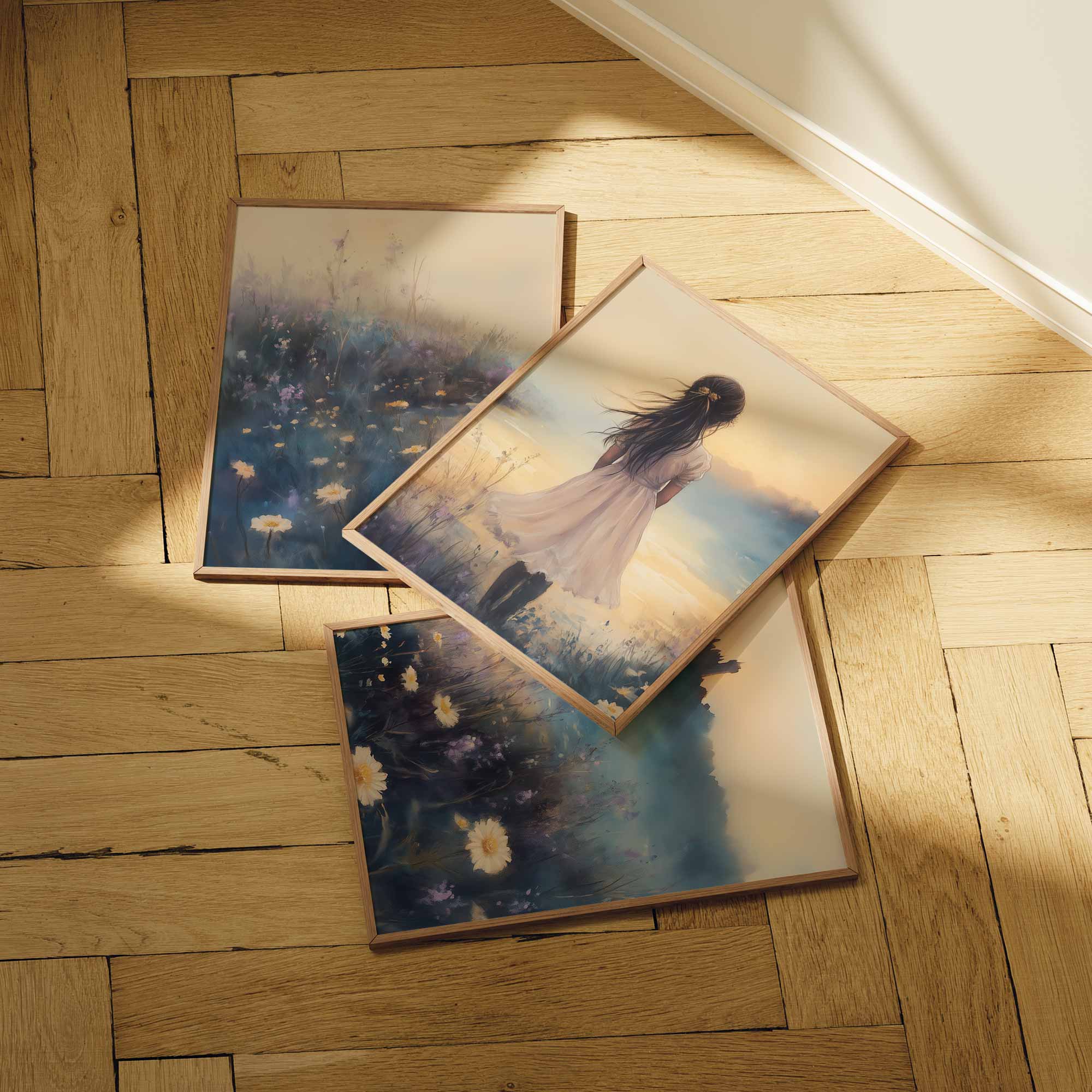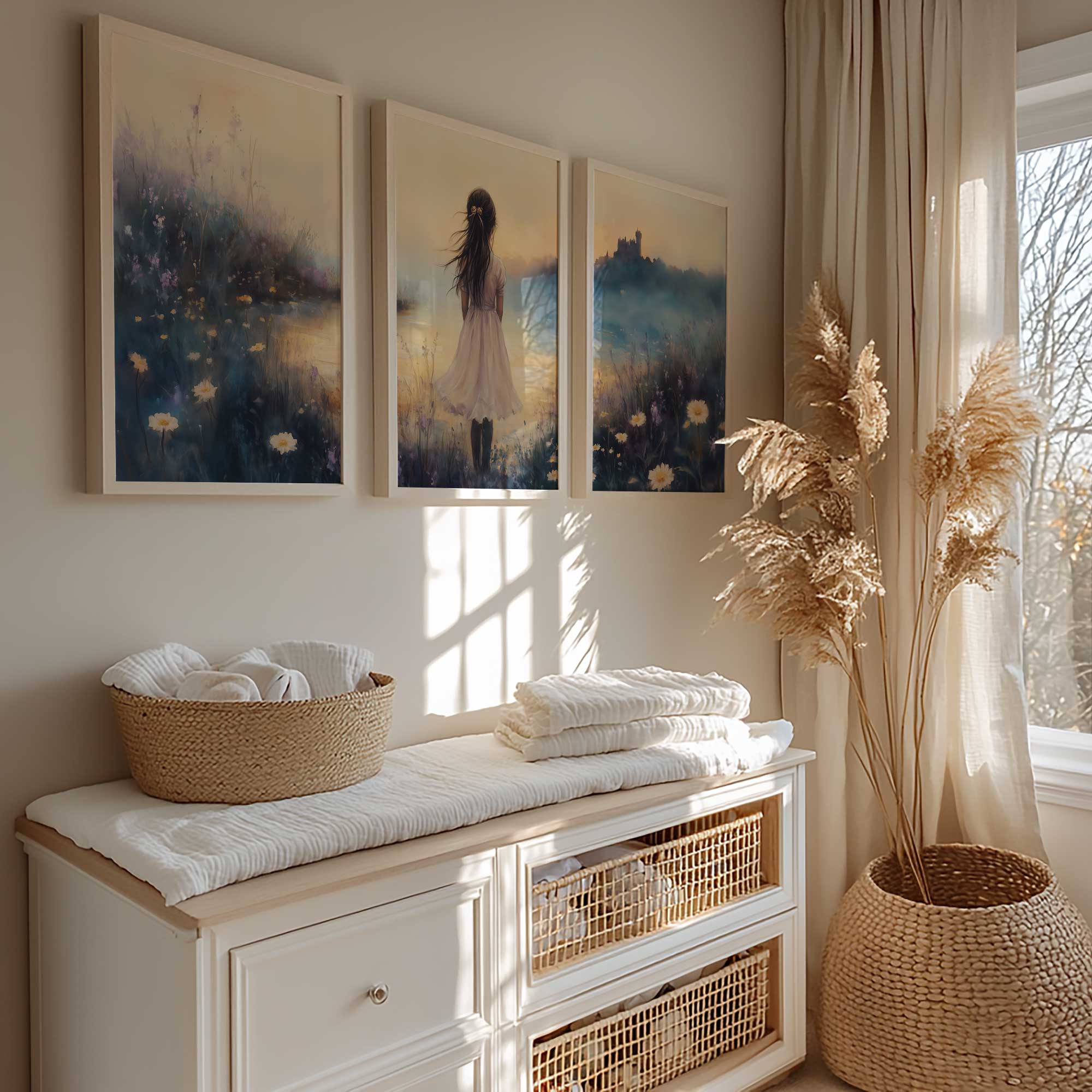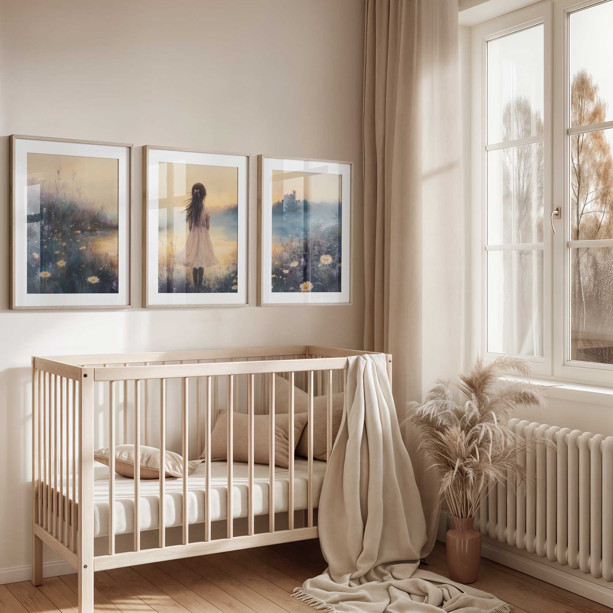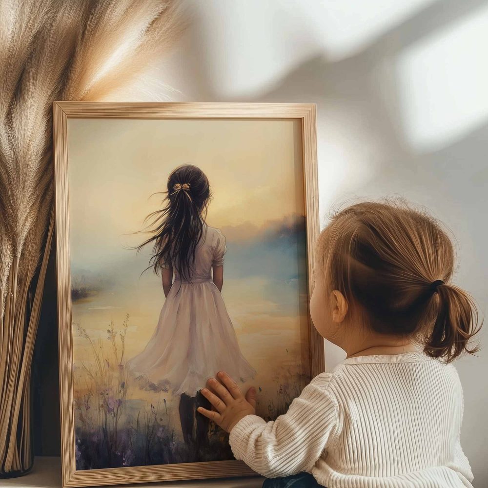Terug naar collectie / Kinderkamer posters / Bloemen posters / Dromerig Meisje in Bloemenveld met Kasteel