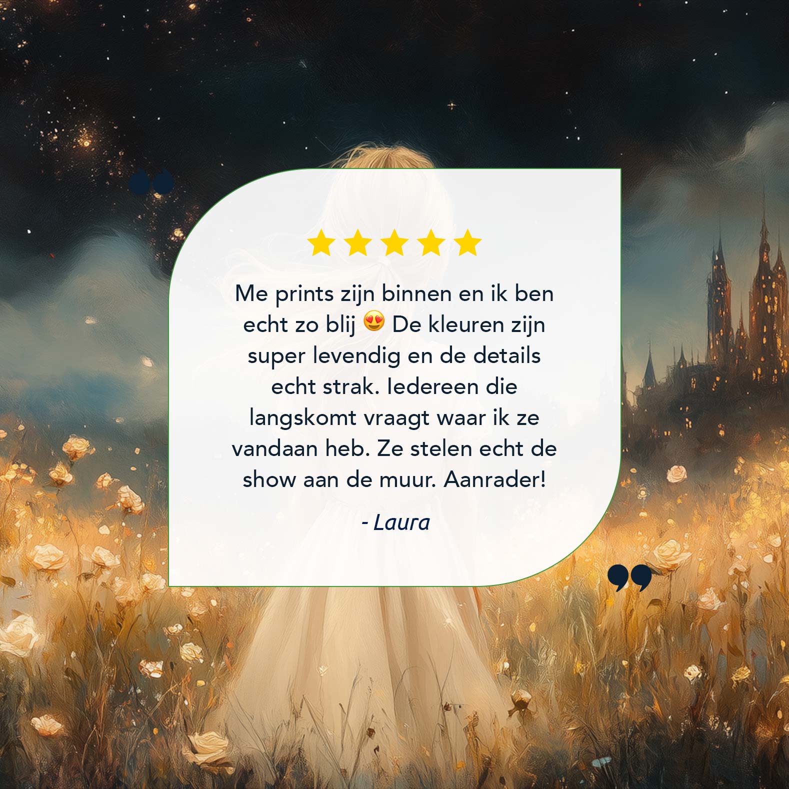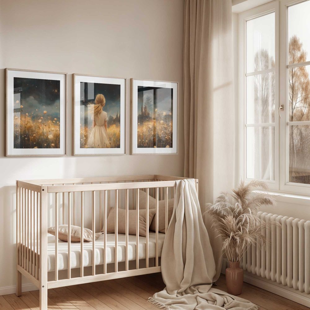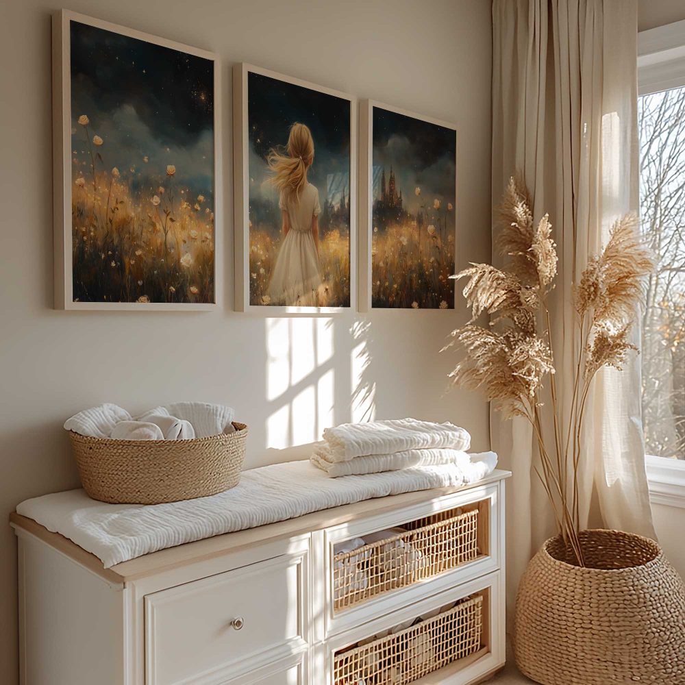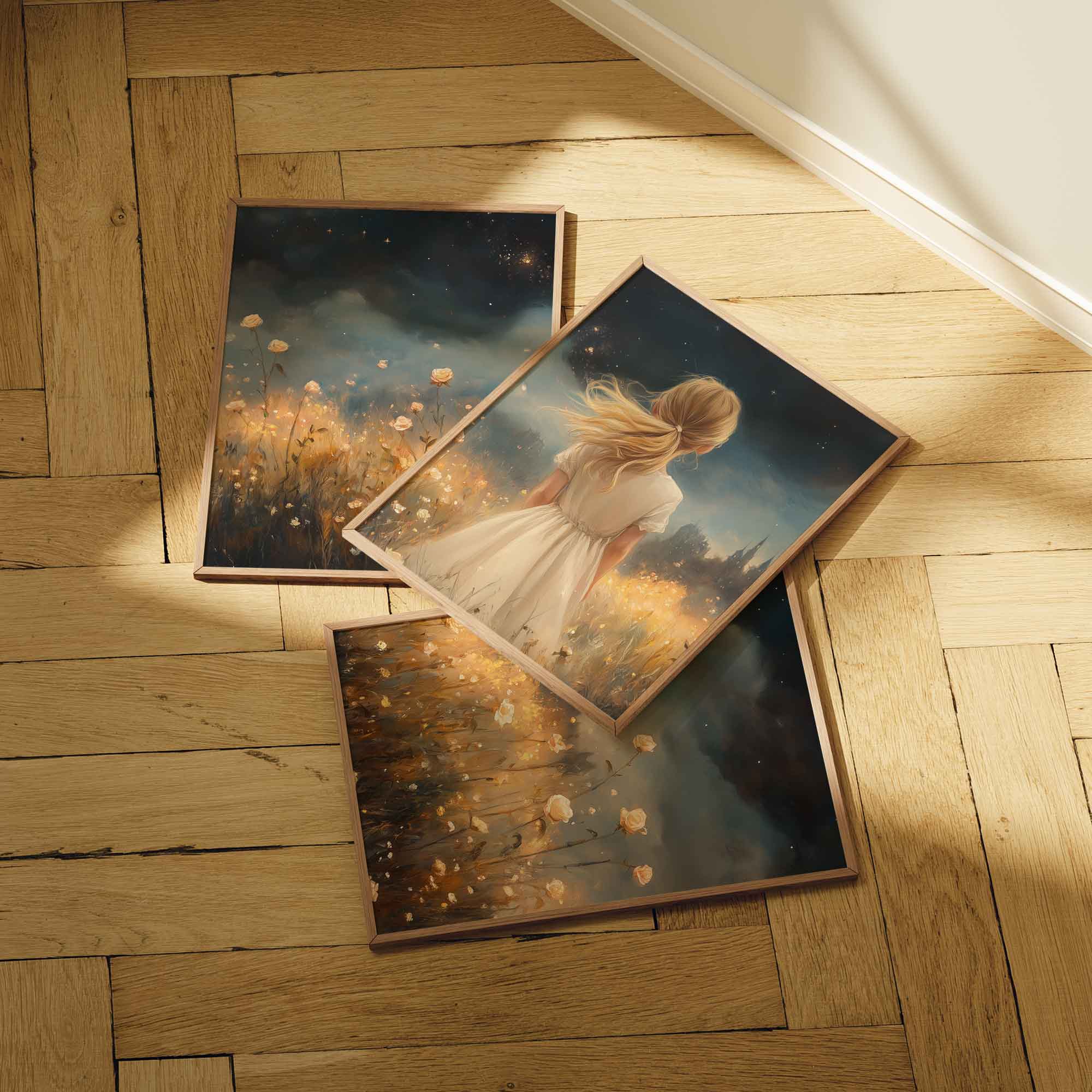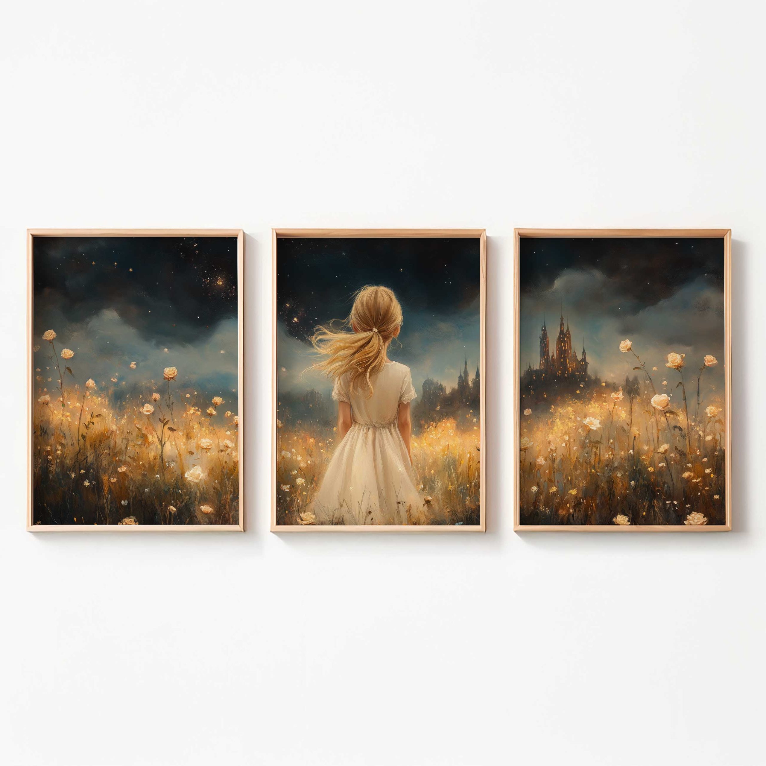 Terug naar collectie / Kinderkamer posters / Bloemen posters / Dromerig Meisje in Bloemenveld met Kasteel
