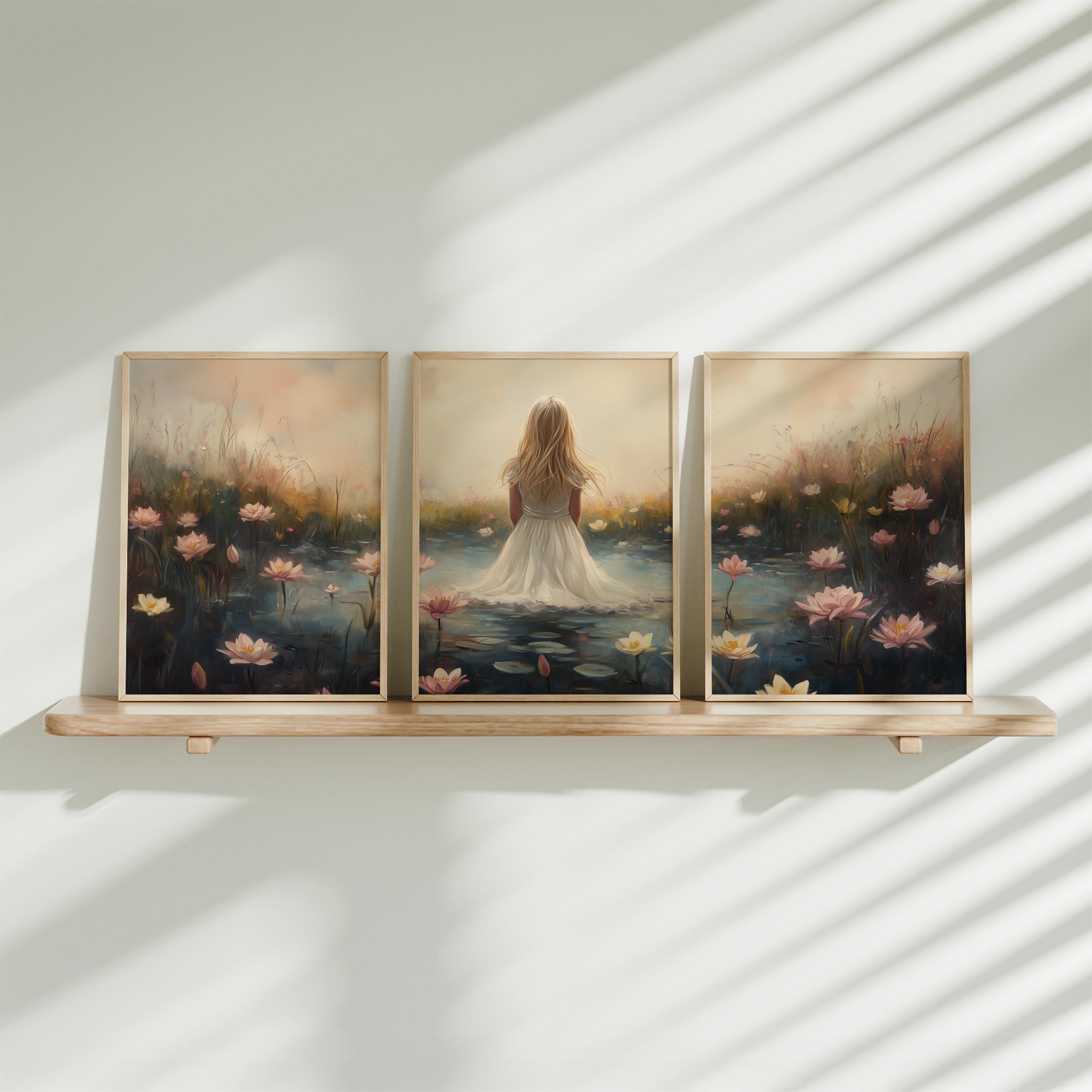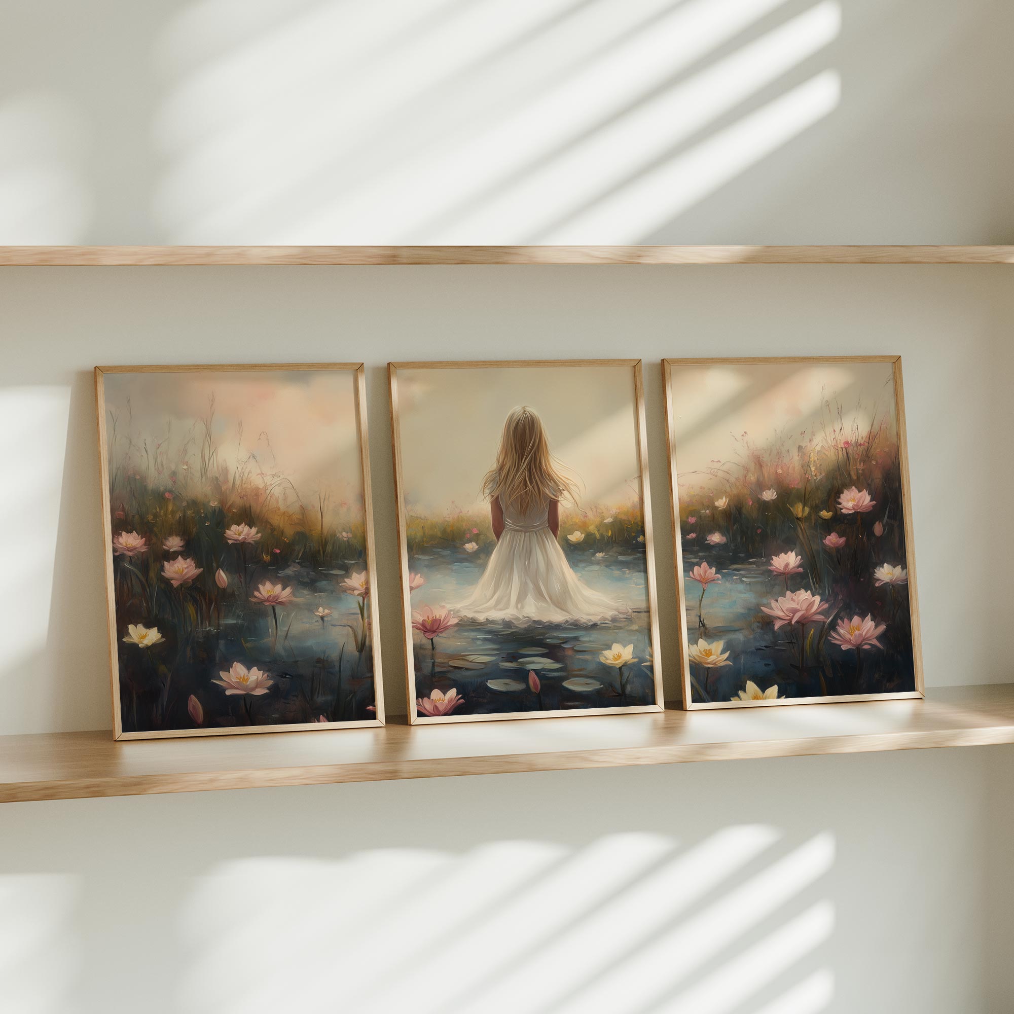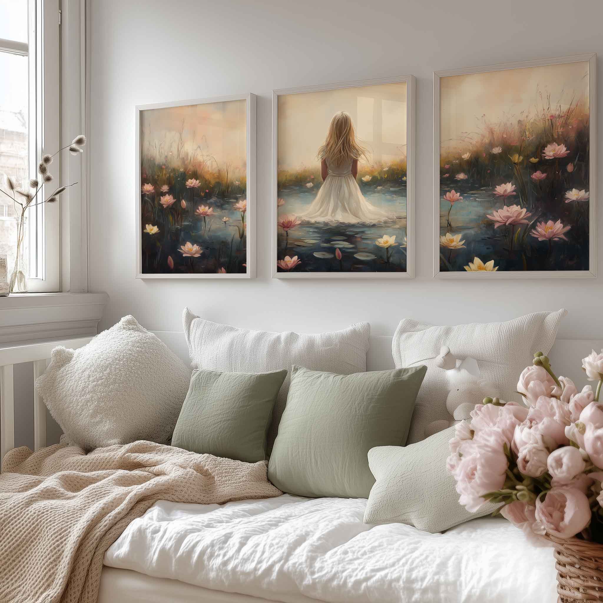 Terug naar collectie / Kinderkamer posters / Bloemen posters / Dromerig Meisje in Bloemenveld – Roze Sereniteit