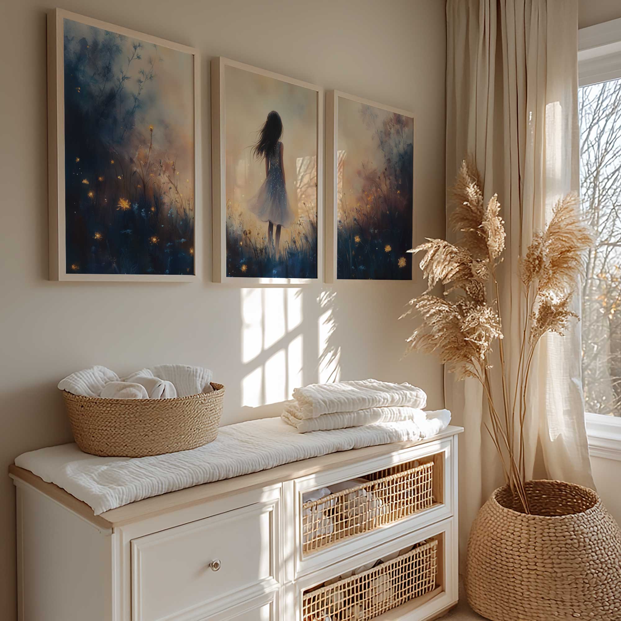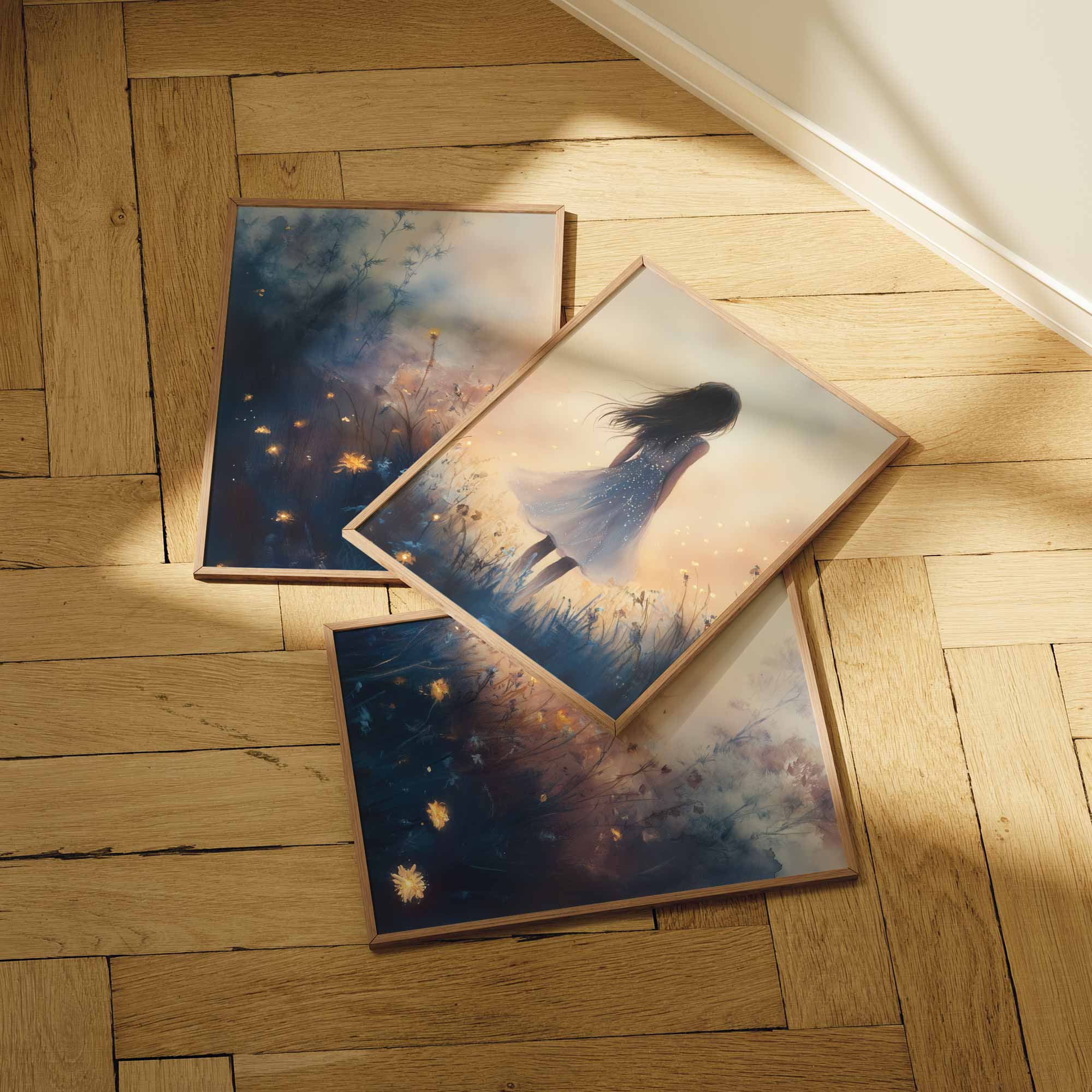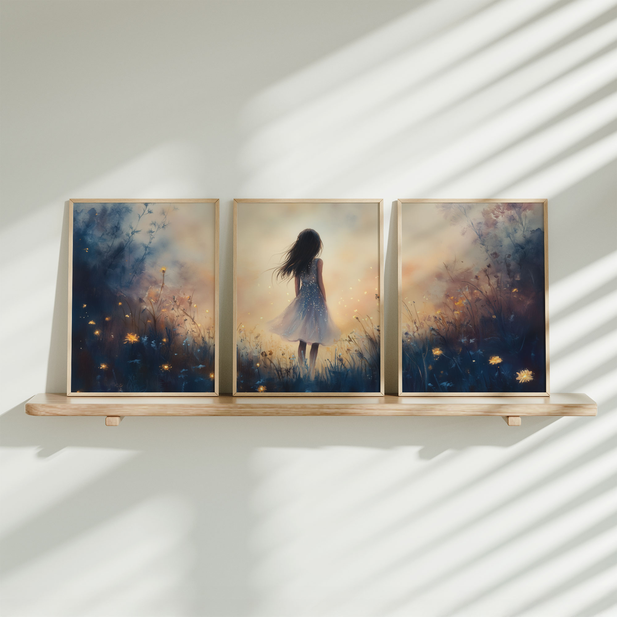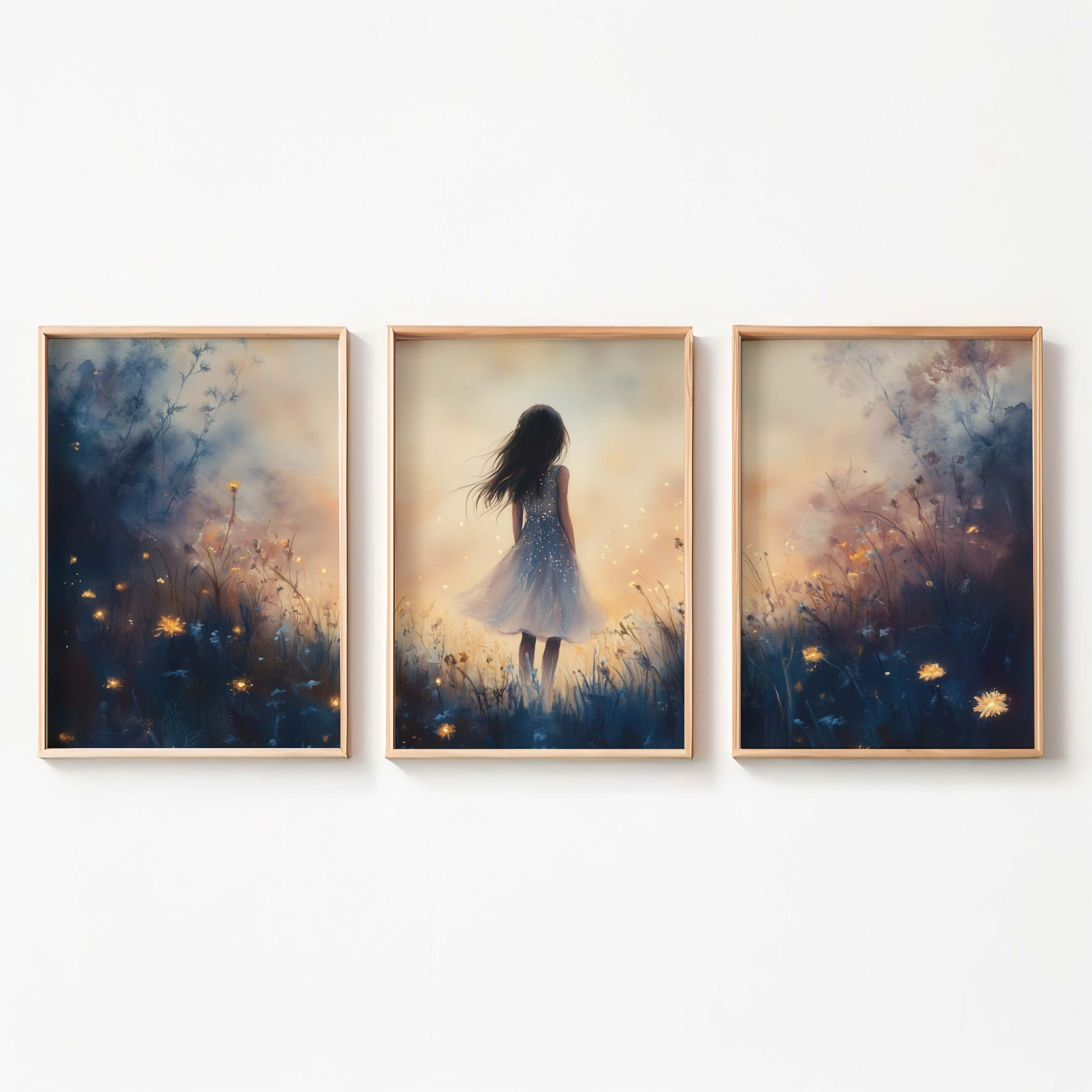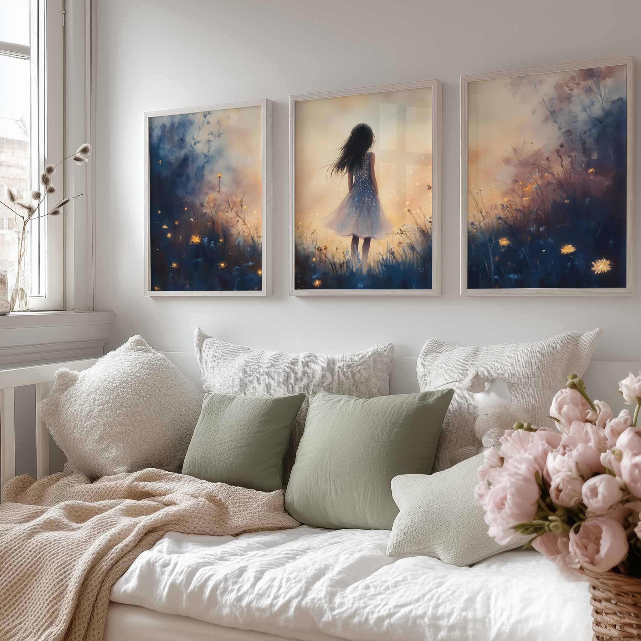 Terug naar collectie / Kinderkamer posters / Bloemen posters / Dromerig Meisje in Bloemenveld – Speels en Zacht