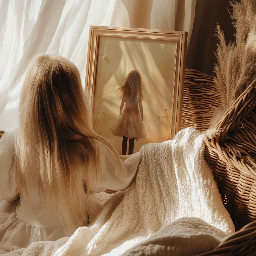 Dromerig Meisje in Bloemenveld – Warme Kinderfantasie