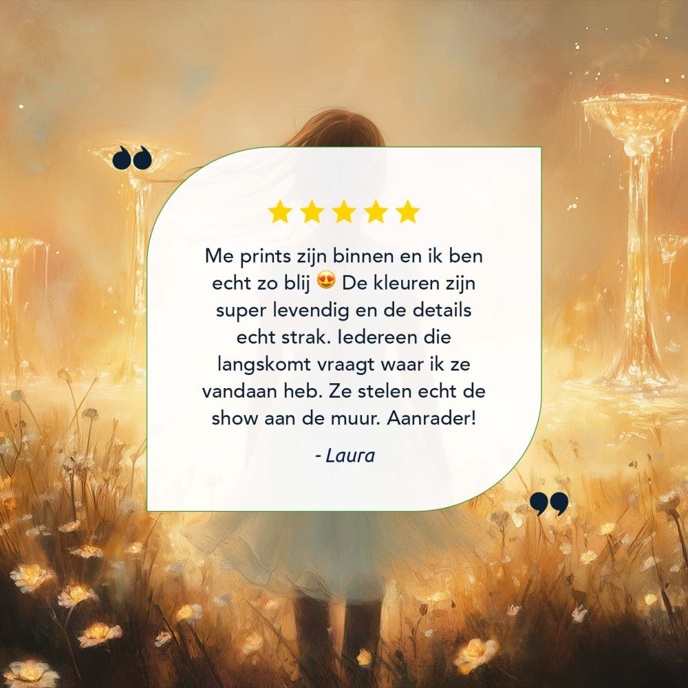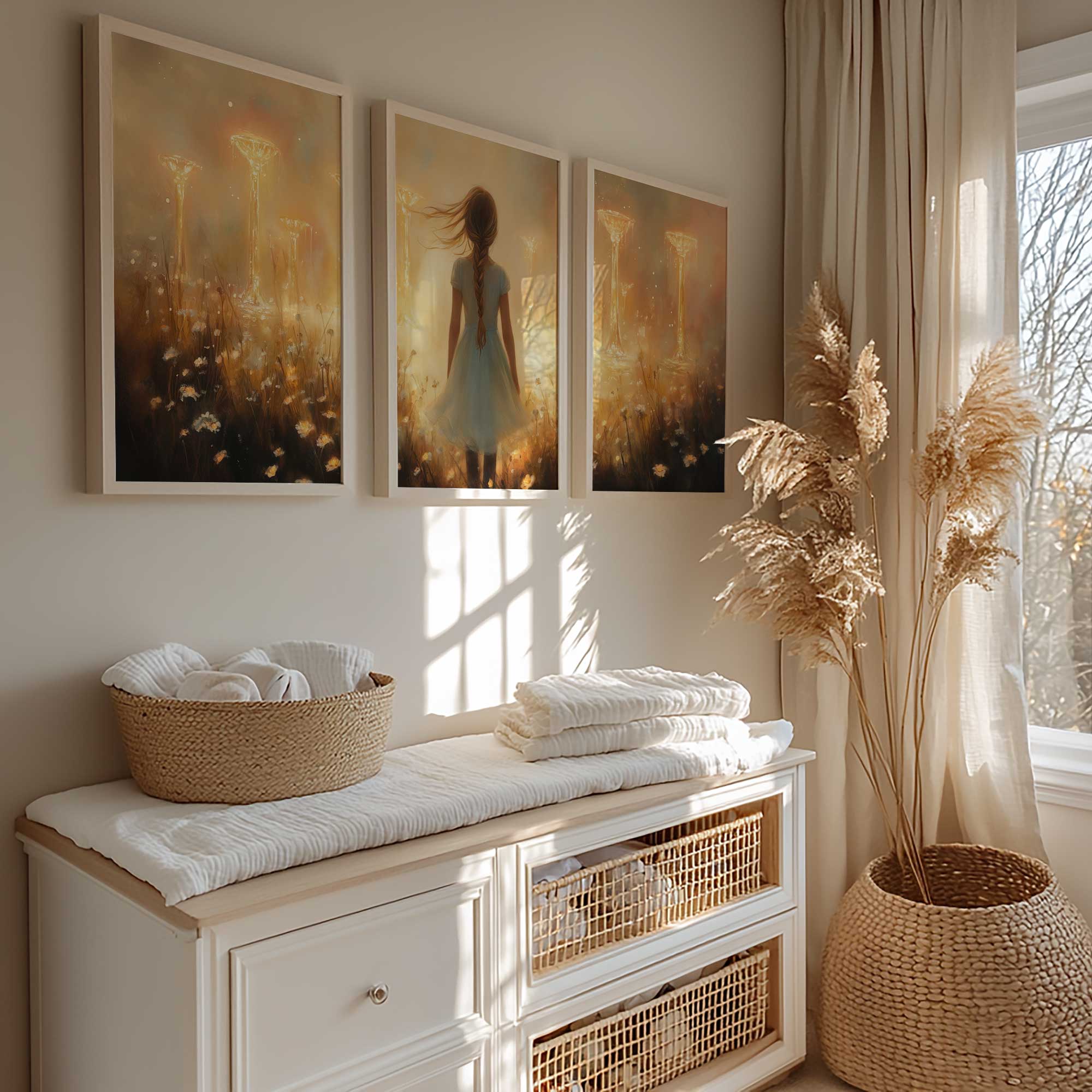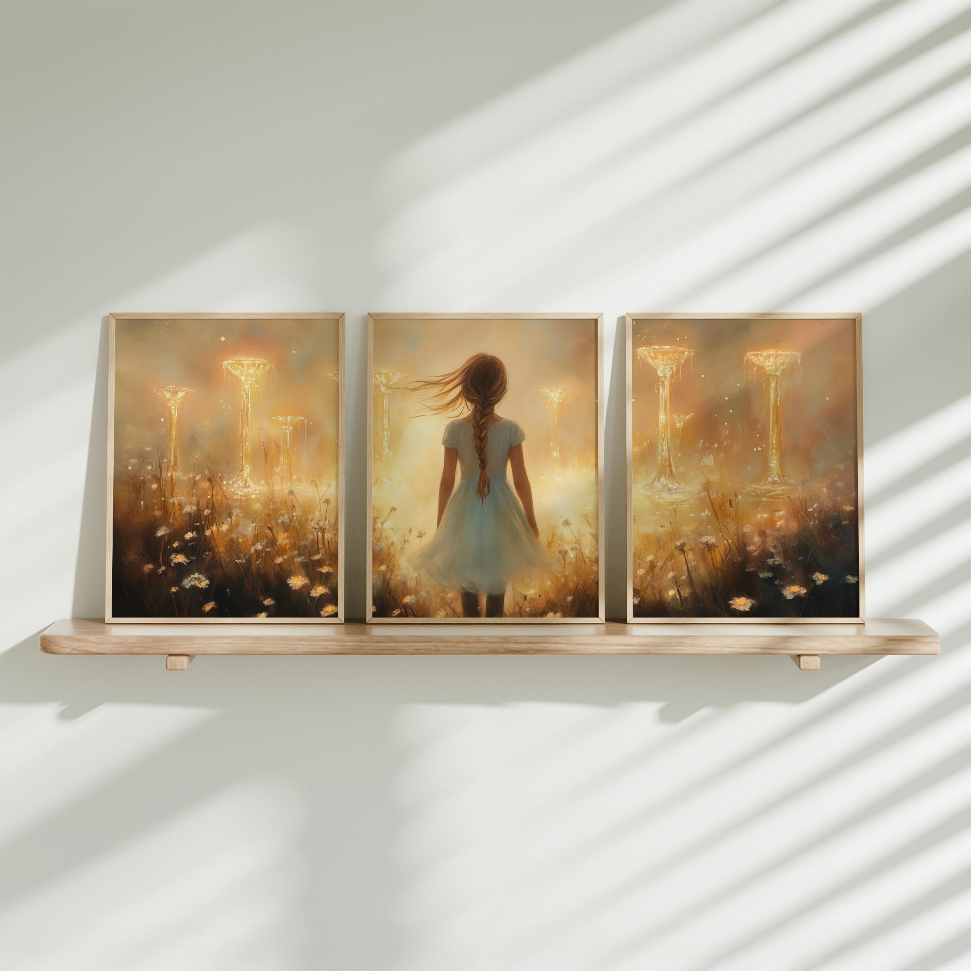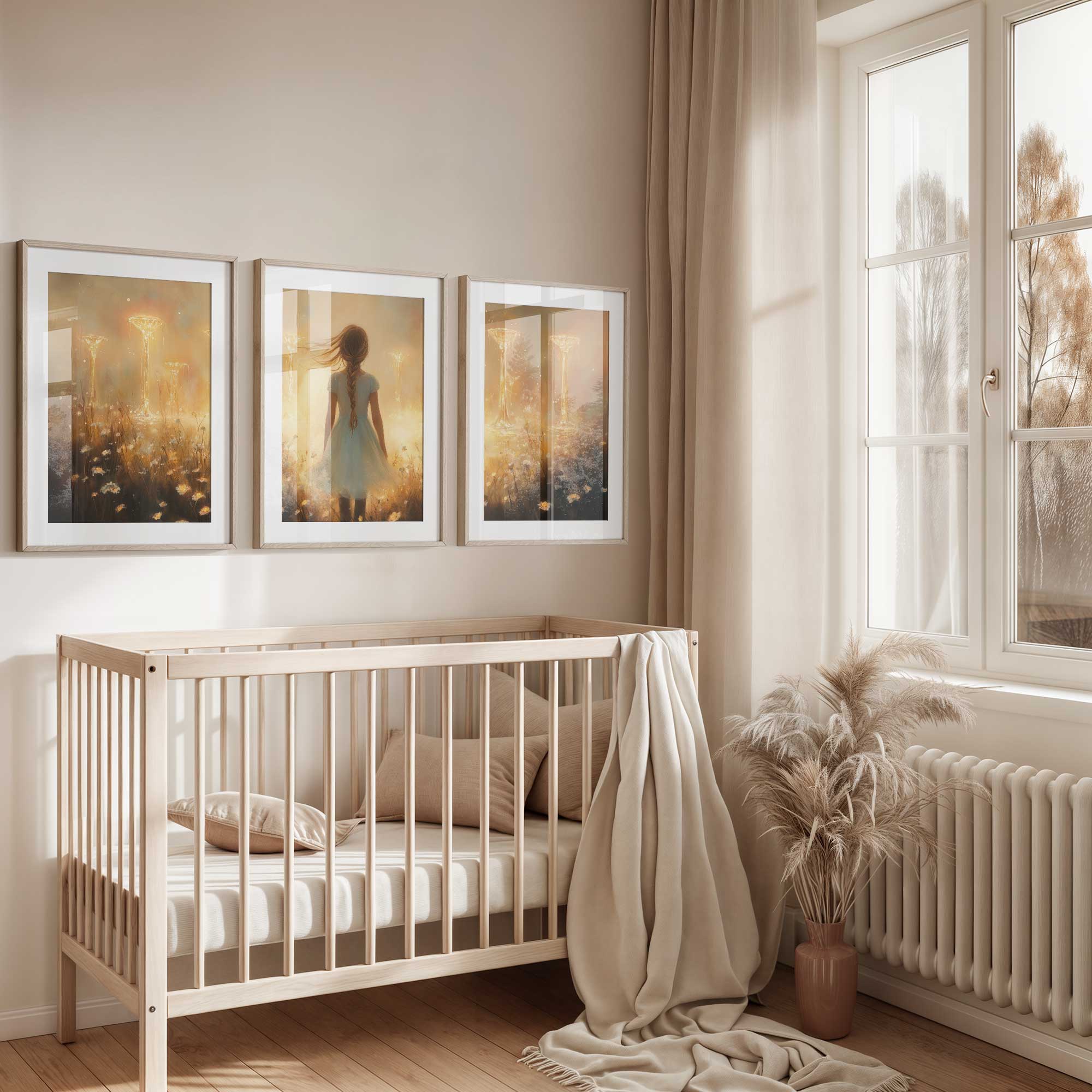 Terug naar collectie / Kinderkamer posters / Bloemen posters / Dromerig Meisje in Bloemenveld – Warme Zonneschijn