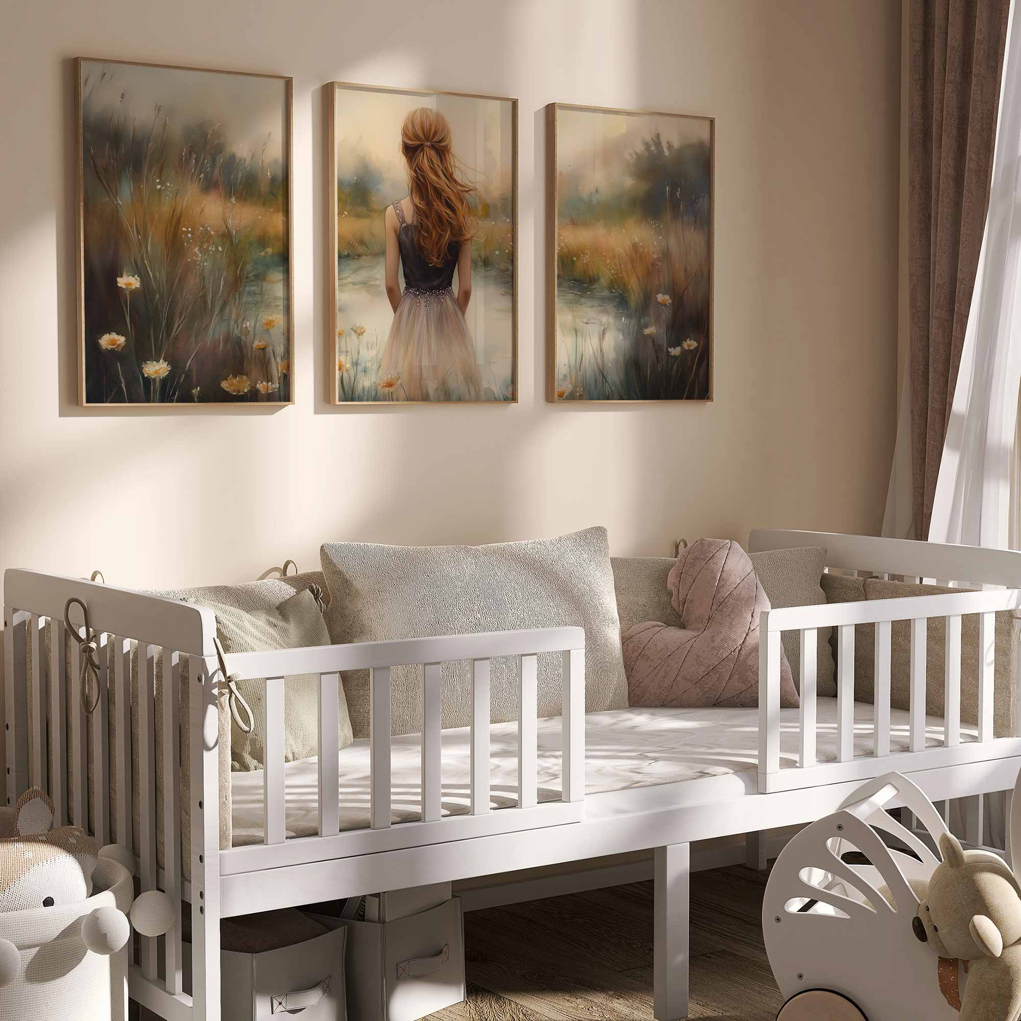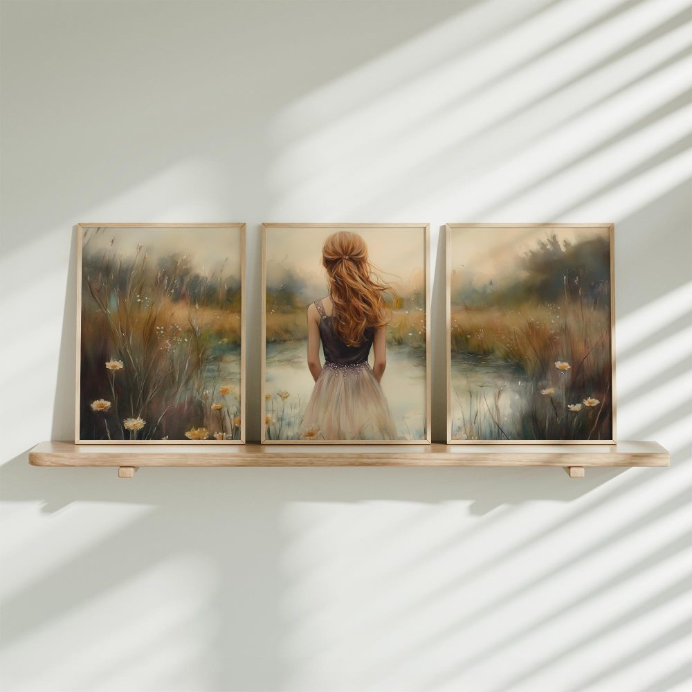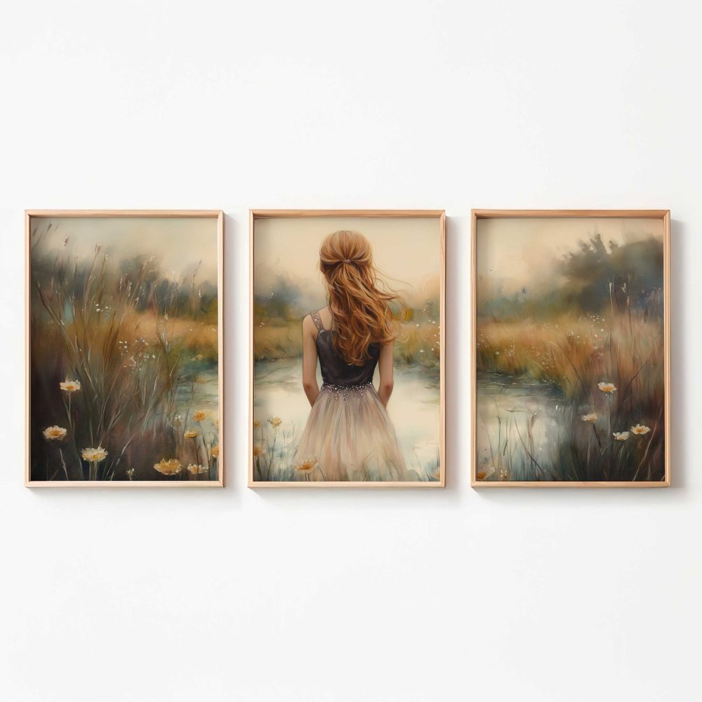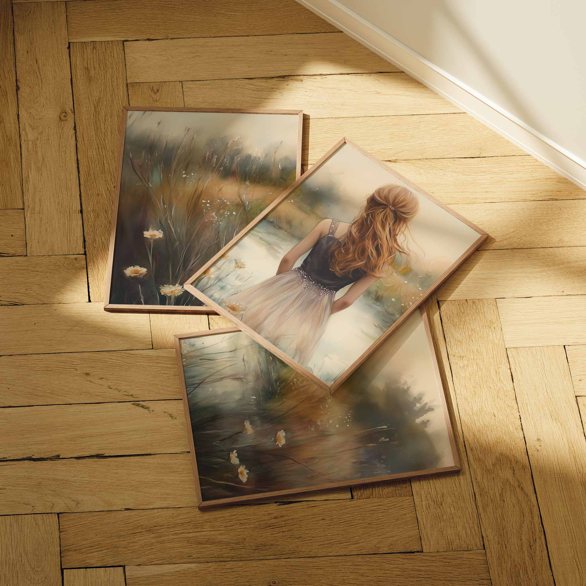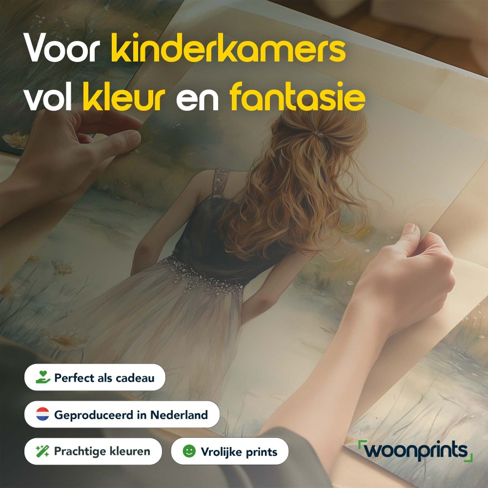 Terug naar collectie / Kinderkamer posters / Bloemen posters / Dromerig Meisje in Bloemenveld – Zachte Sfeer en Beweging