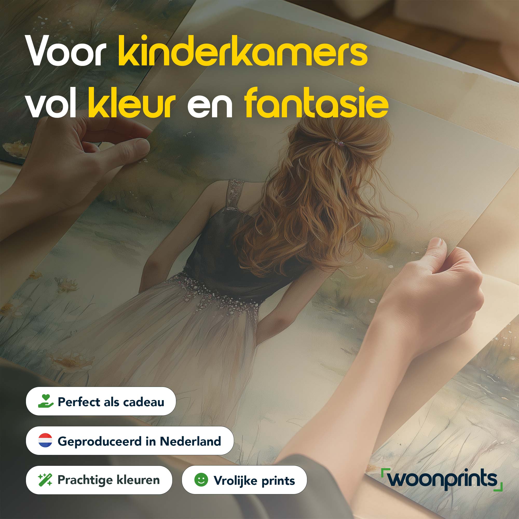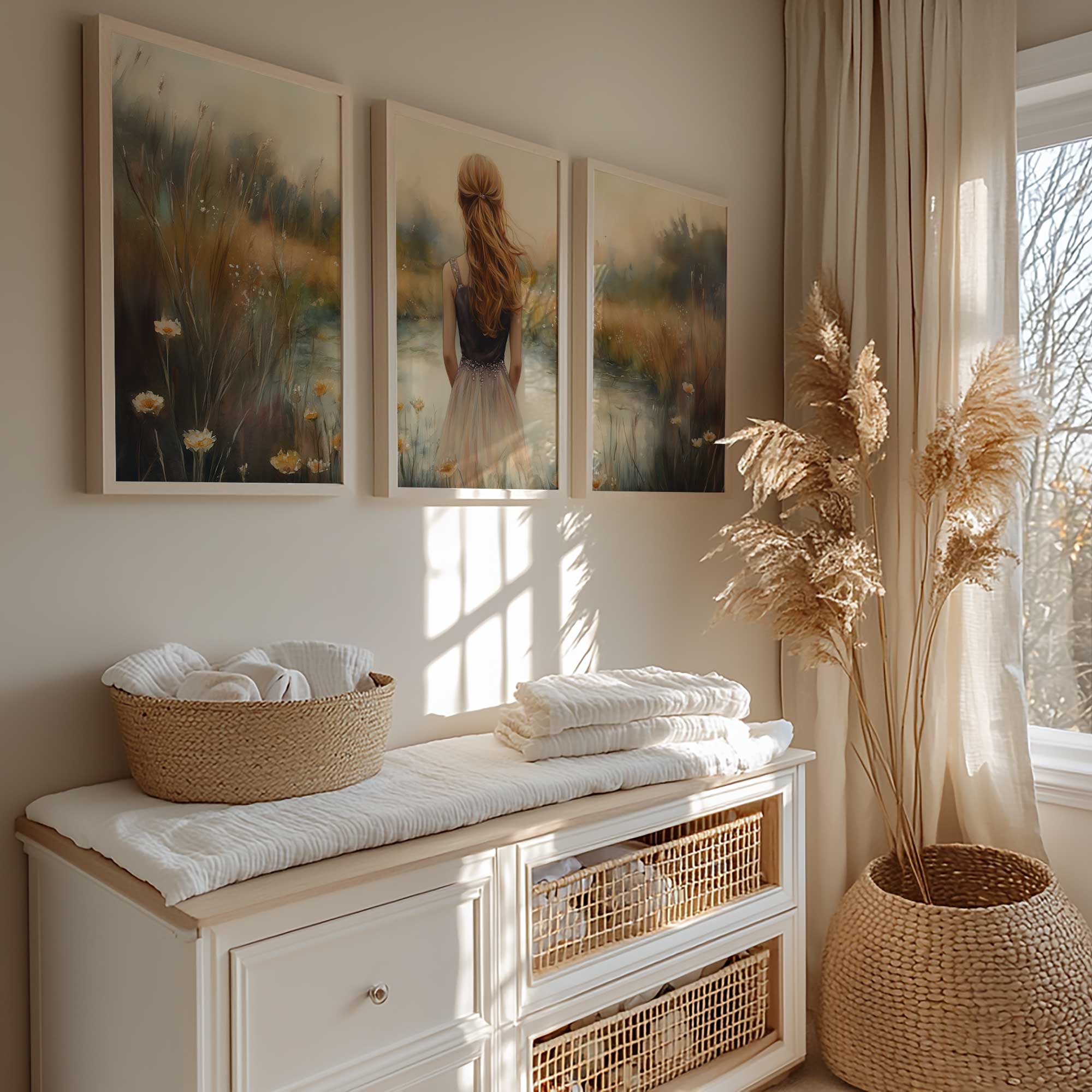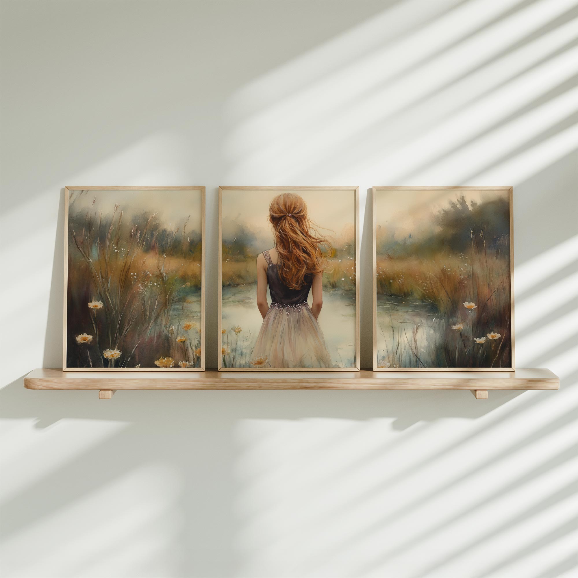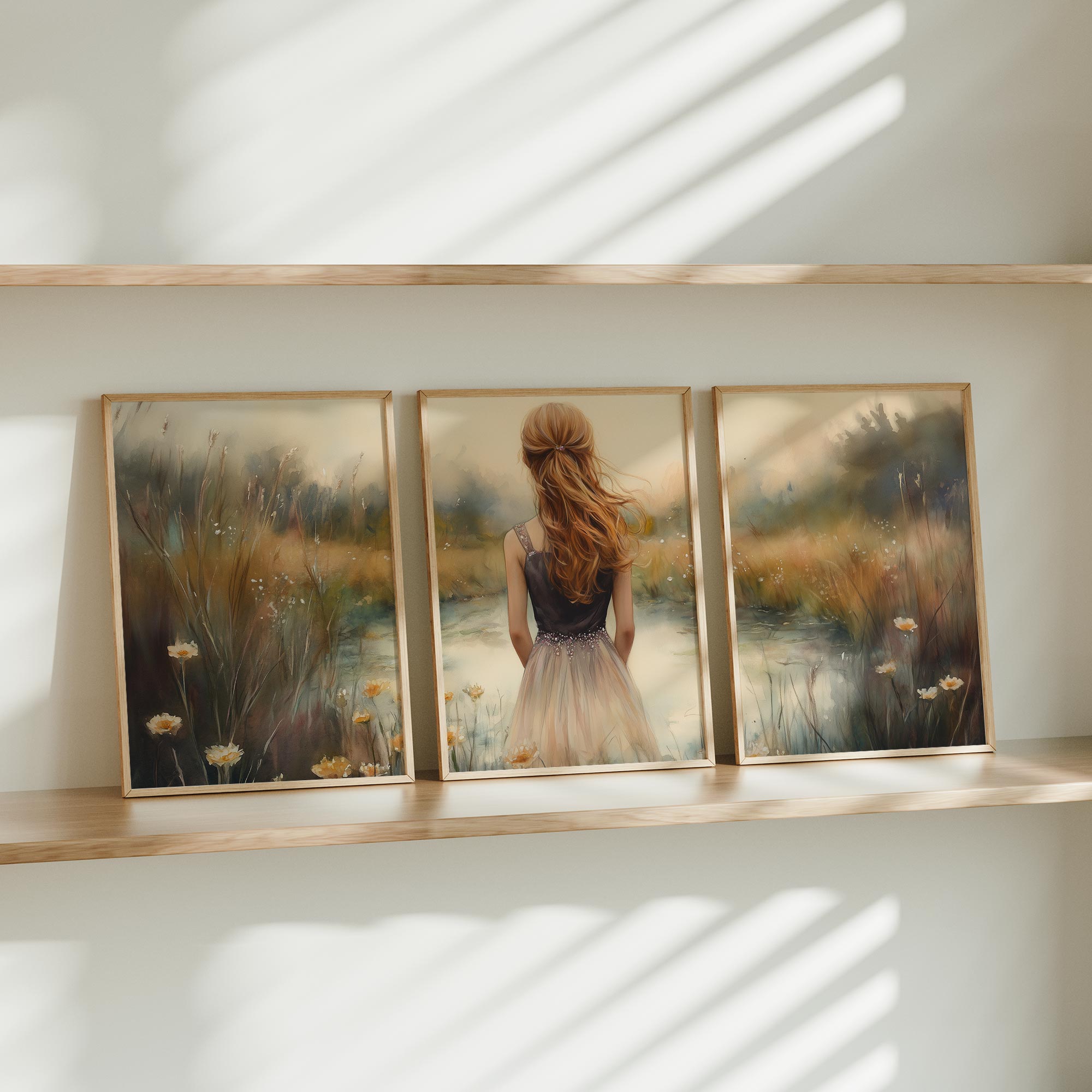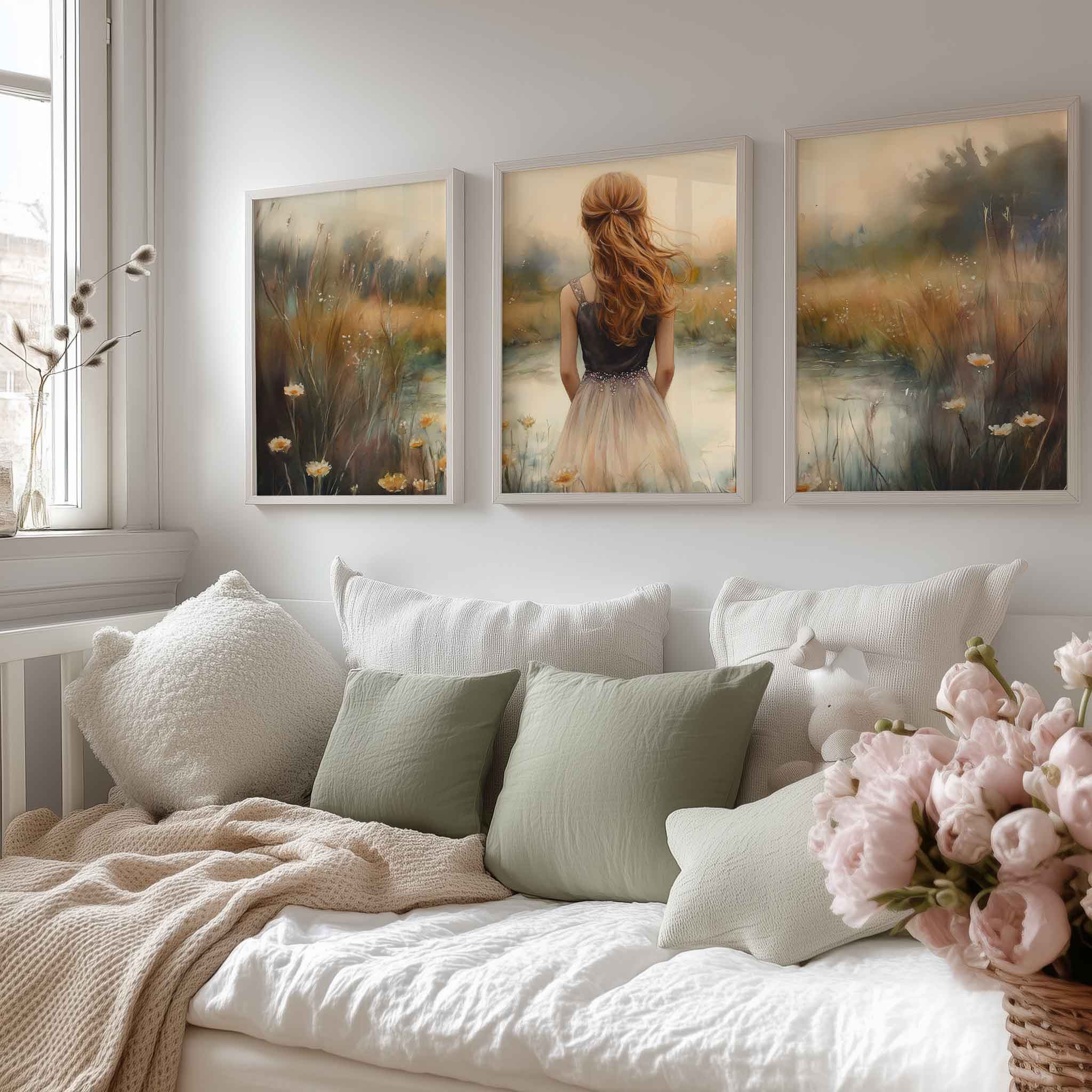 Terug naar collectie / Kinderkamer posters / Bloemen posters / Dromerig Meisje in Bloemenveld – Zachte Sfeer en Beweging