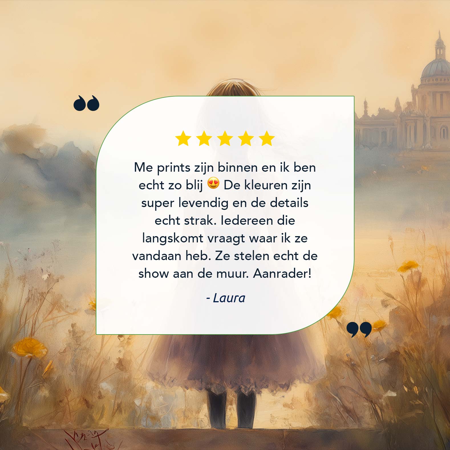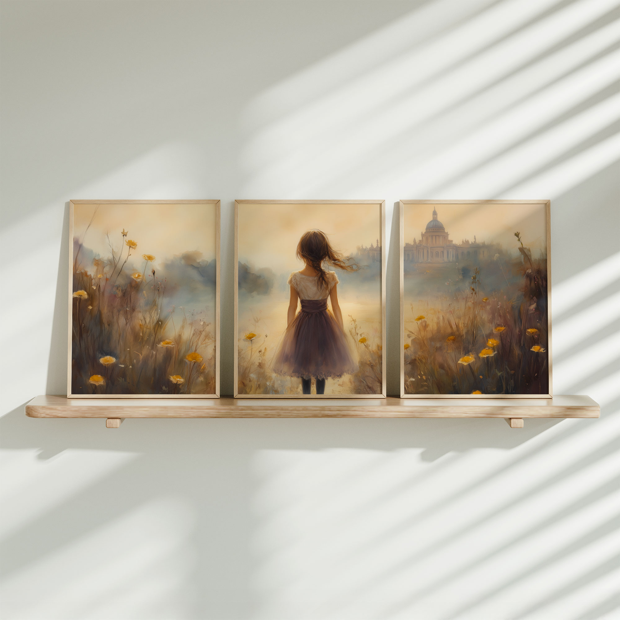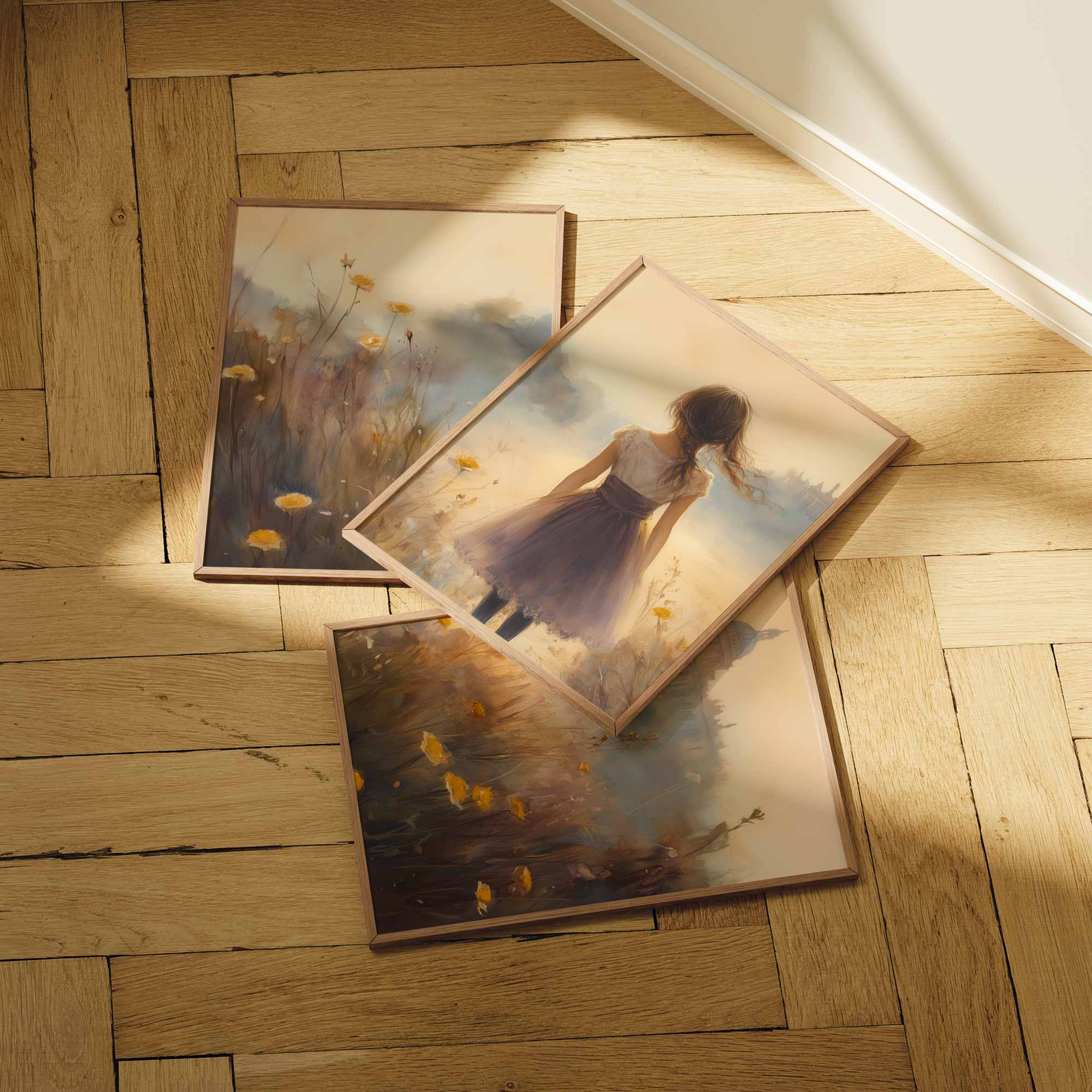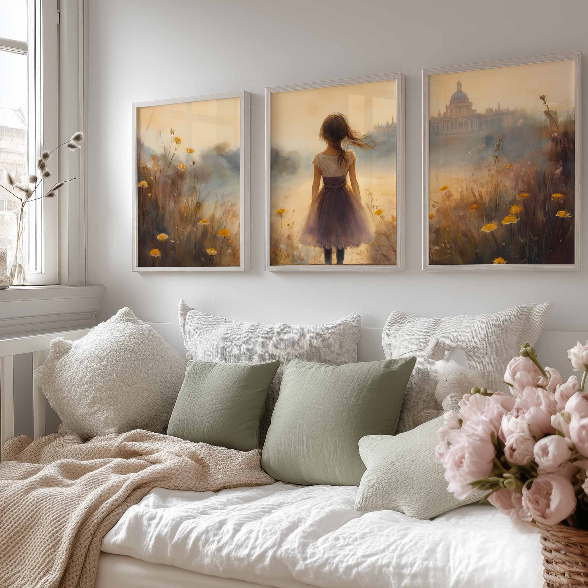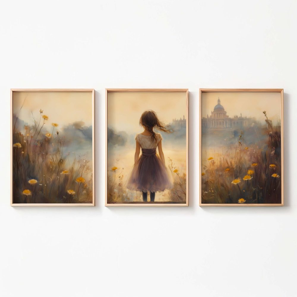 Dromerig Meisje in Bloemenveld – Zachte Sfeerprint
