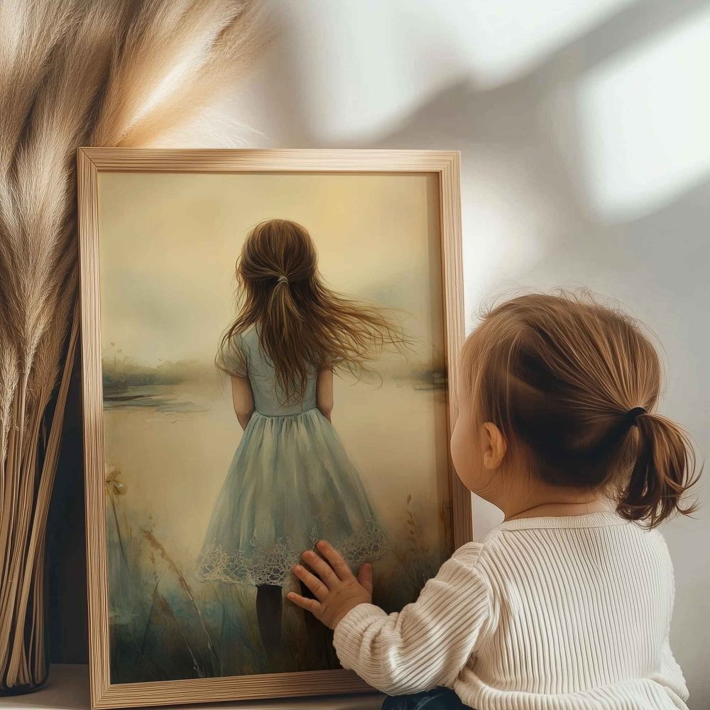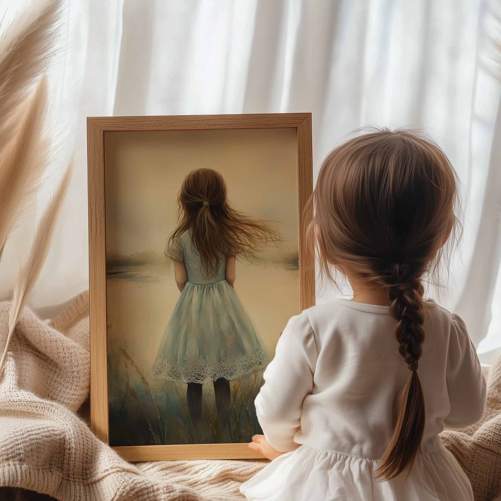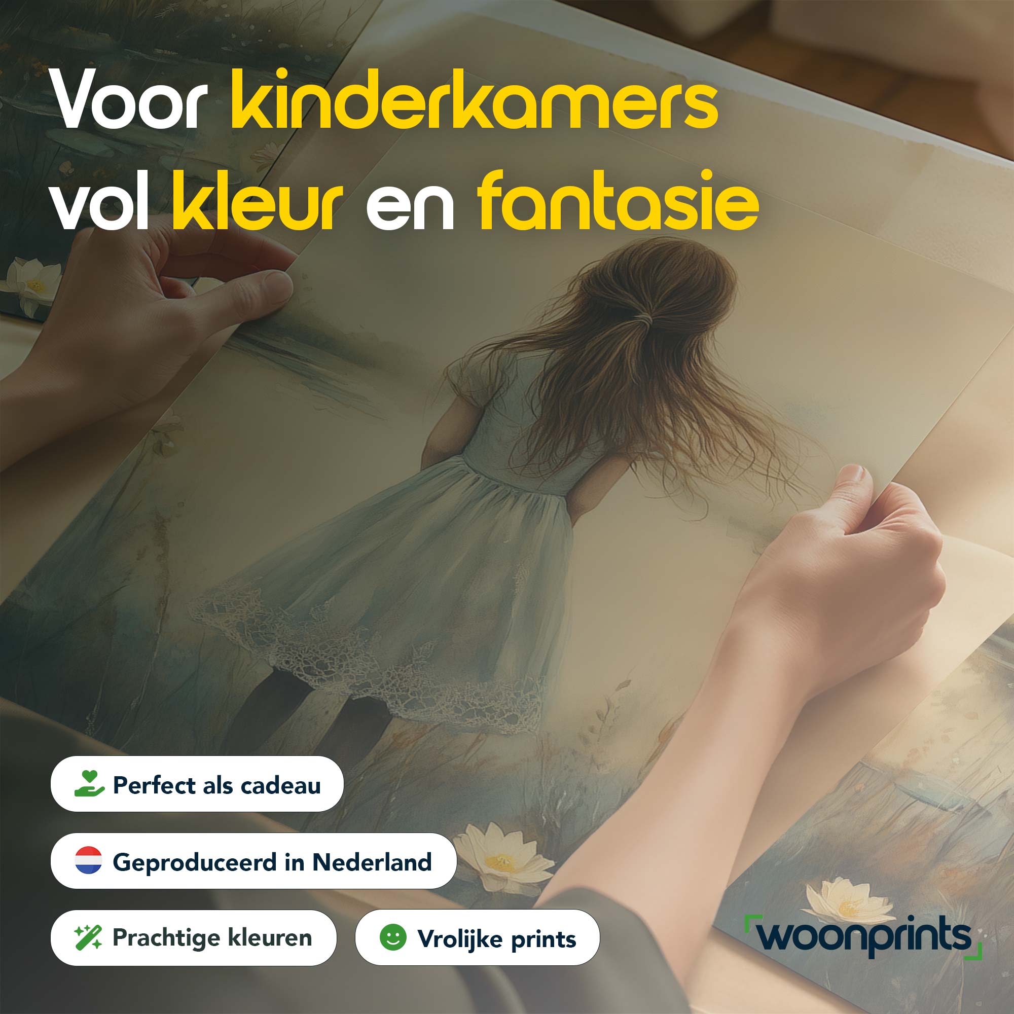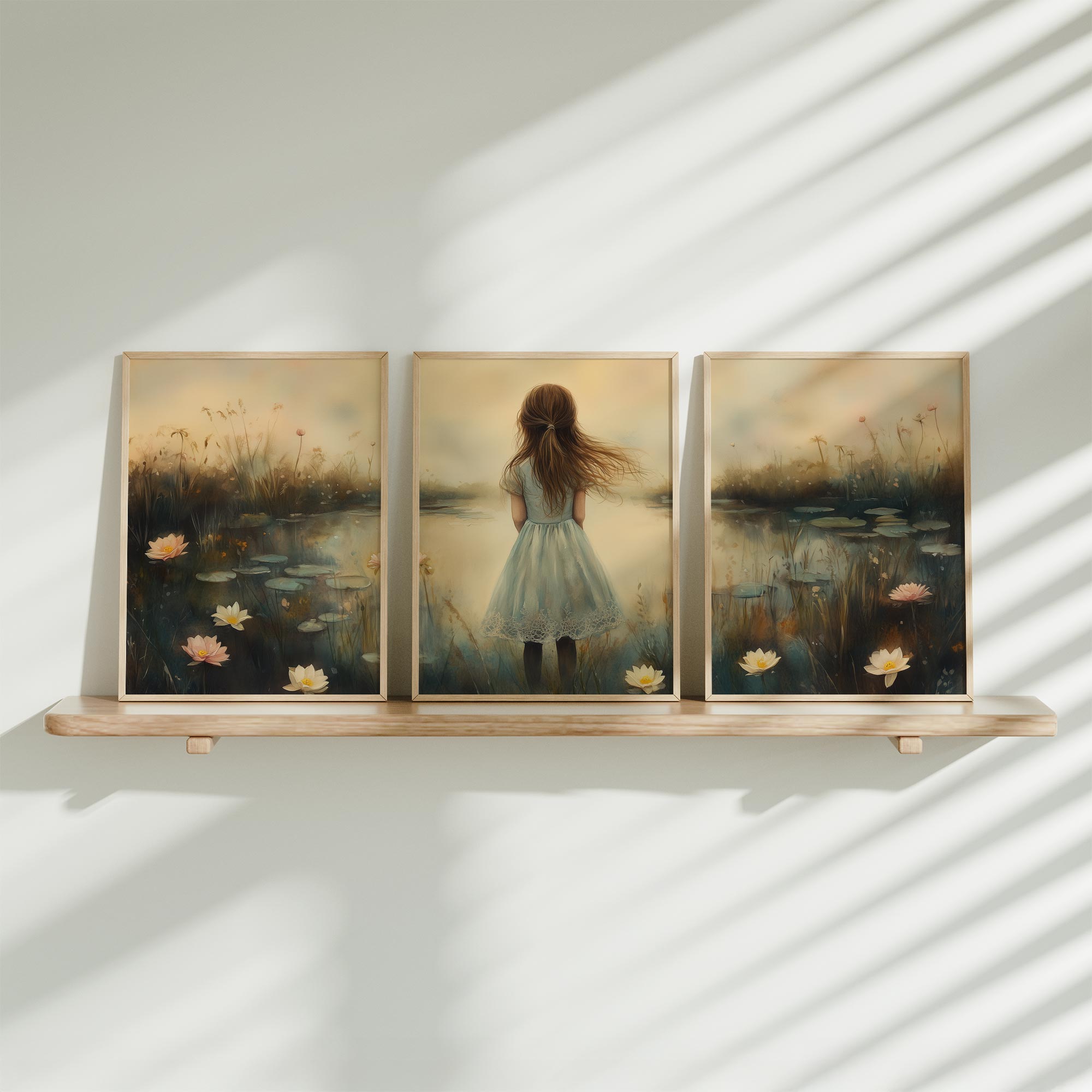 Terug naar collectie / Kinderkamer posters / Avontuurlijk posters / Dromerig Meisje in een Zee van Bloemen en Waterlelies