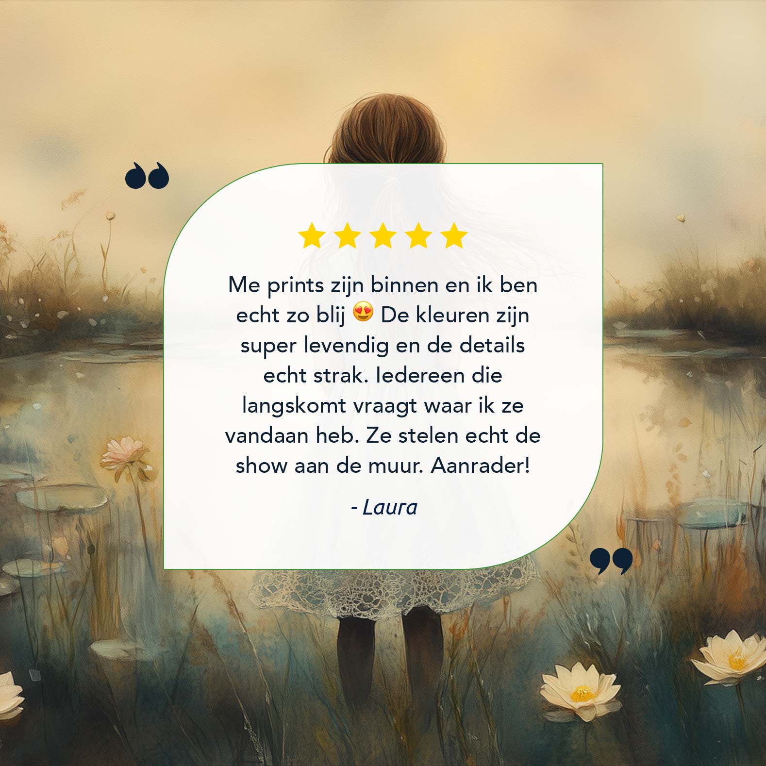 Dromerig Meisje in een Zee van Bloemen en Waterlelies