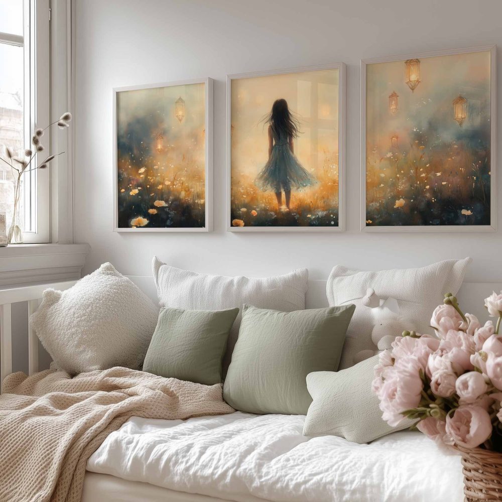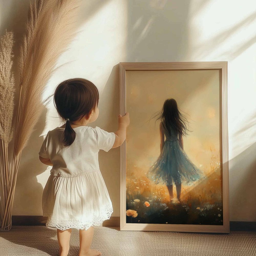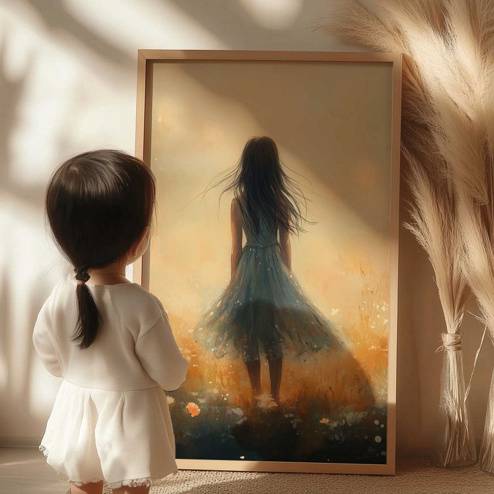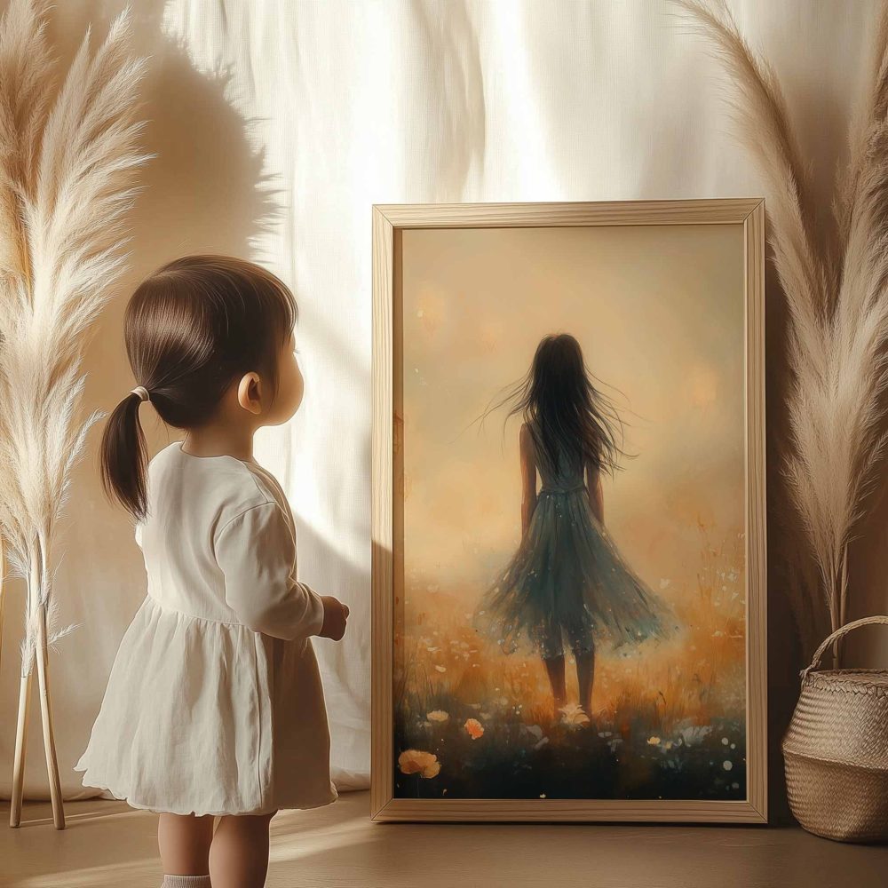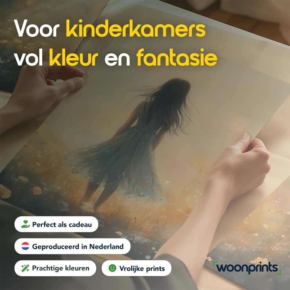 Terug naar collectie / Kinderkamer posters / Bloemen posters / Dromerig Meisje in Pastel Bloemenveld