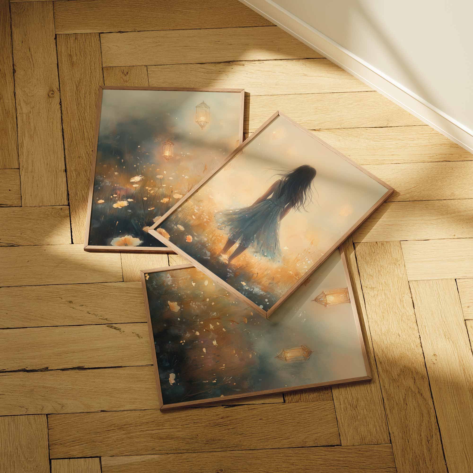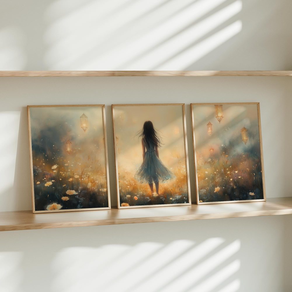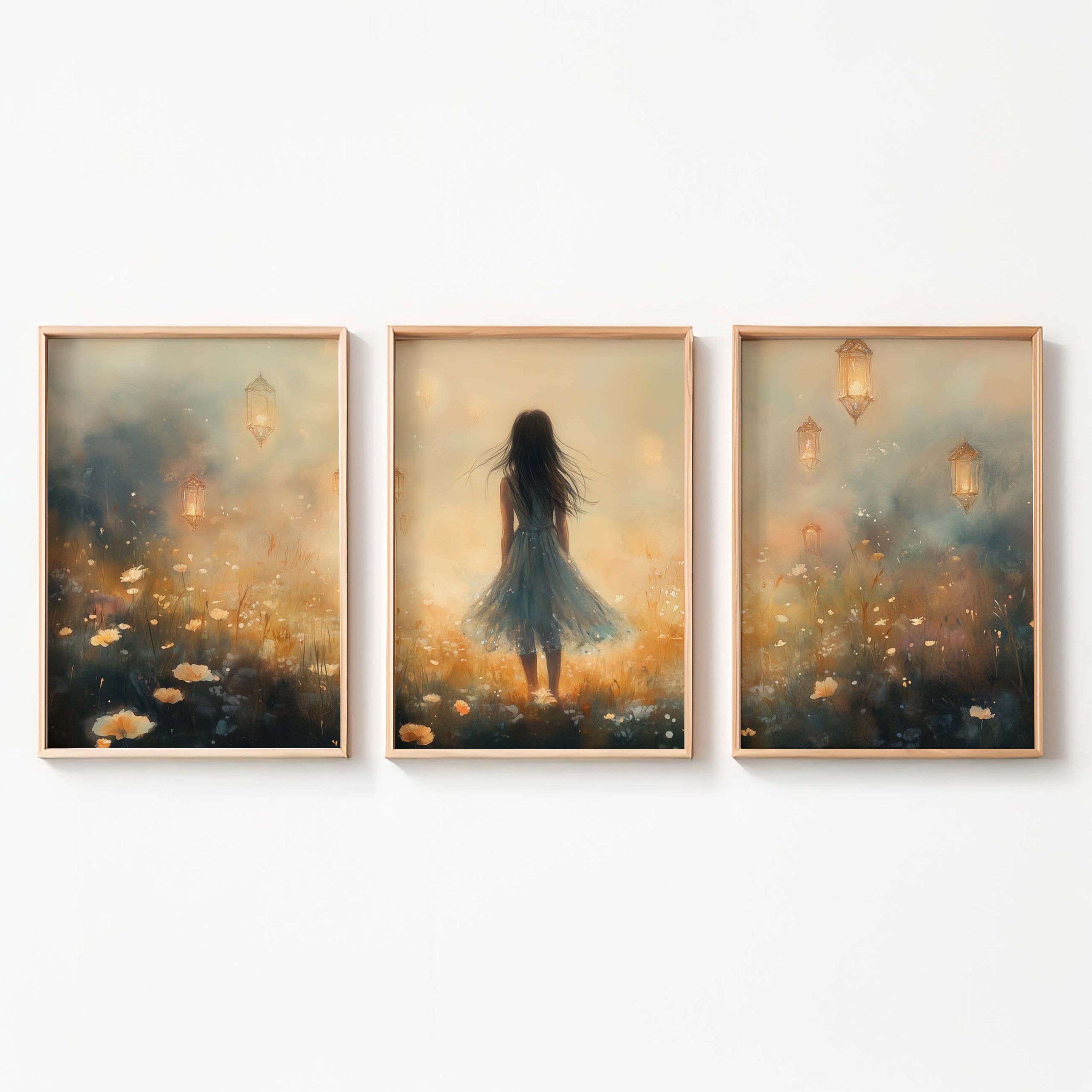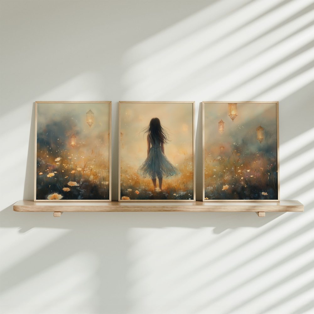 Terug naar collectie / Kinderkamer posters / Bloemen posters / Dromerig Meisje in Pastel Bloemenveld