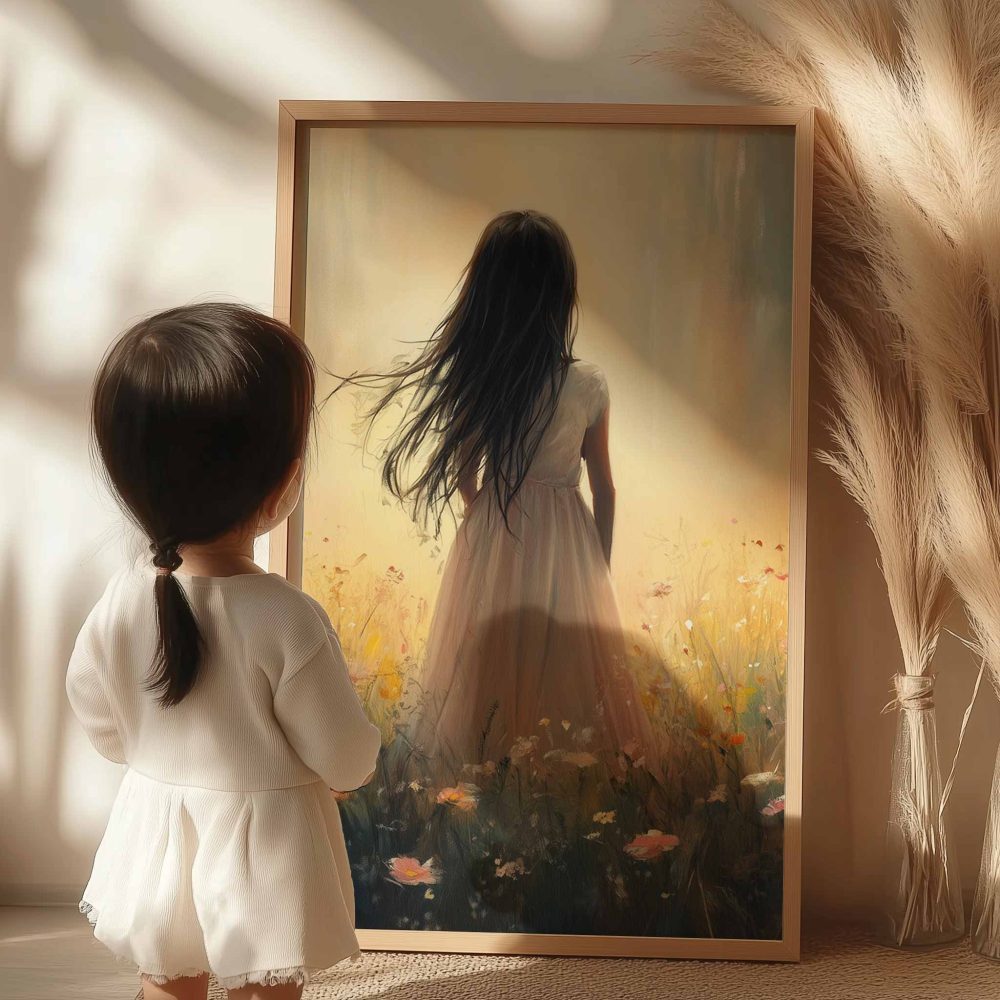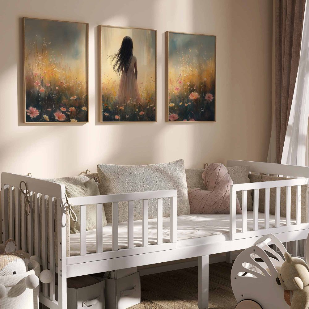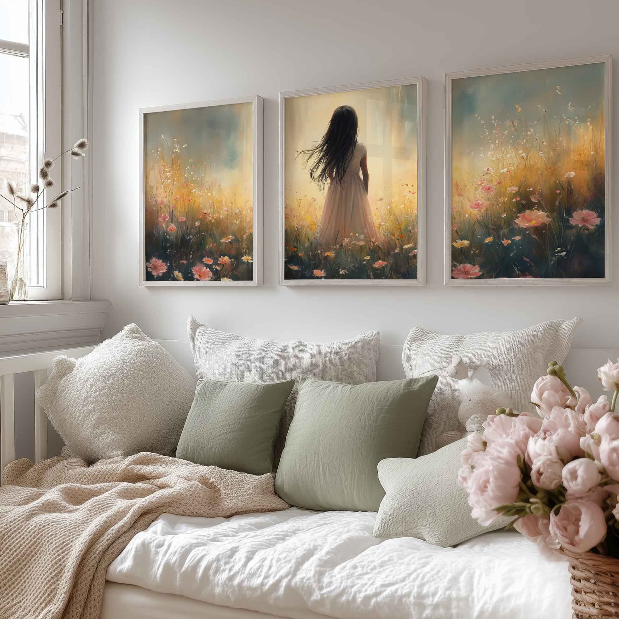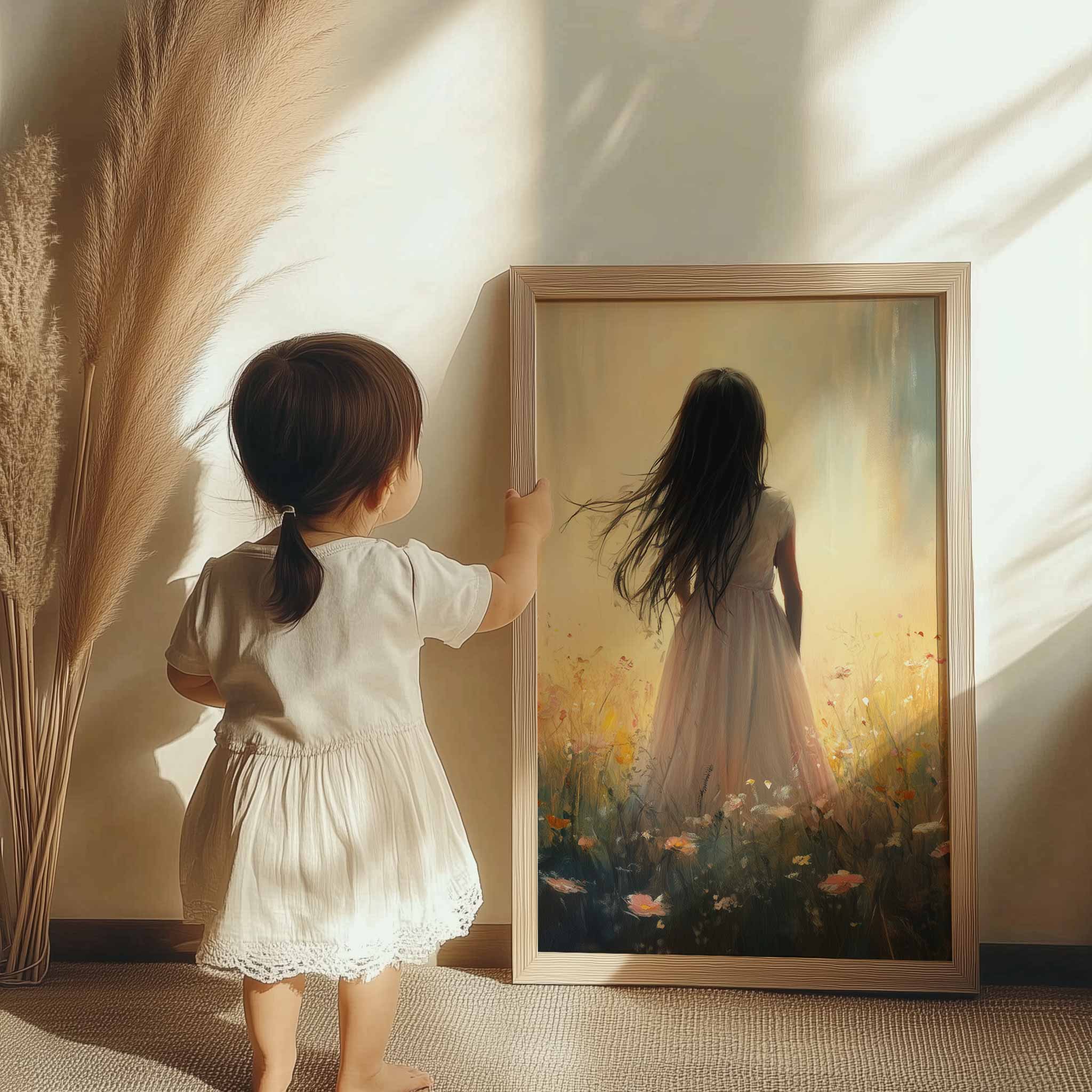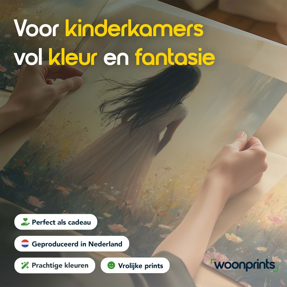 Terug naar collectie / Kinderkamer posters / Bloemen posters / Dromerig Meisje in Roze Bloemenveld