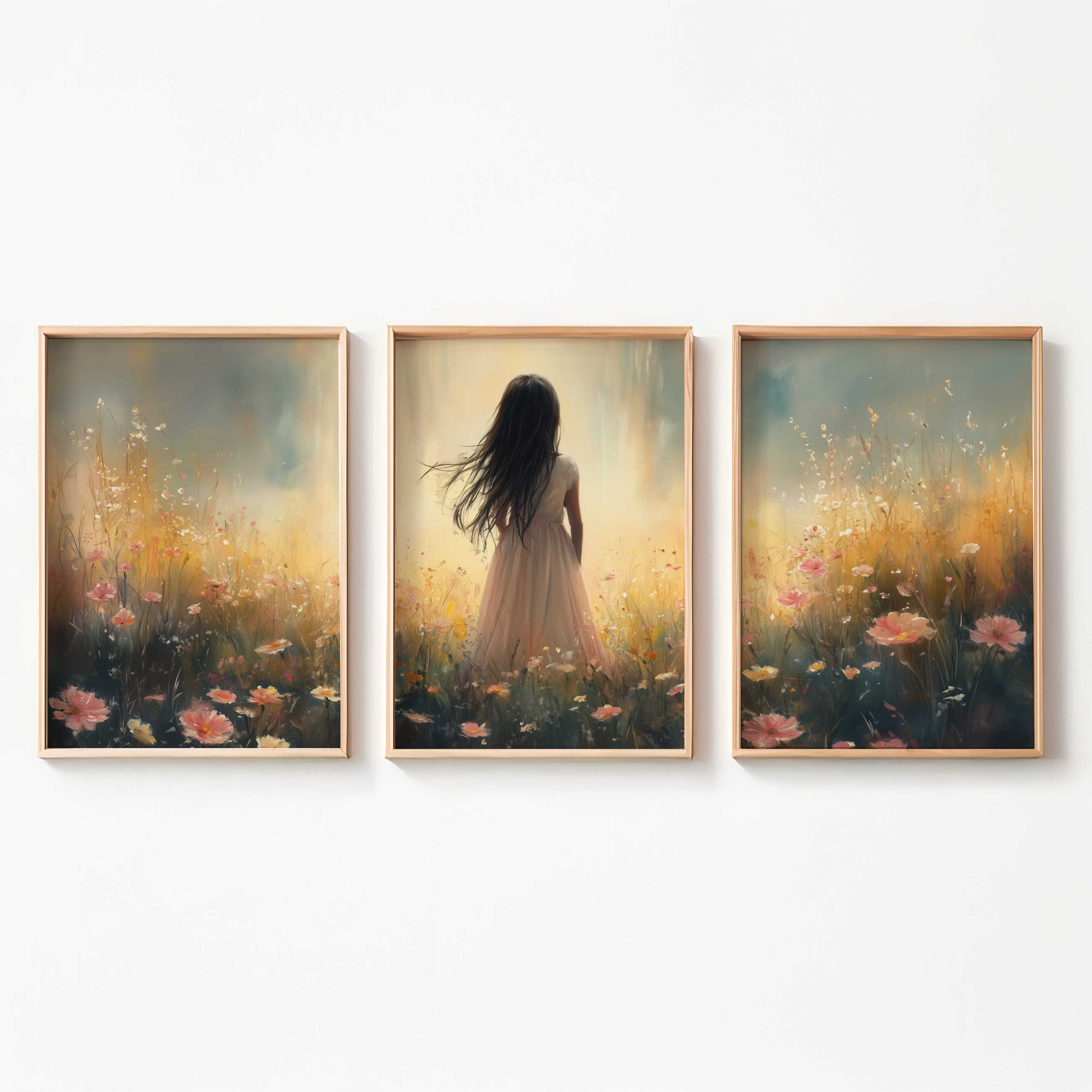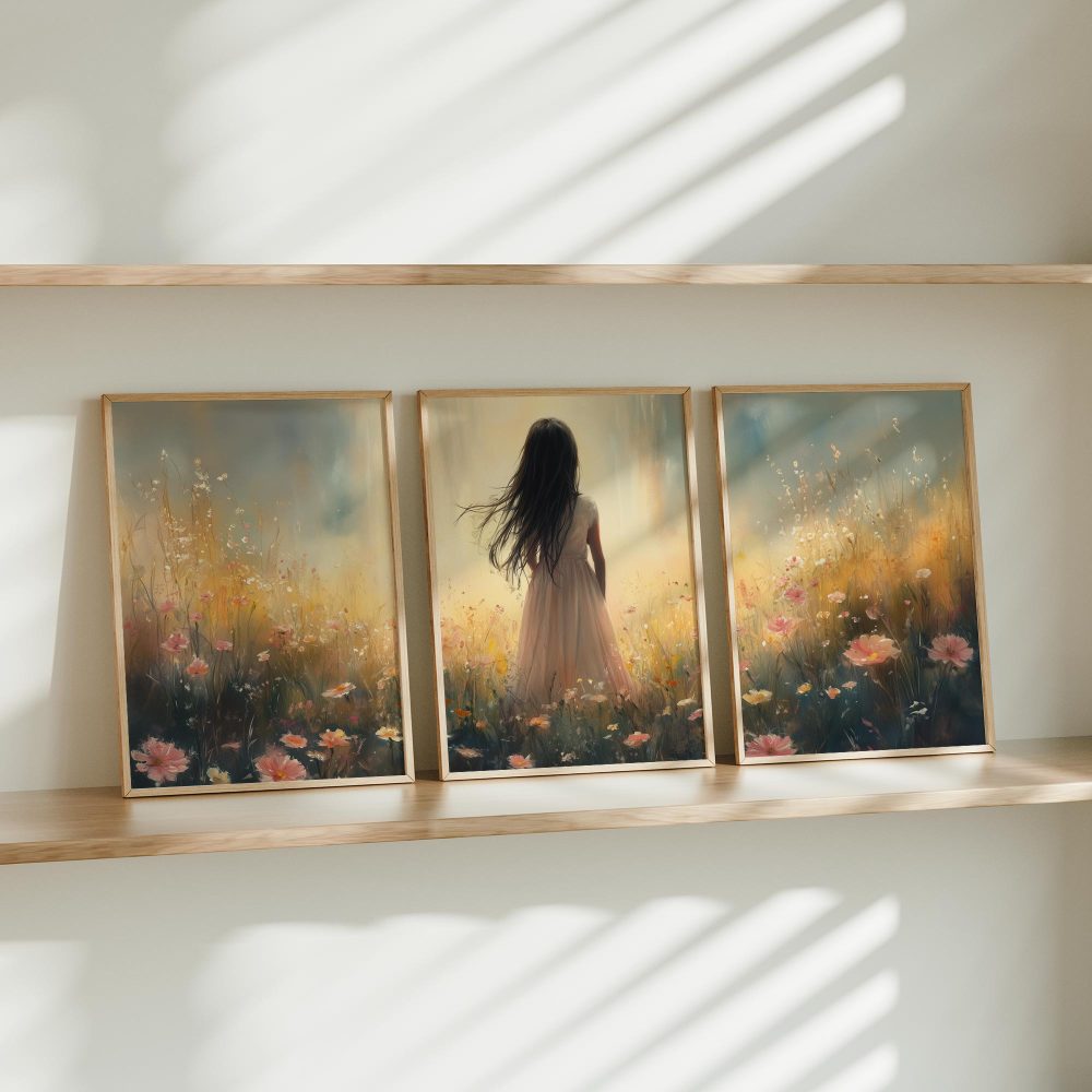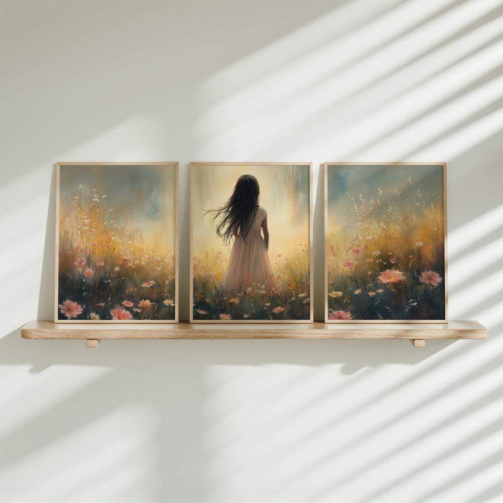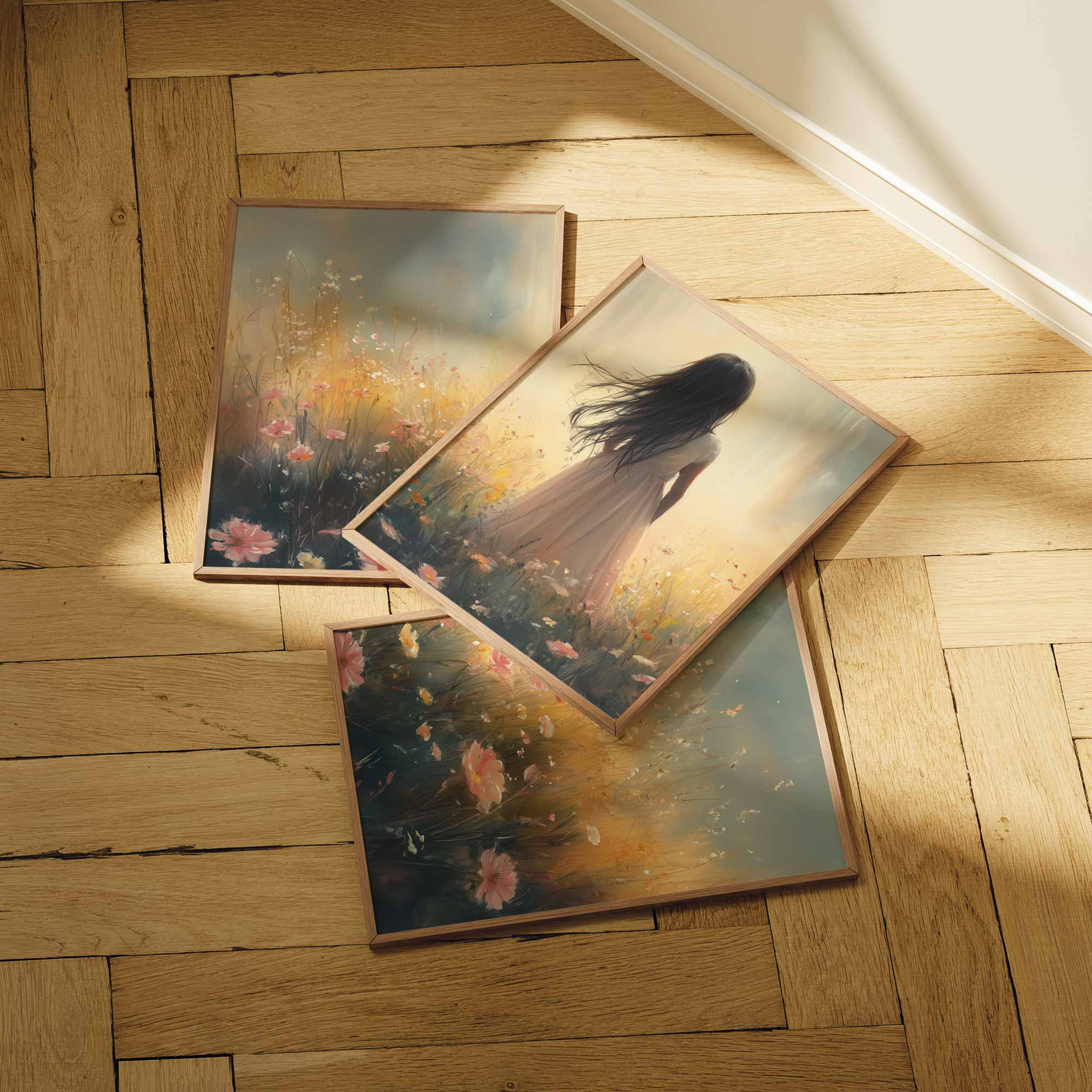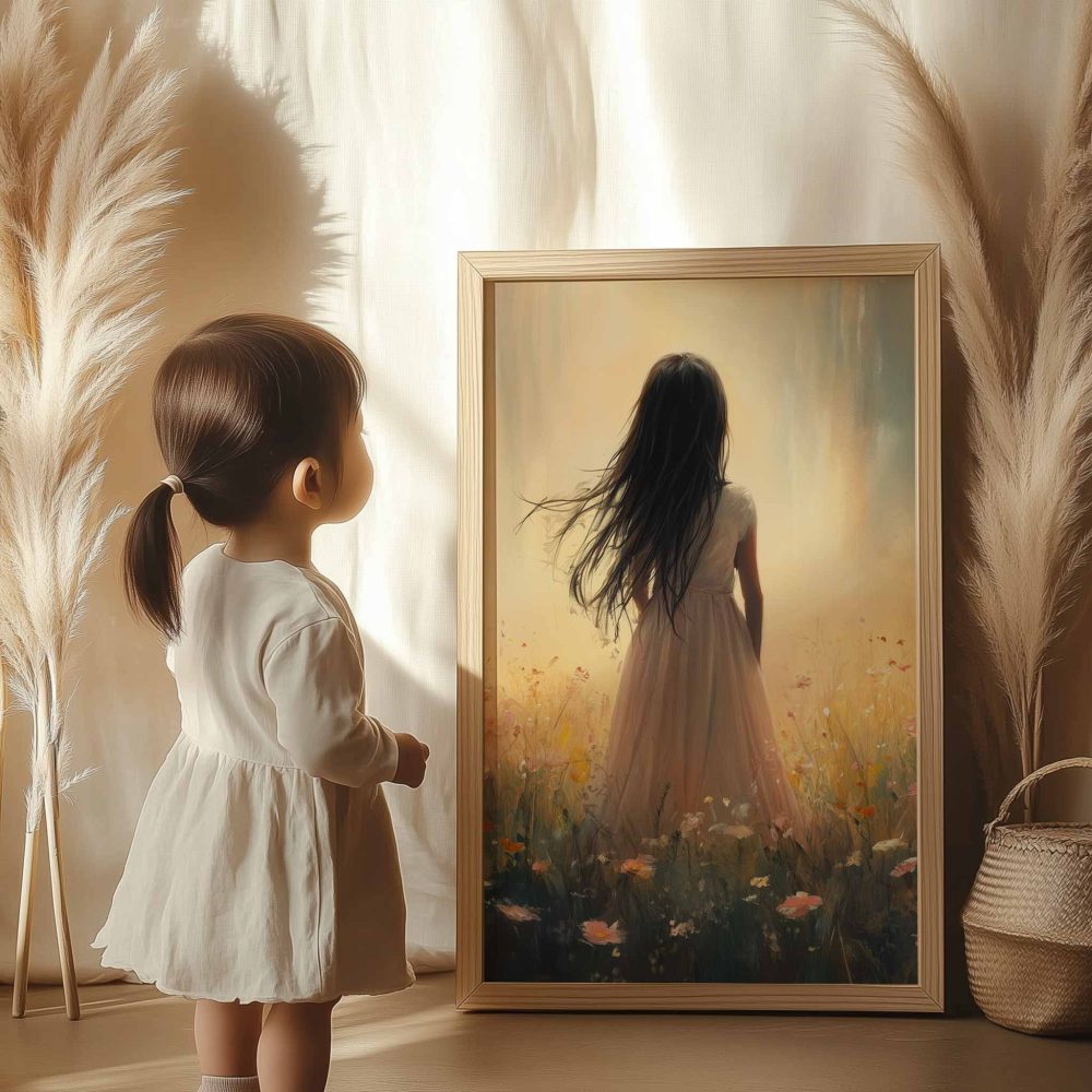 Terug naar collectie / Kinderkamer posters / Bloemen posters / Dromerig Meisje in Roze Bloemenveld