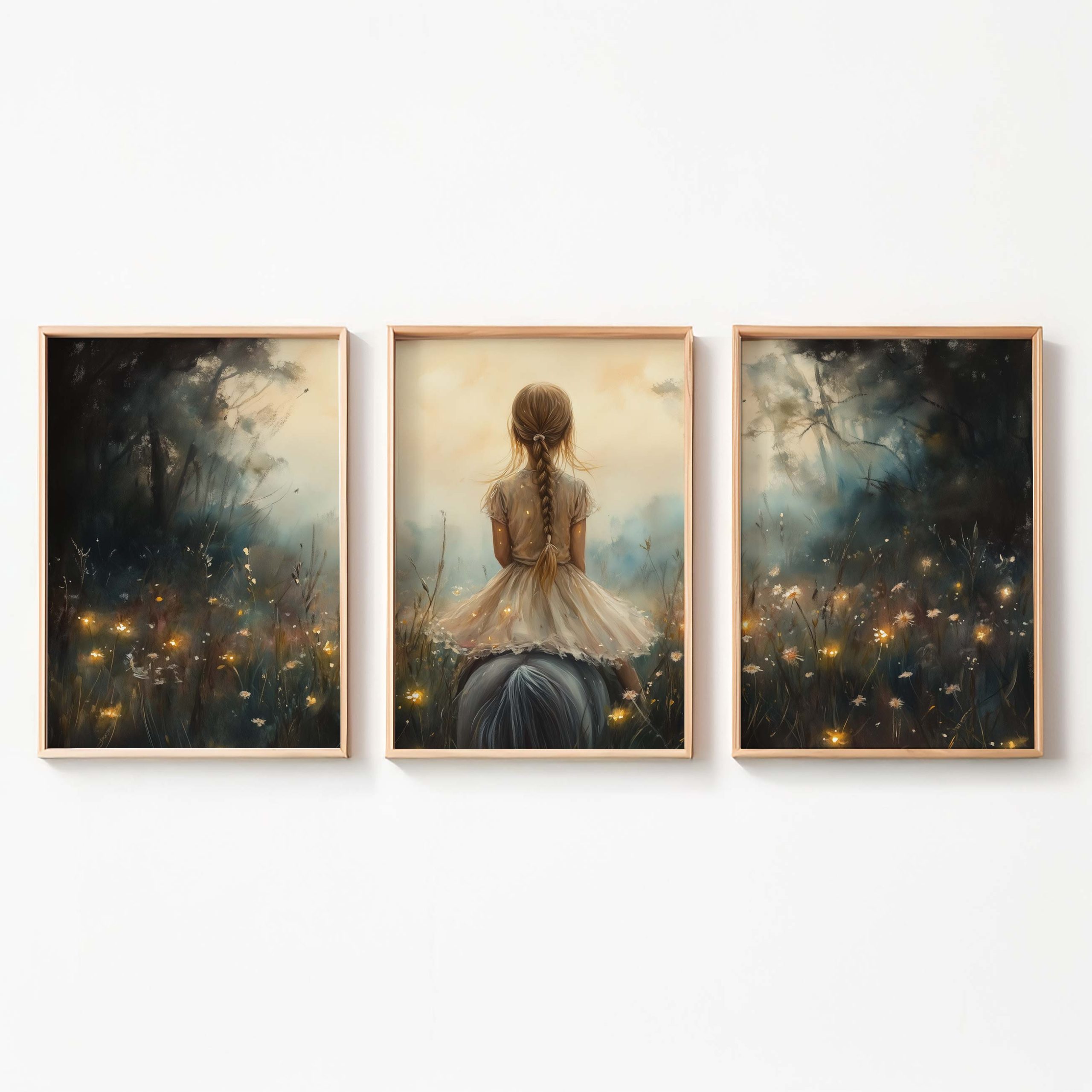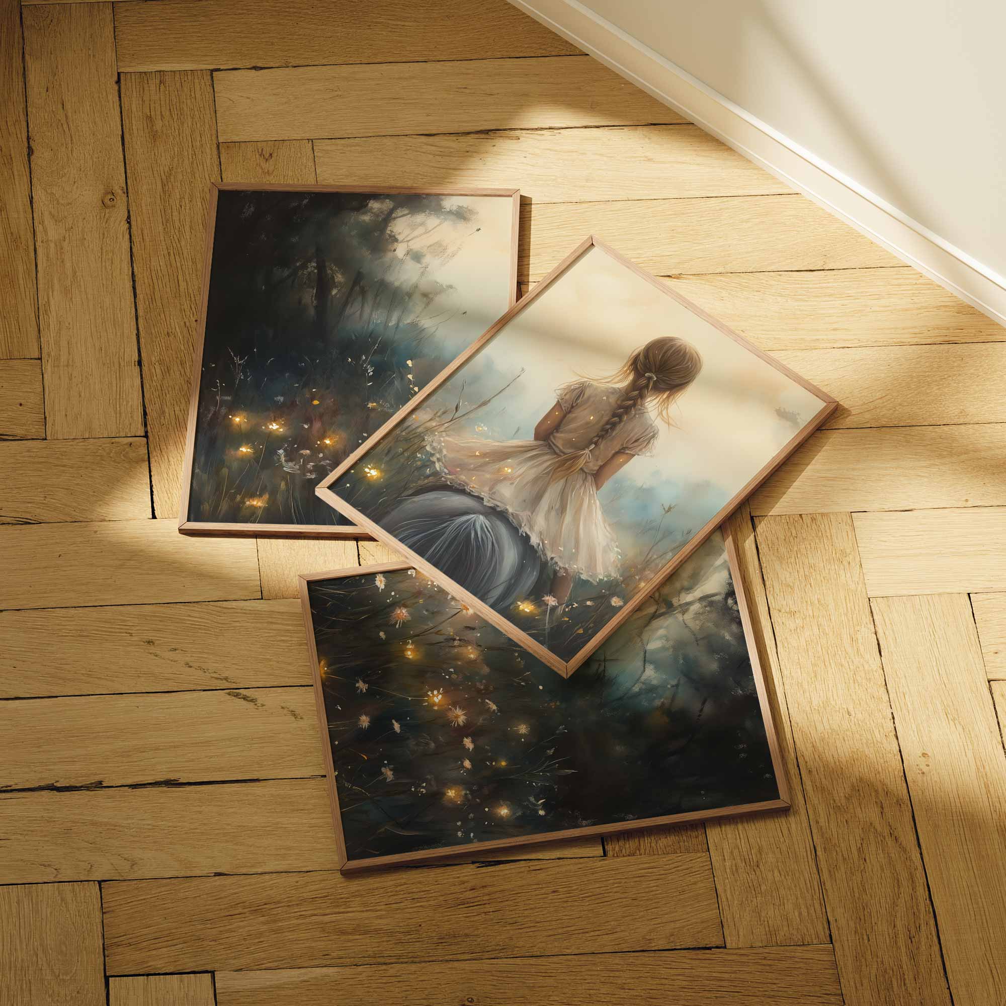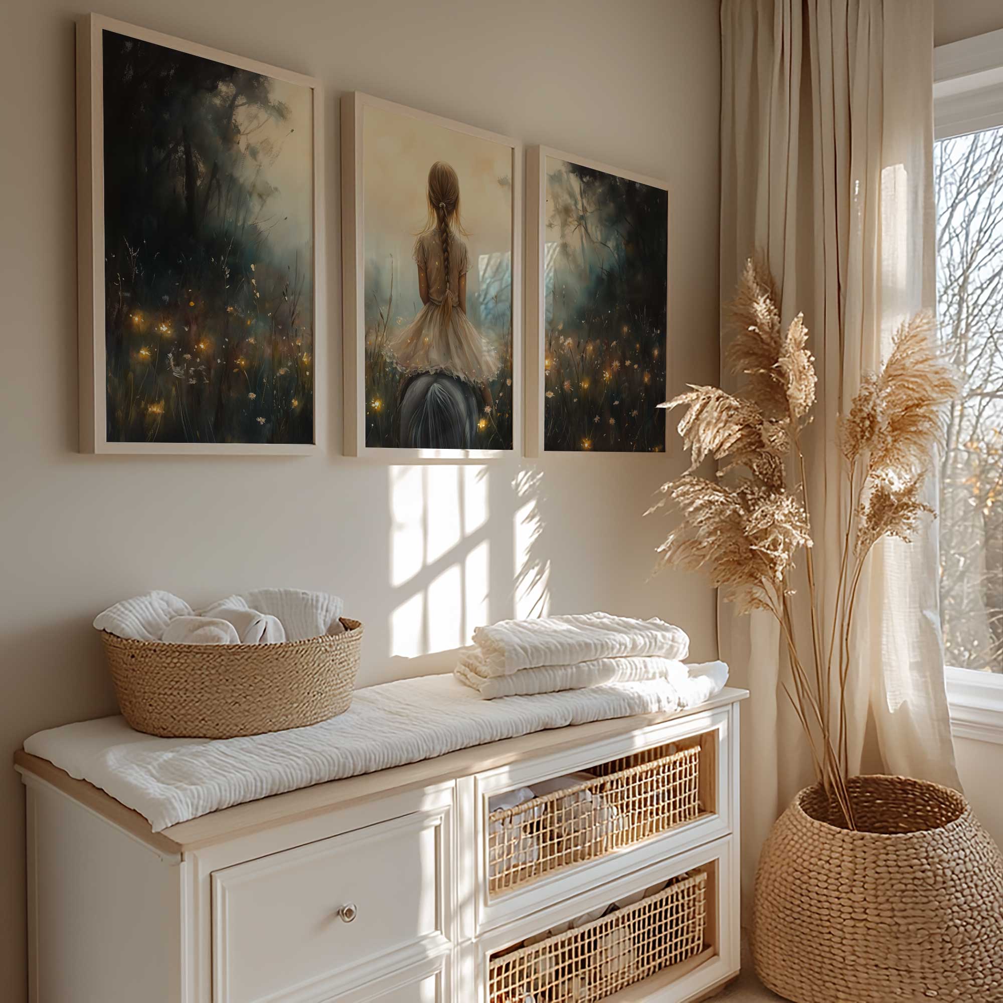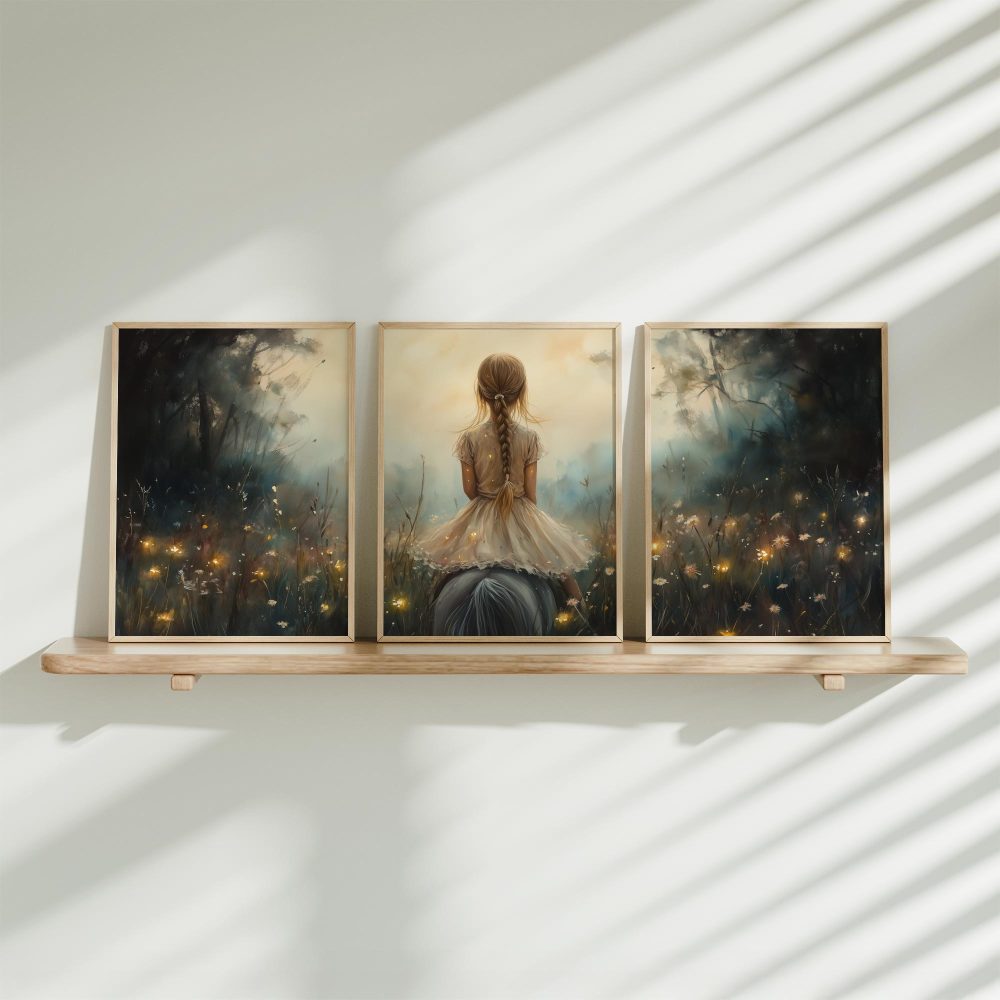 Terug naar collectie / Kinderkamer posters / Bloemen posters / Dromerig Meisje op Paard in Bloemenveld
