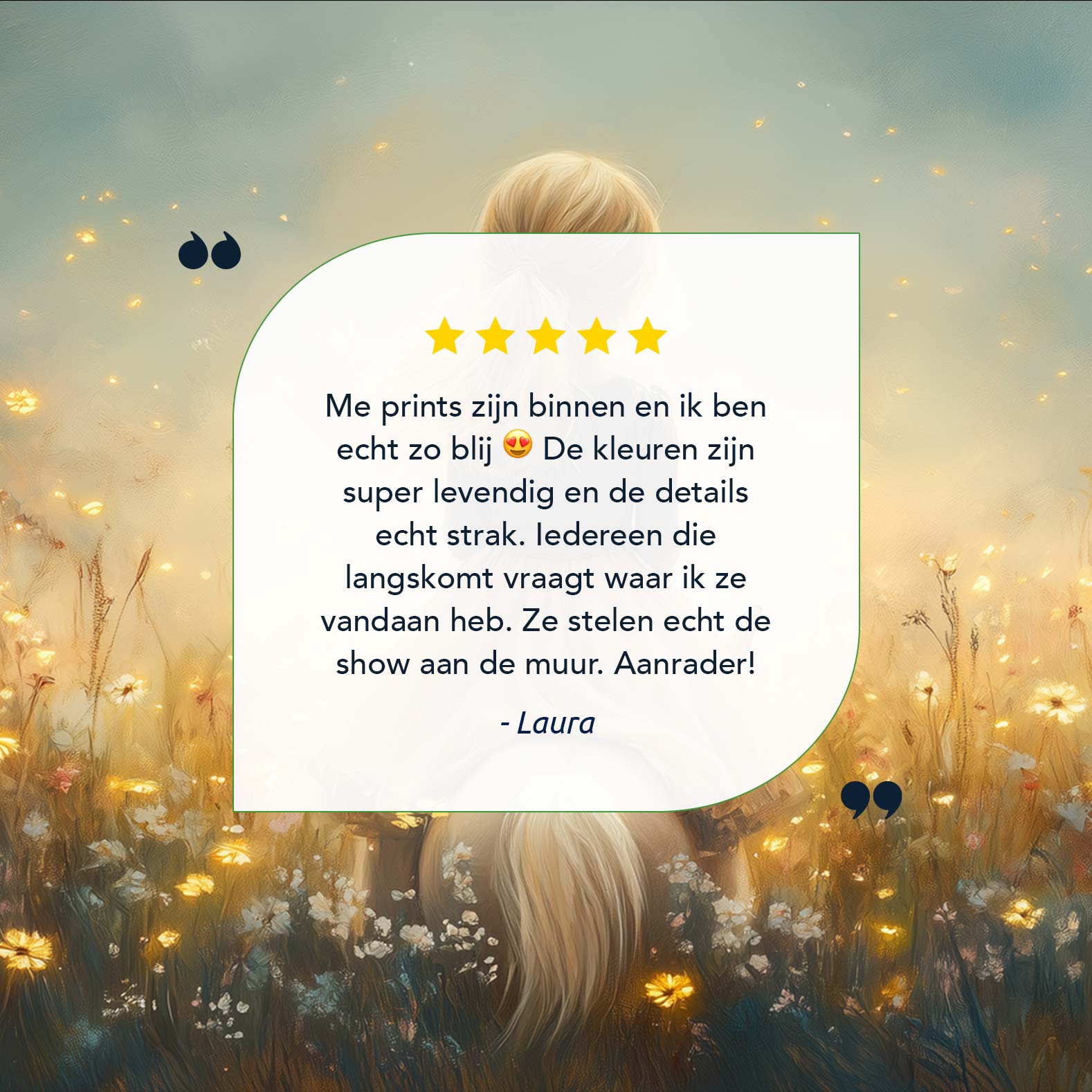 Dromerig Meisje op Paard in Bloemenveld