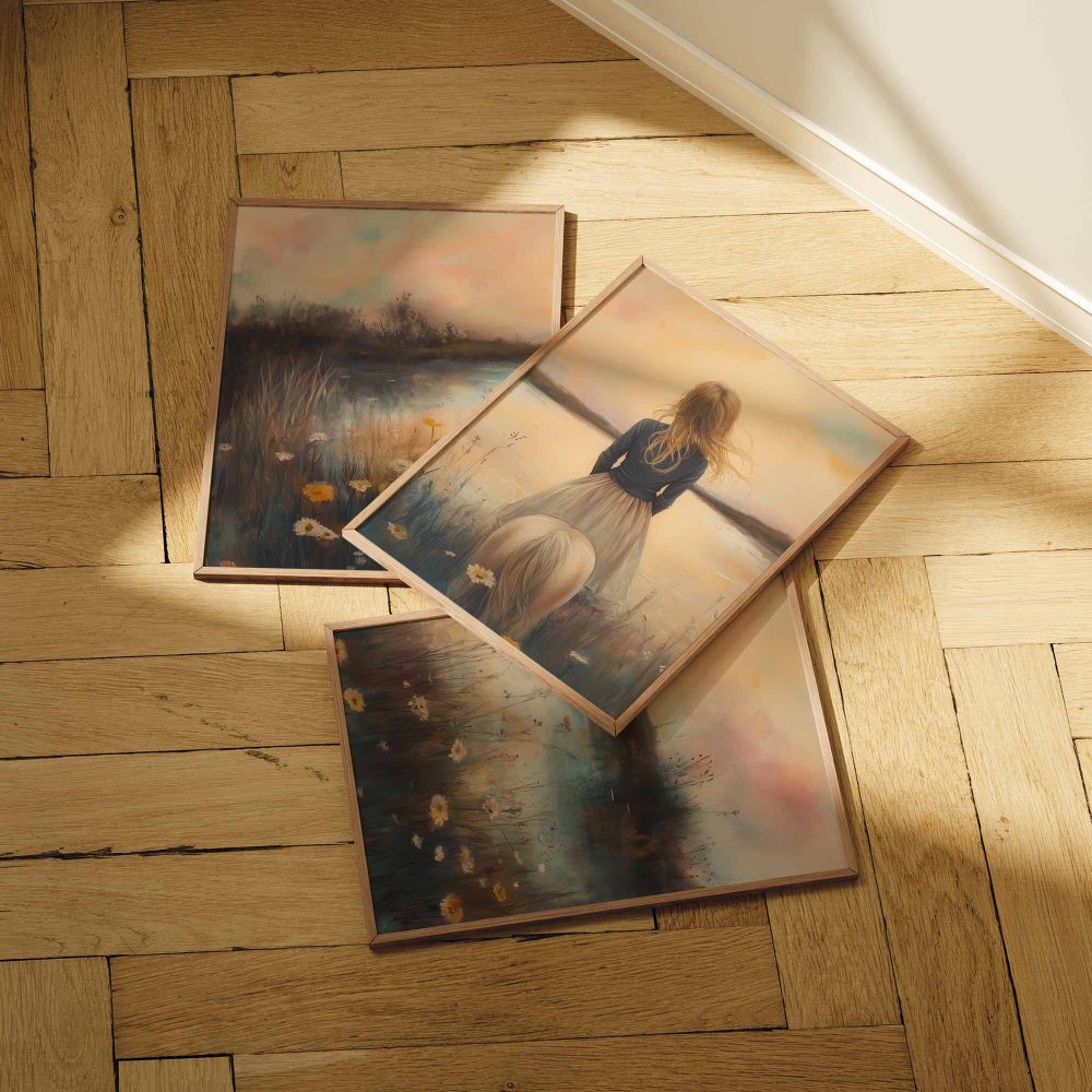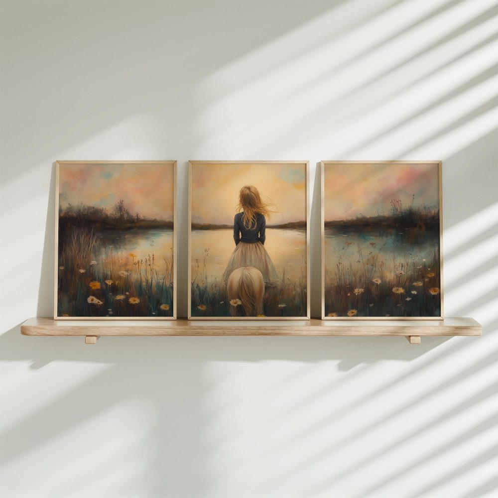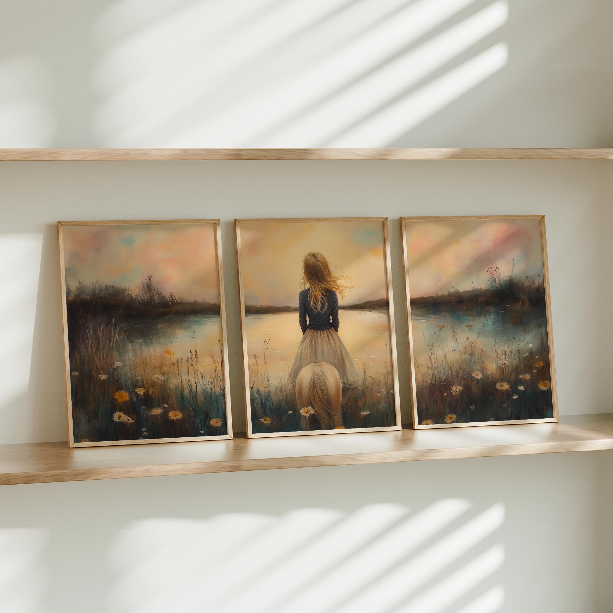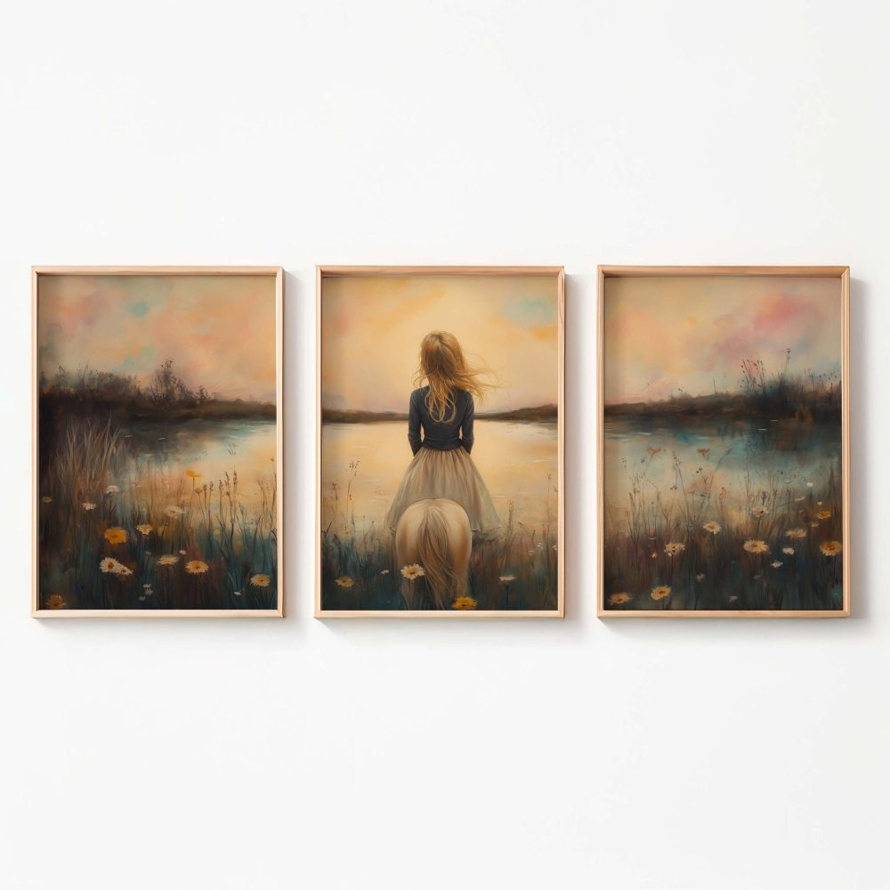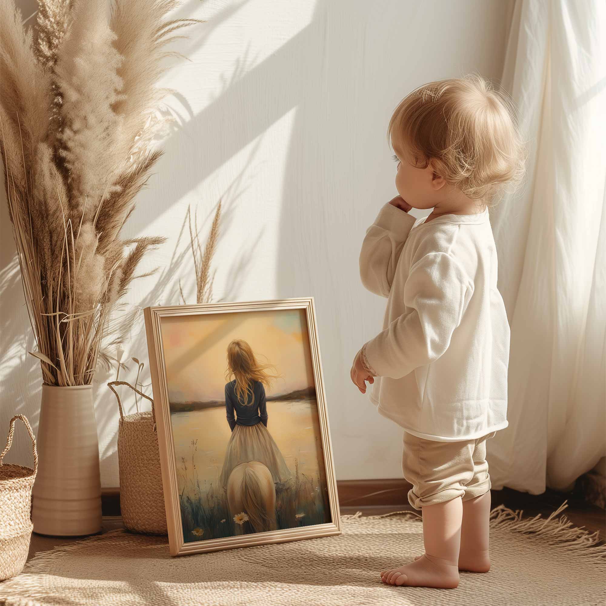 Terug naar collectie / Kinderkamer posters / Bloemen posters / Dromerig Meisje tussen Bloemen en Paard