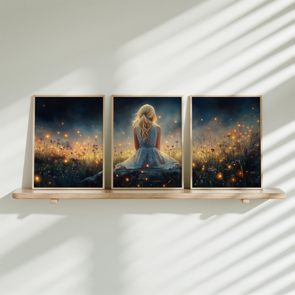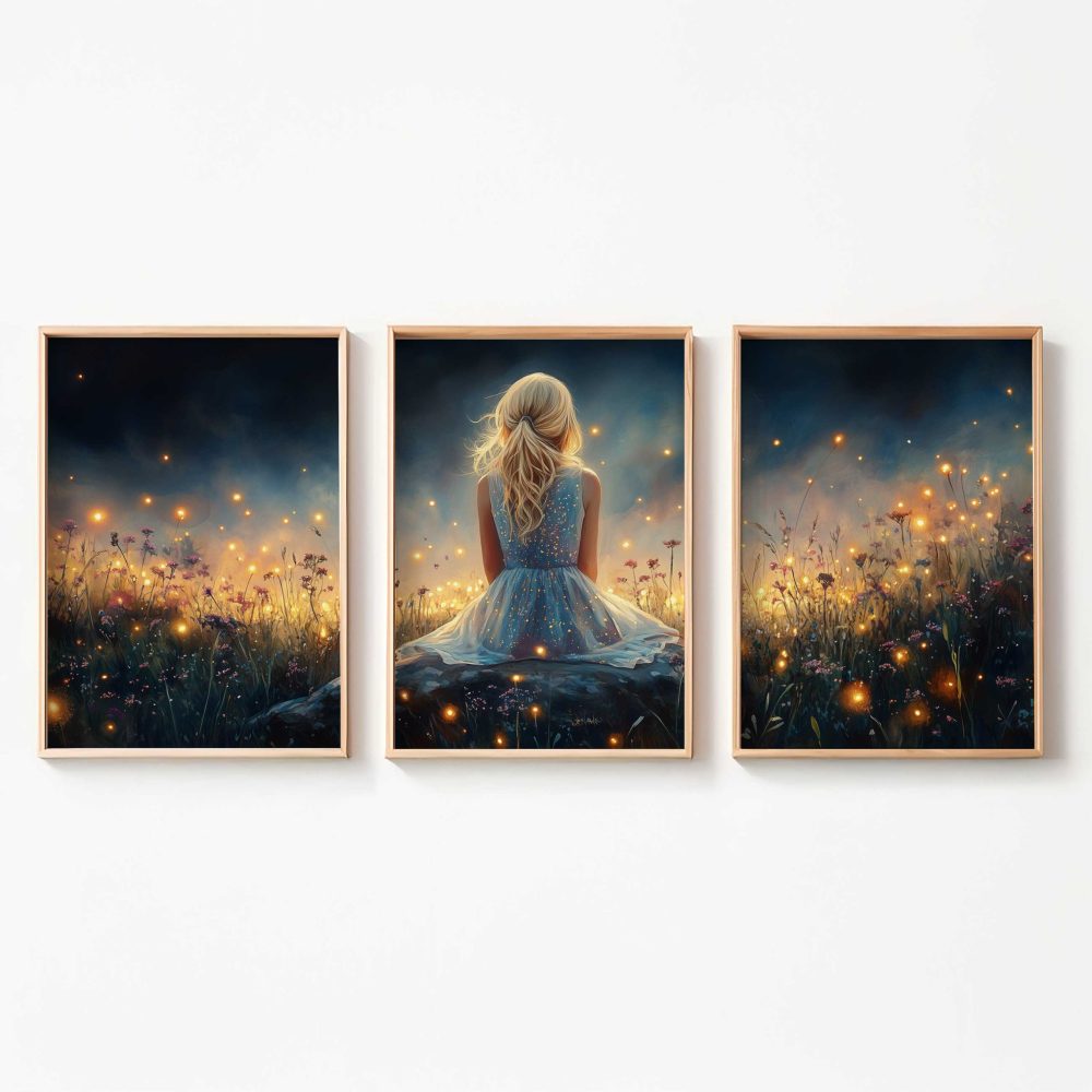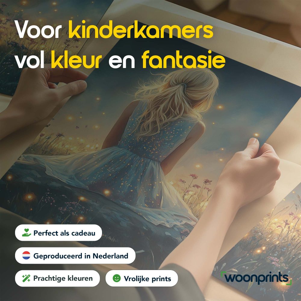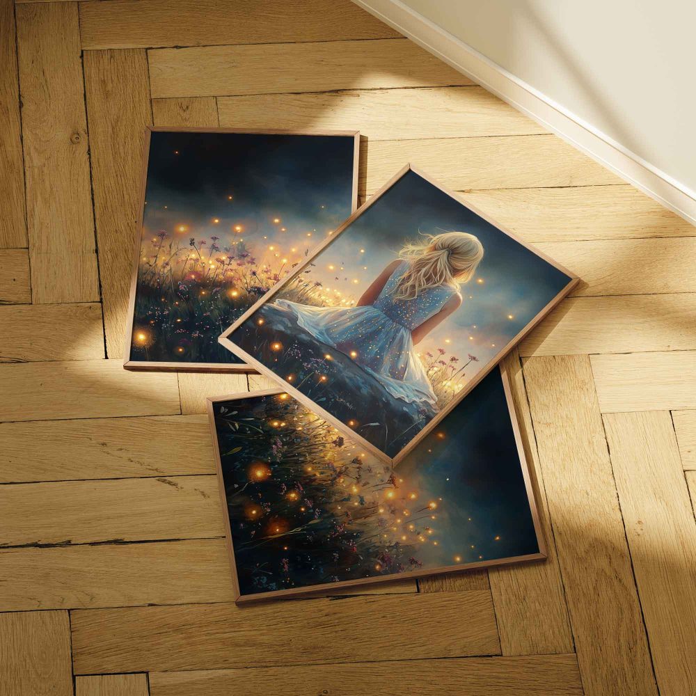 Terug naar collectie / Kinderkamer posters / Bloemen posters / Dromerig Meisje tussen Vuurvliegjes en Bloemen