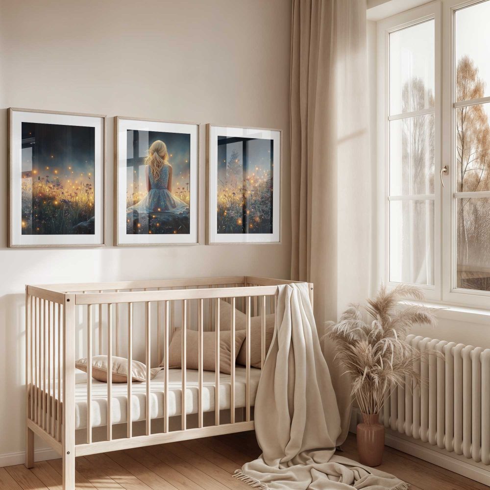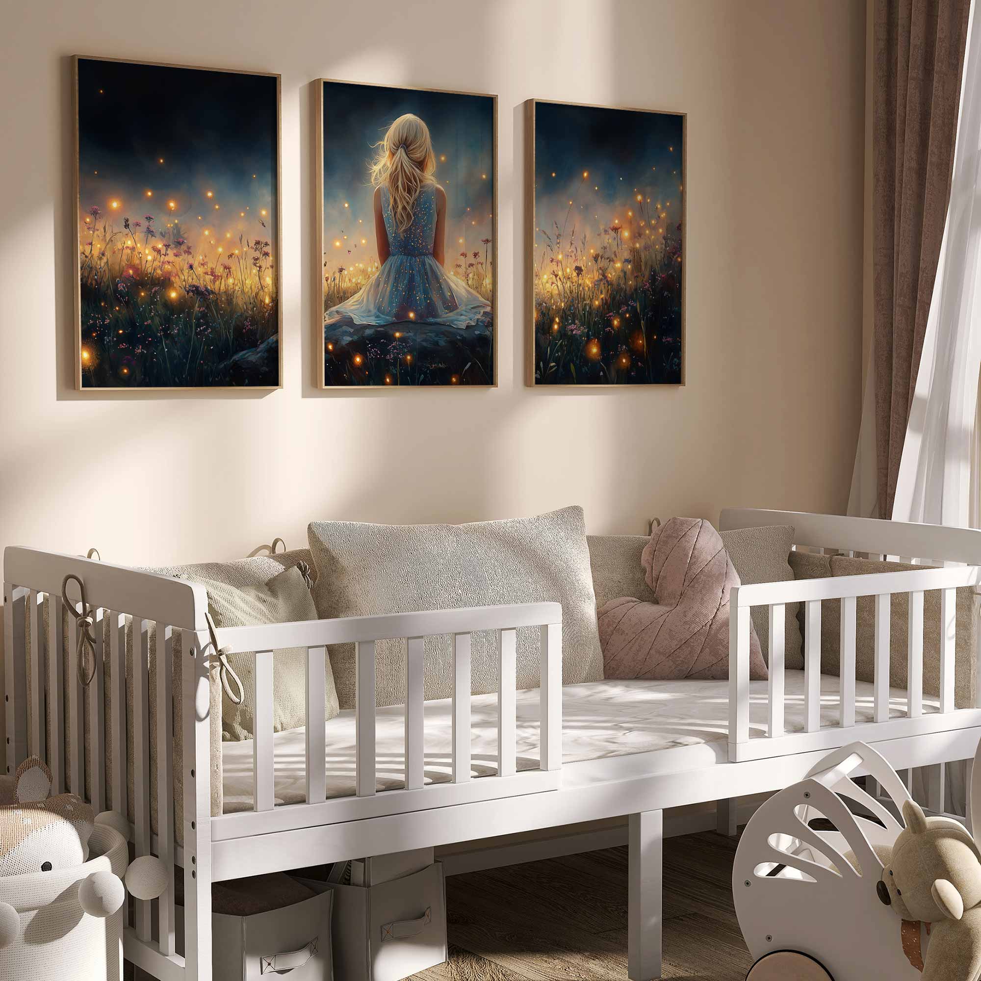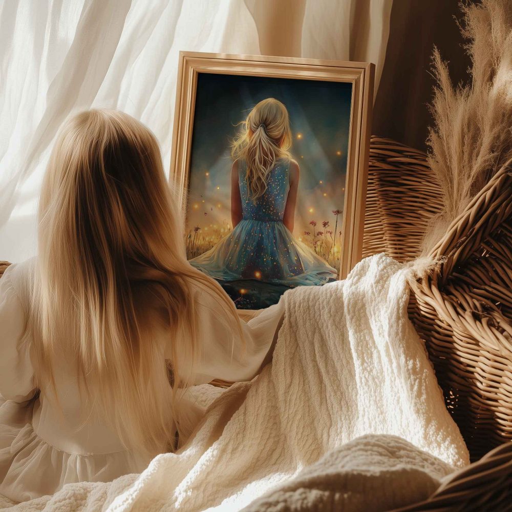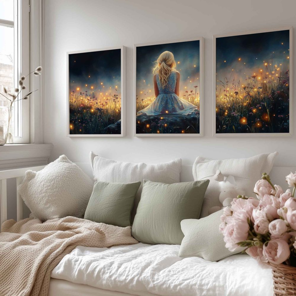 Terug naar collectie / Kinderkamer posters / Bloemen posters / Dromerig Meisje tussen Vuurvliegjes en Bloemen