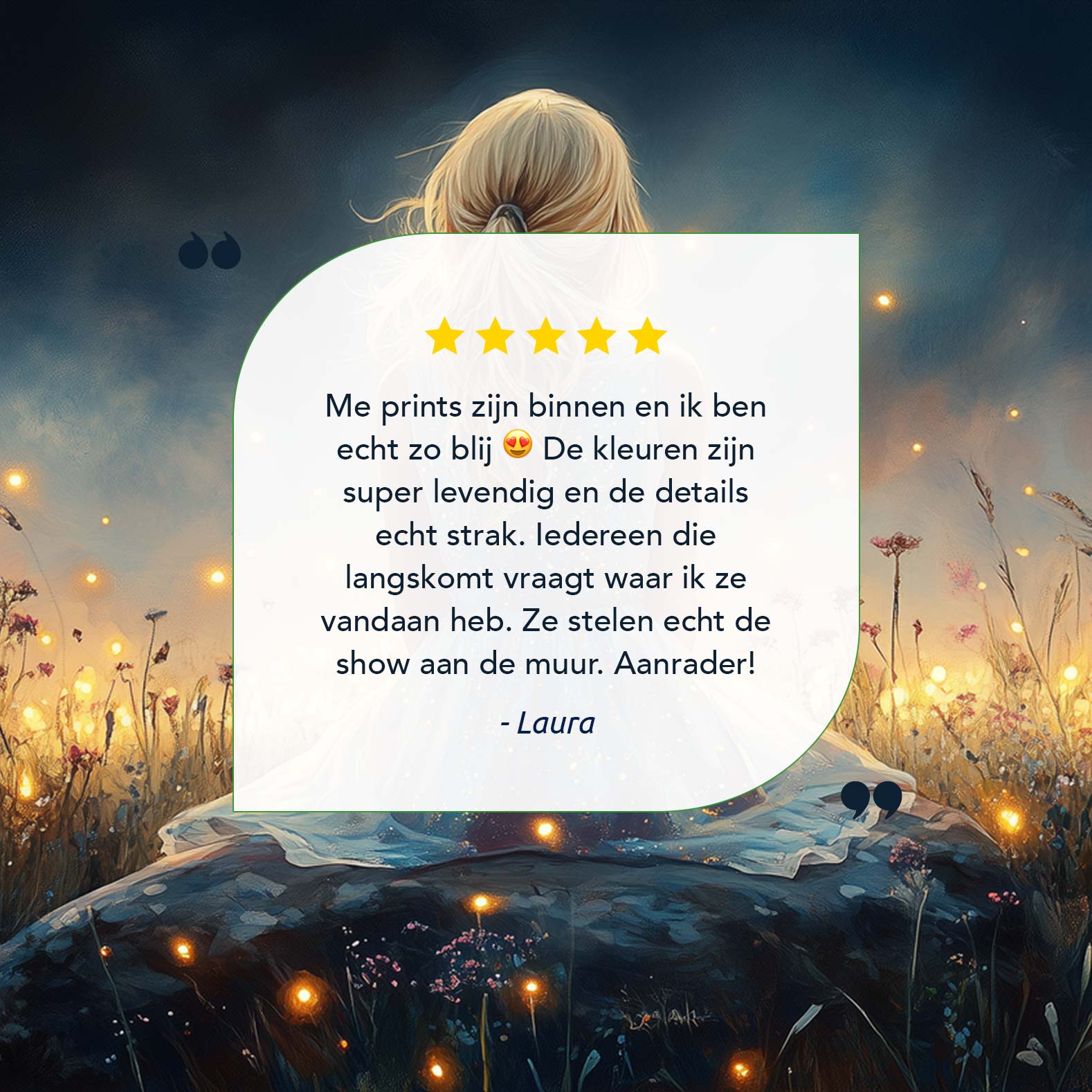 Dromerig Meisje tussen Vuurvliegjes en Bloemen