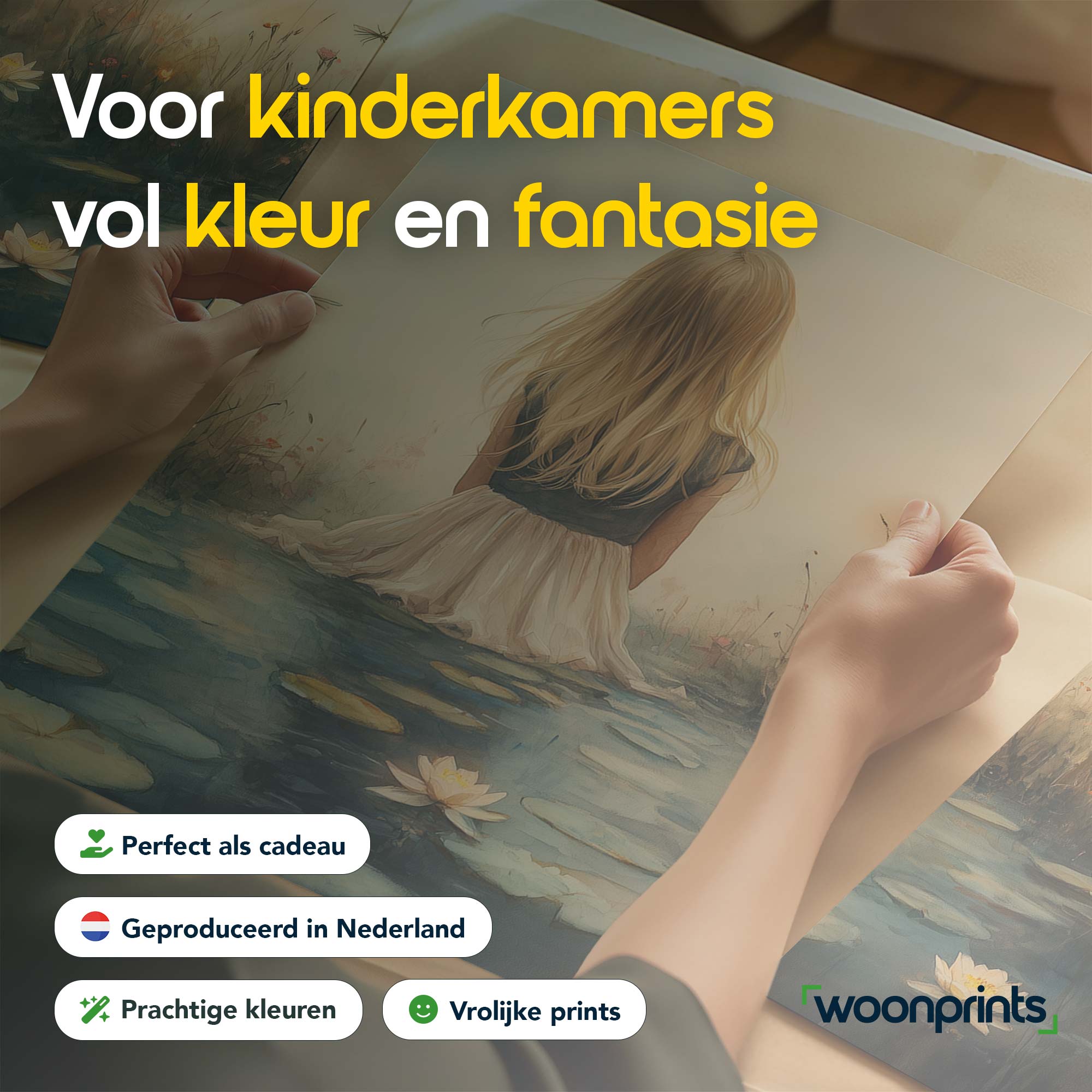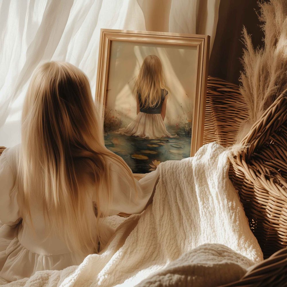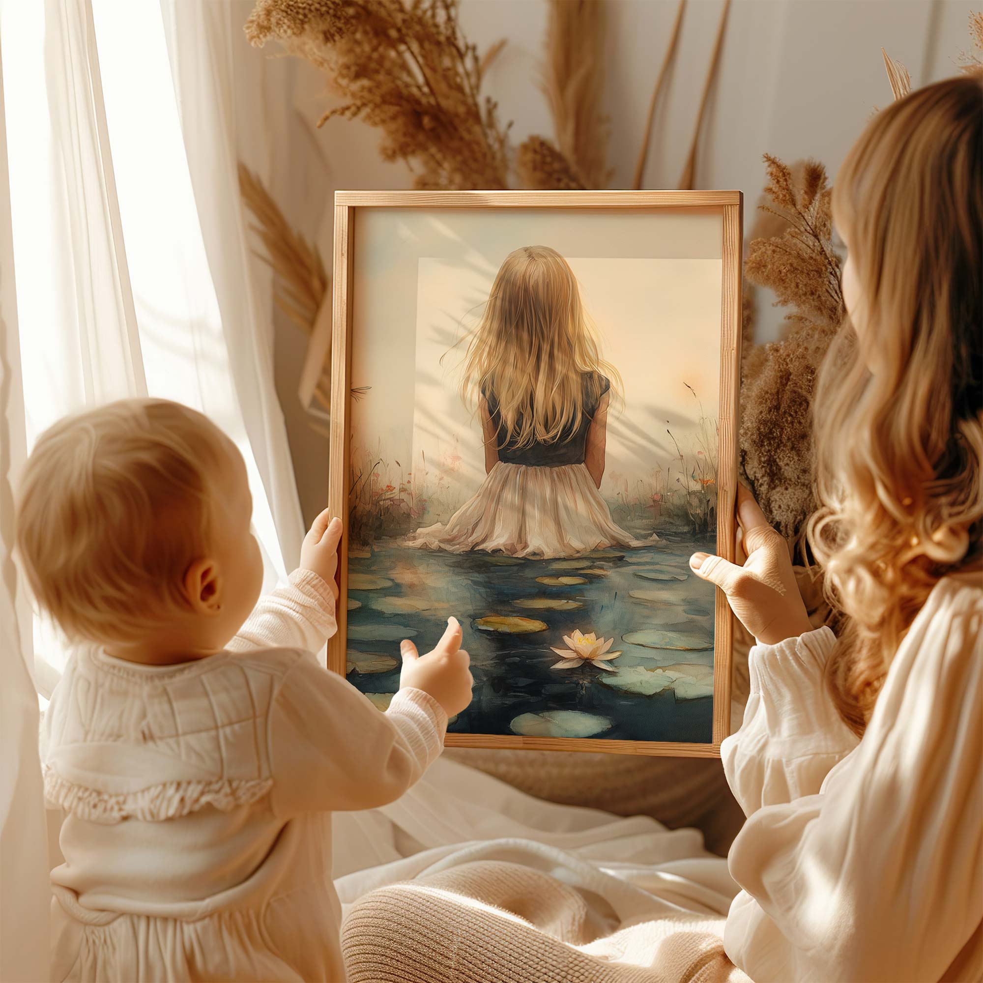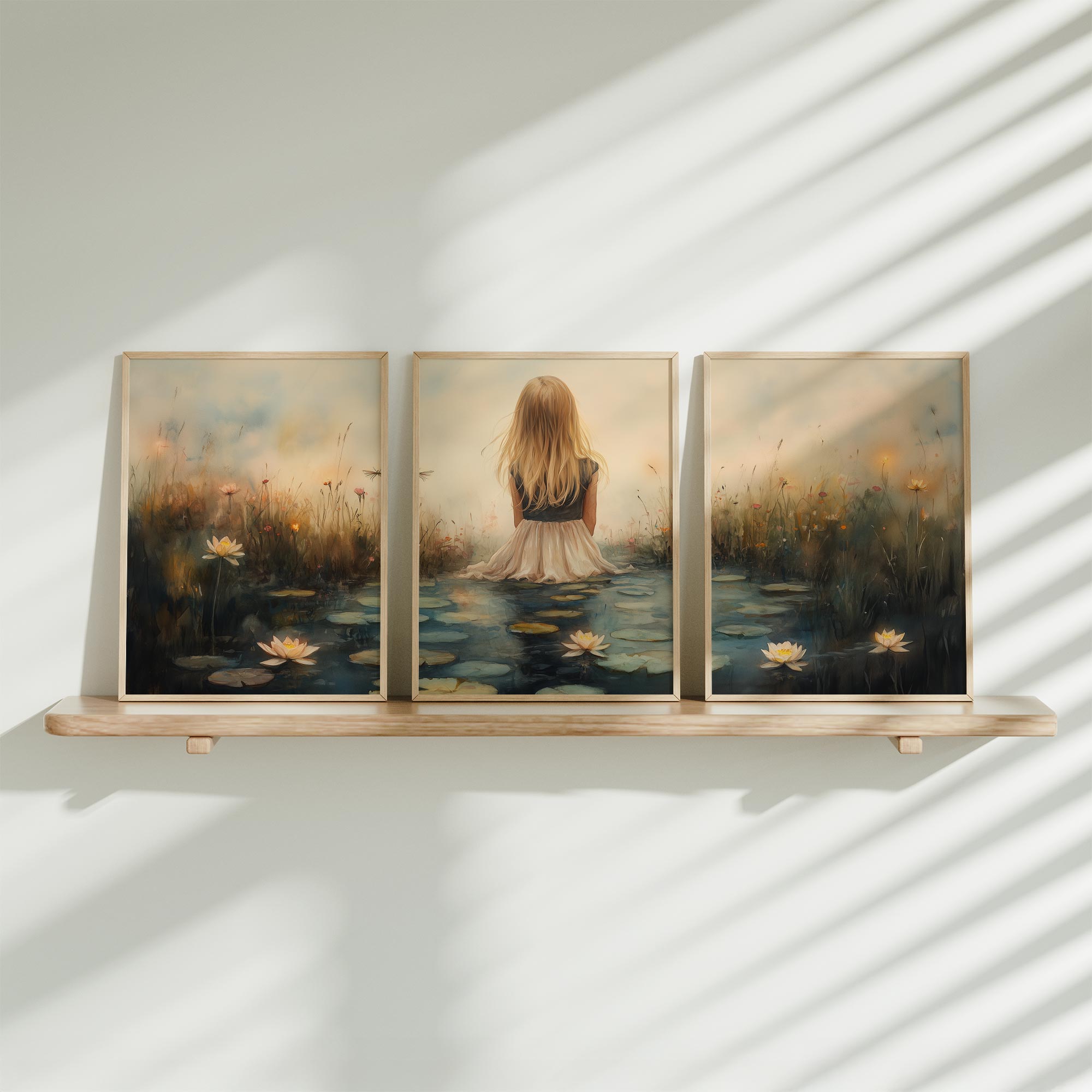 Terug naar collectie / Kinderkamer posters / Bloemen posters / Dromerig meisje tussen waterlelies en bloemen