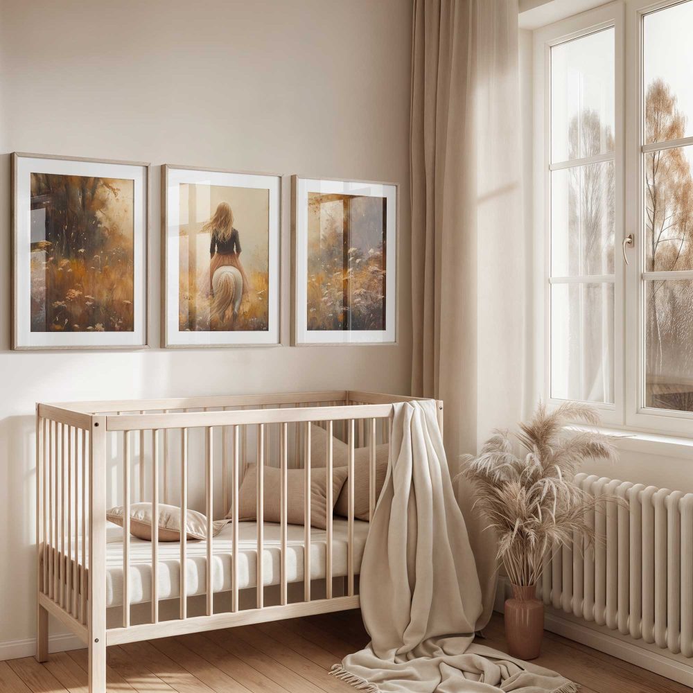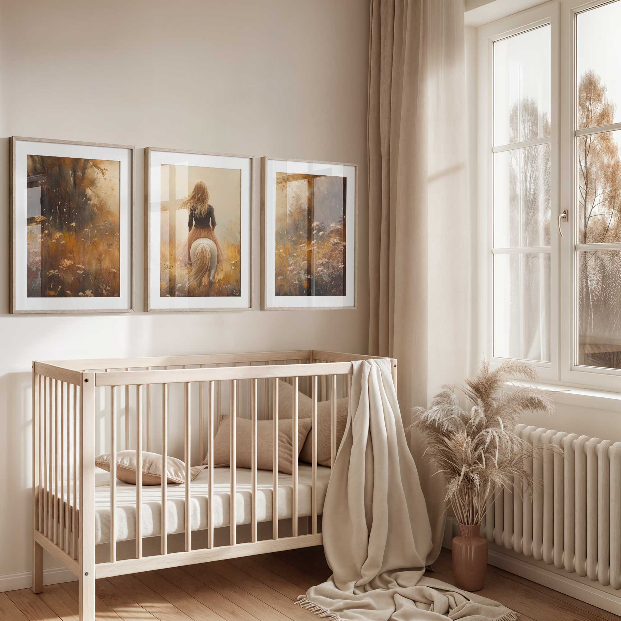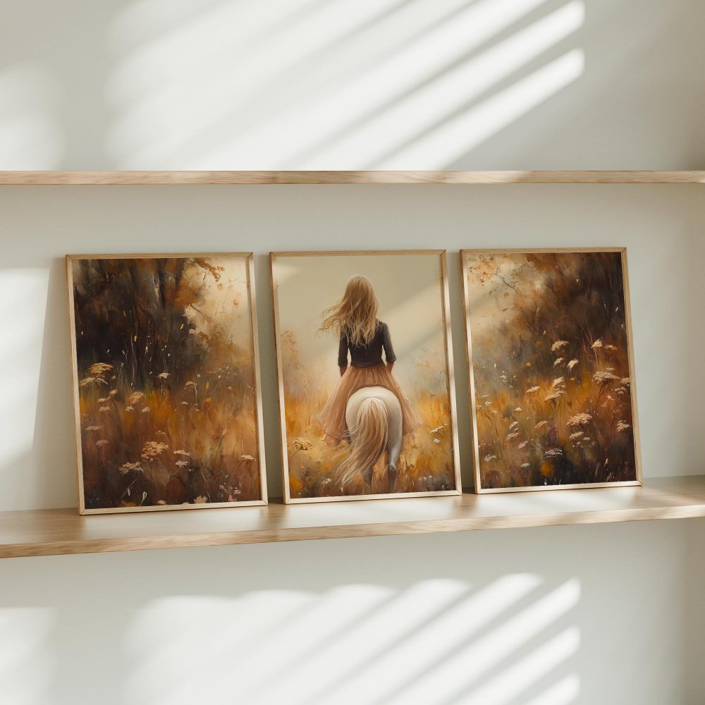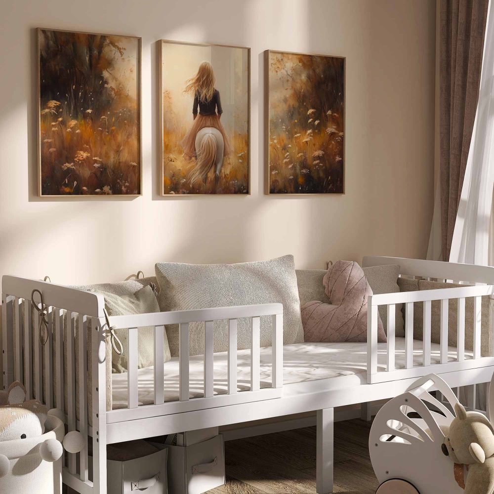 Terug naar collectie / Kinderkamer posters / Bloemen posters / Dromerig Paard in Bloeiend Landschap – Roze Sfeer