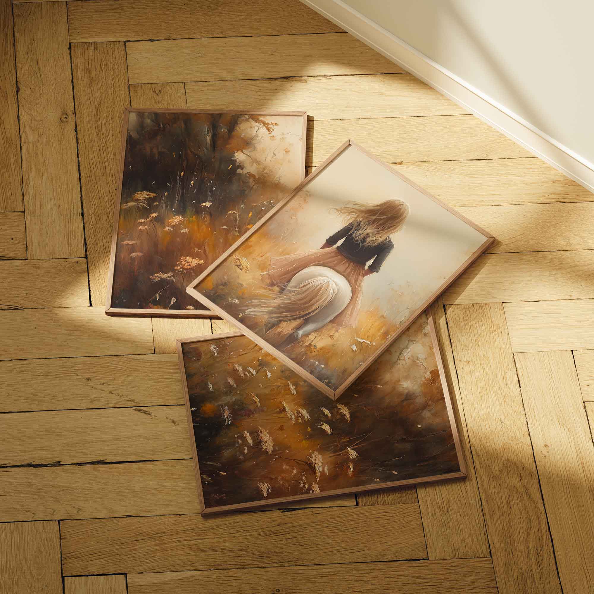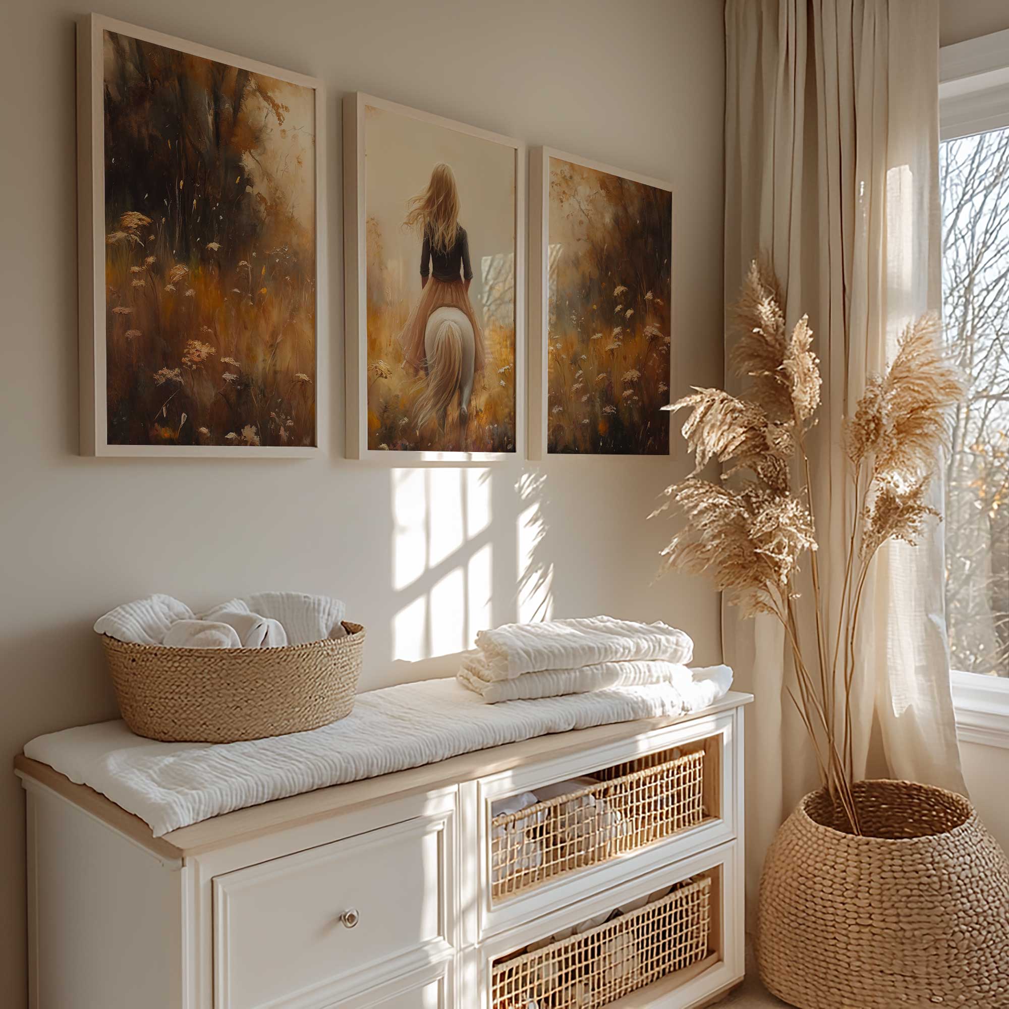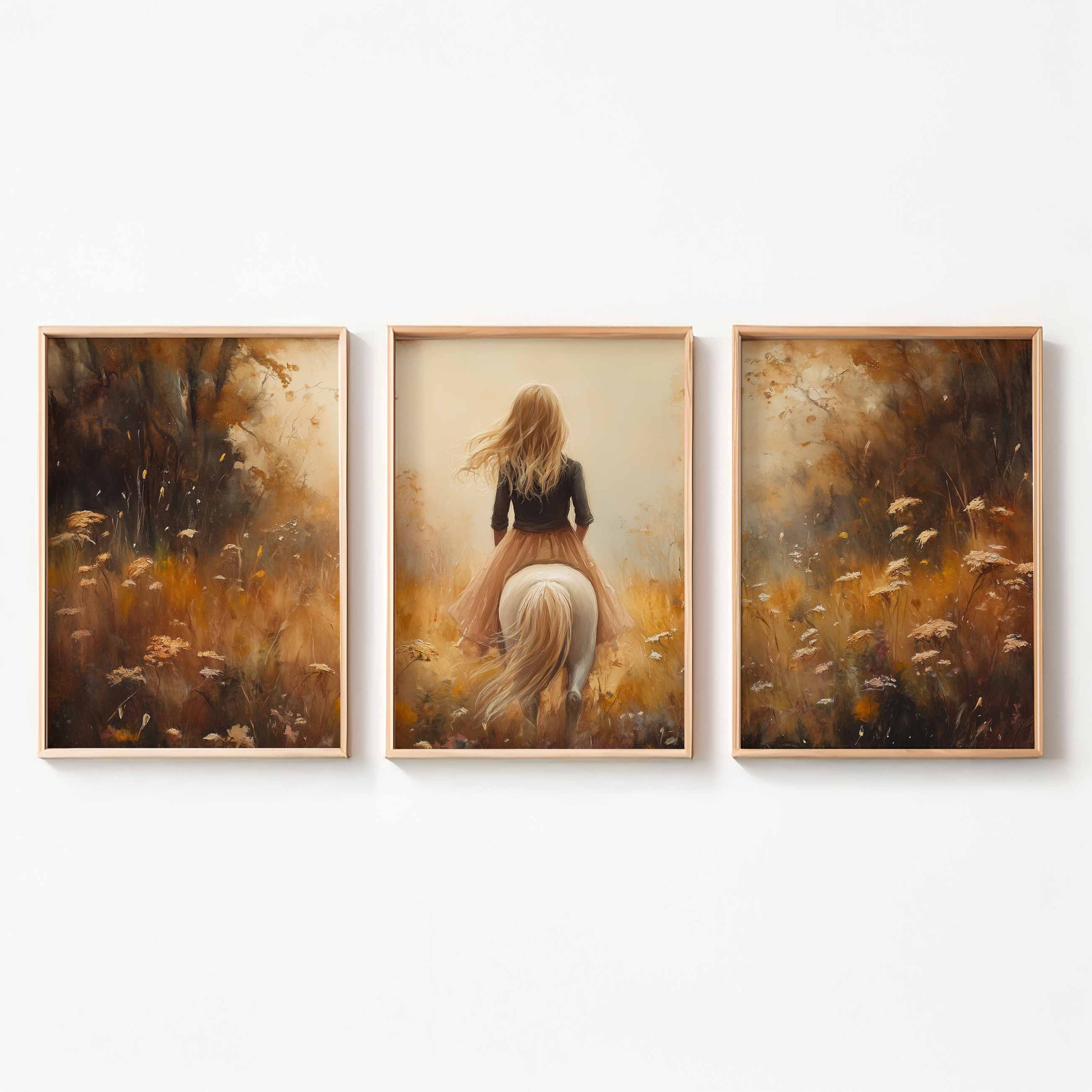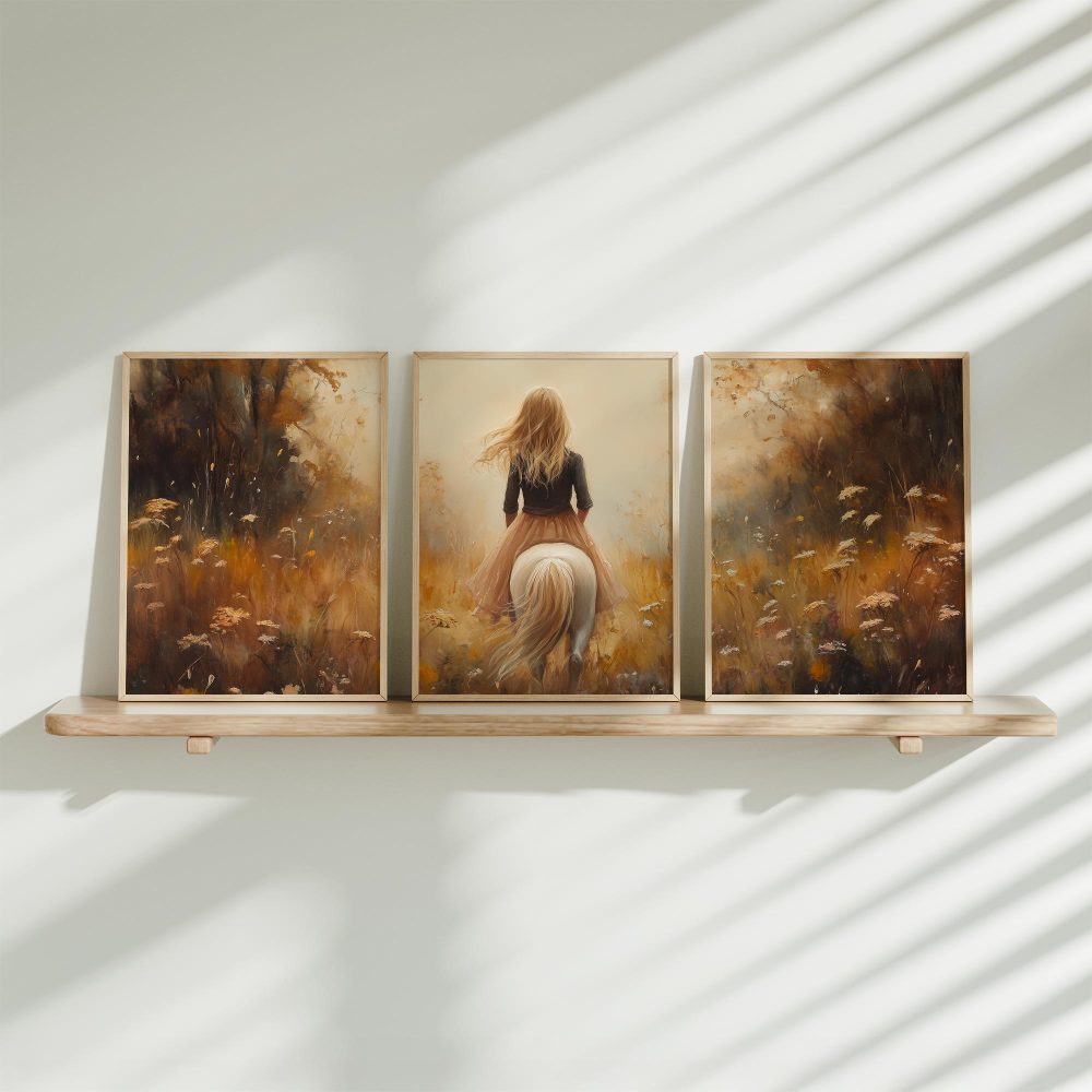 Terug naar collectie / Kinderkamer posters / Bloemen posters / Dromerig Paard in Bloeiend Landschap – Roze Sfeer