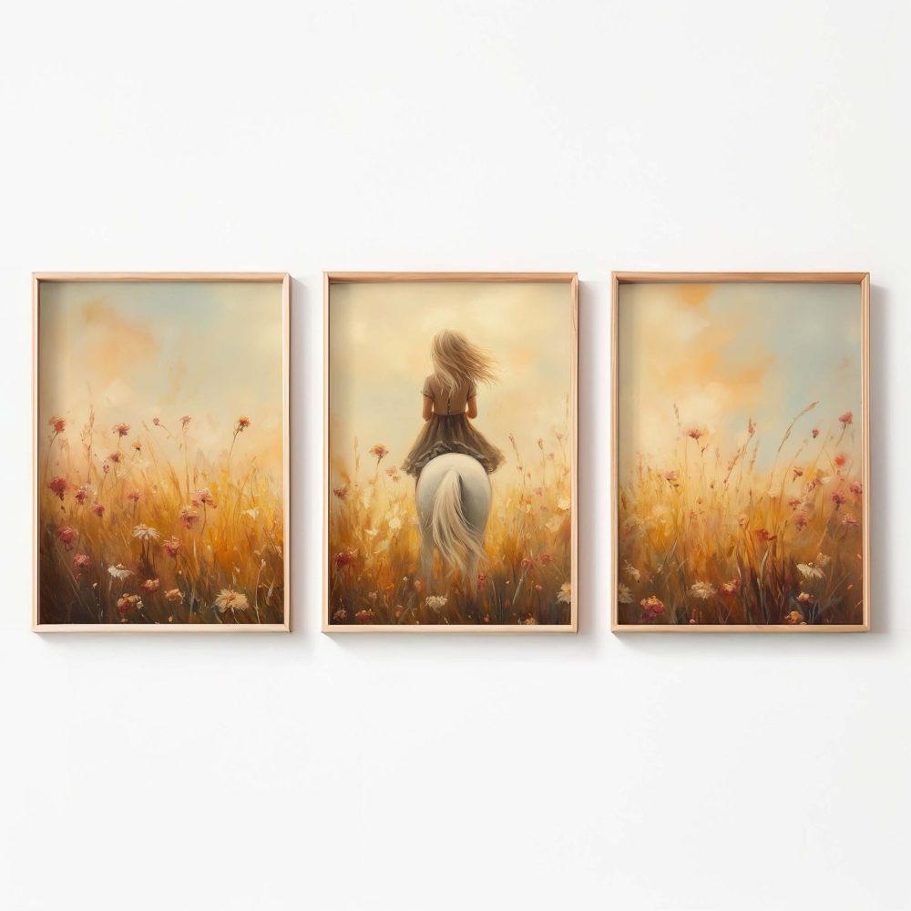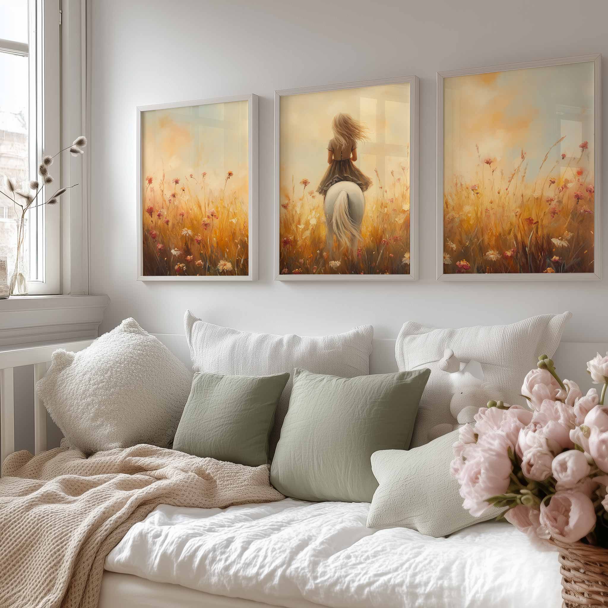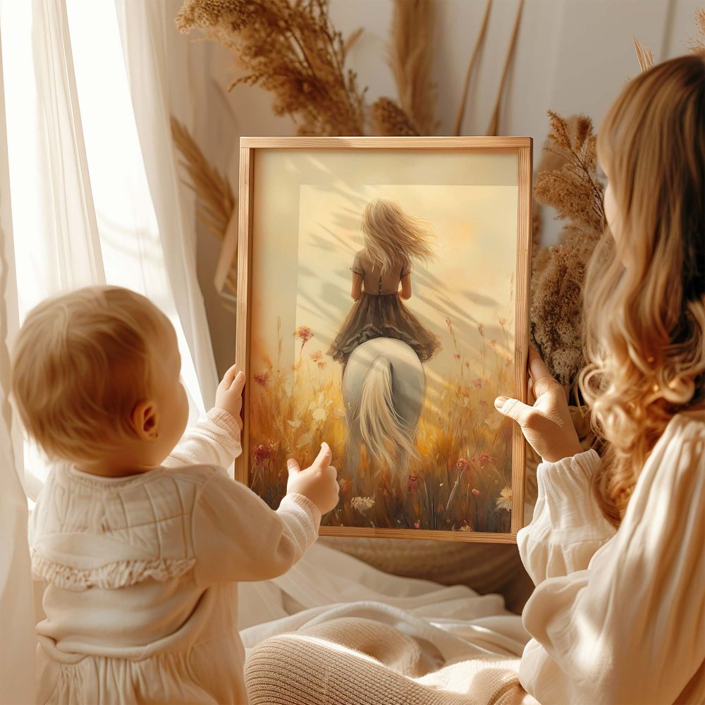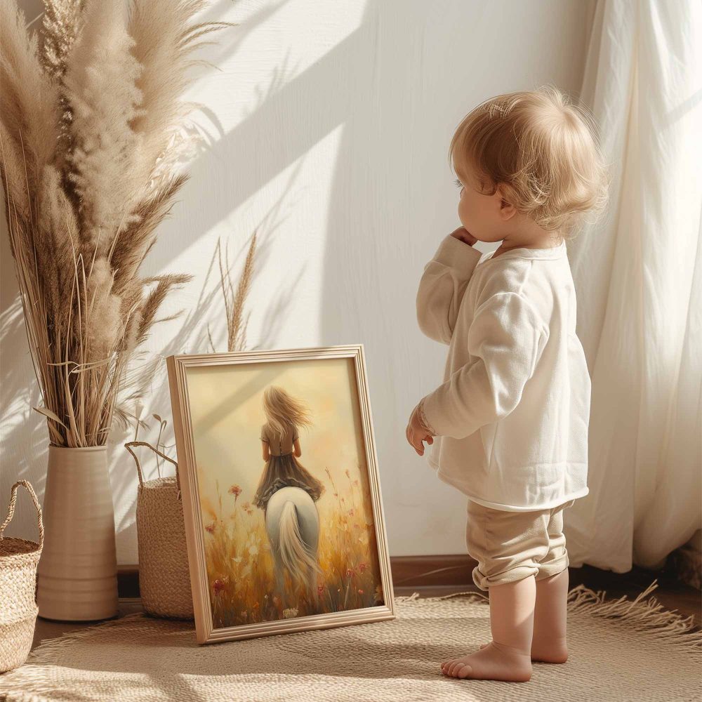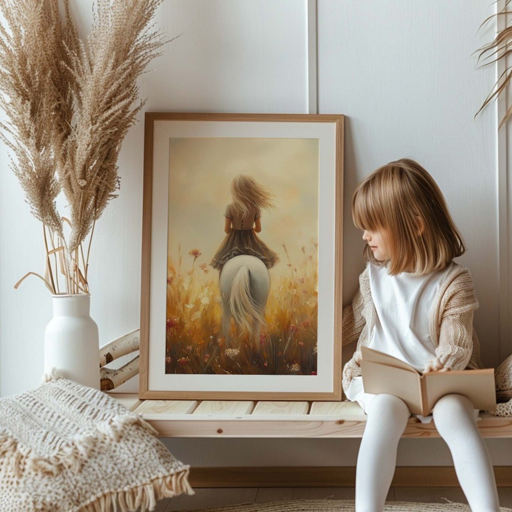 Terug naar collectie / Kinderkamer posters / Avontuurlijk posters / Dromerig Paard in Bloemenveld voor Meisjes