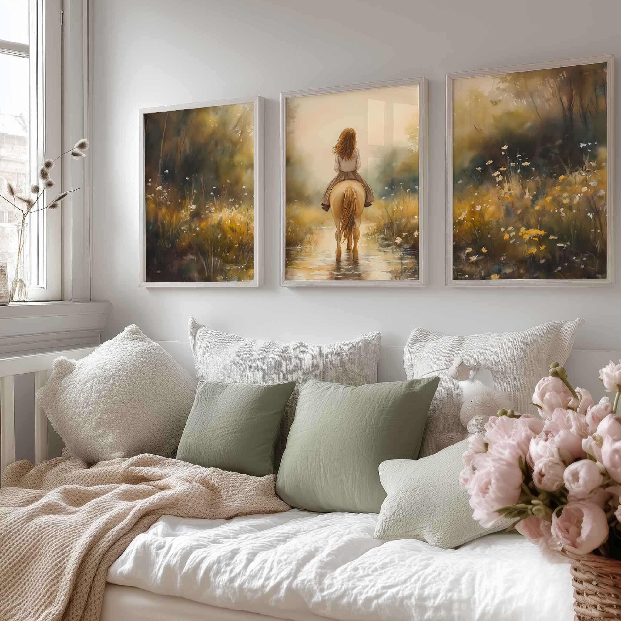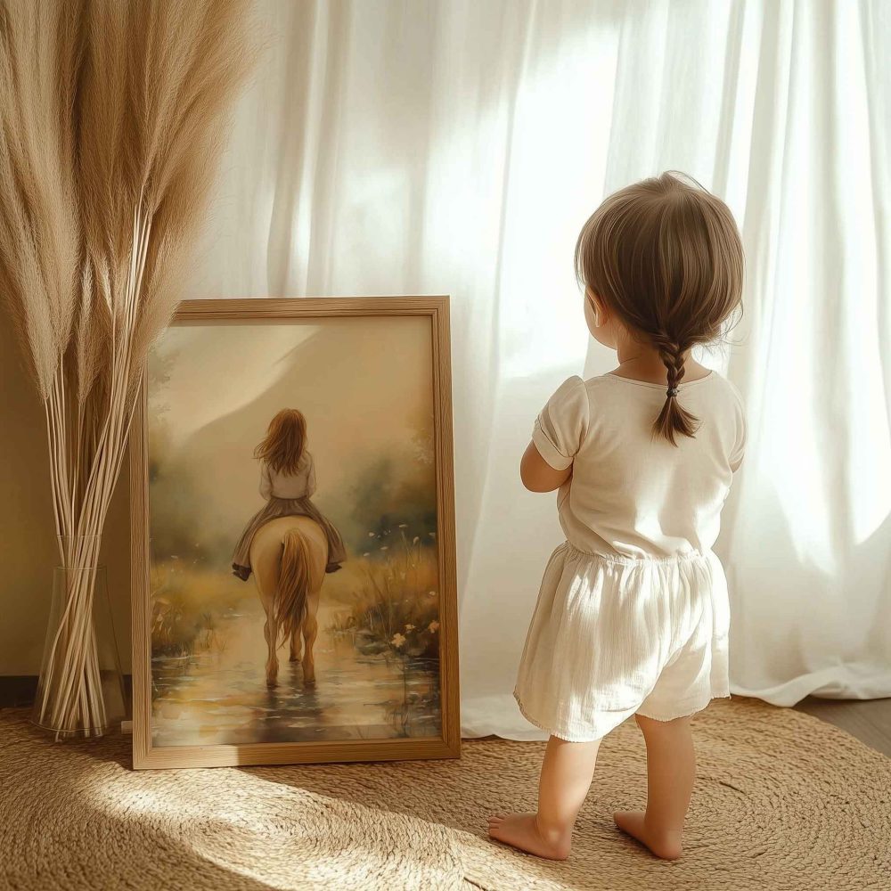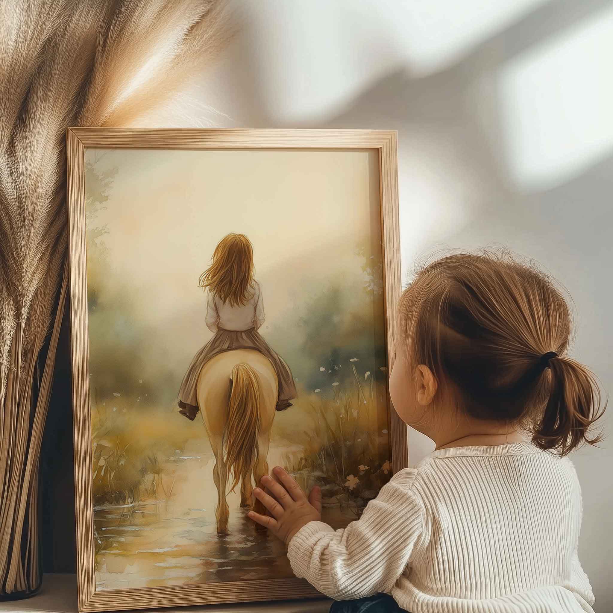 Terug naar collectie / Kinderkamer posters / Bloemen posters / Dromerig Paard in een Bloemenveld