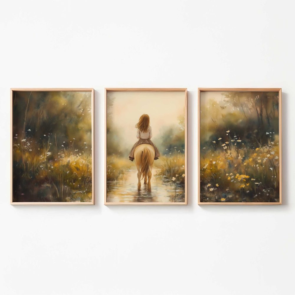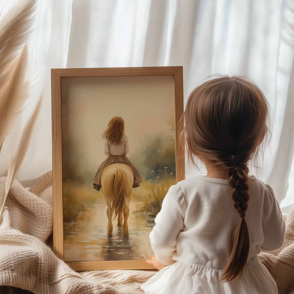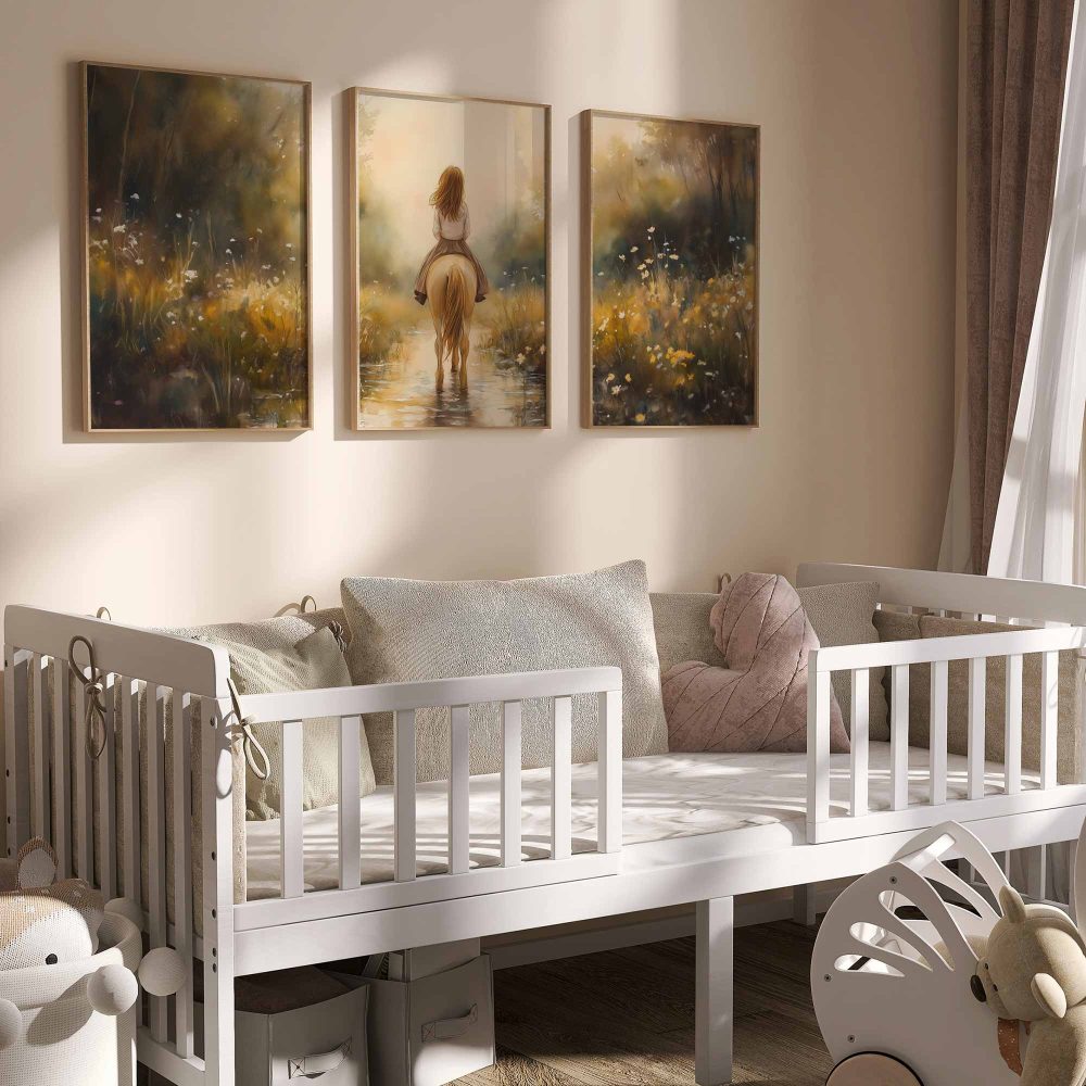 Terug naar collectie / Kinderkamer posters / Bloemen posters / Dromerig Paard in een Bloemenveld