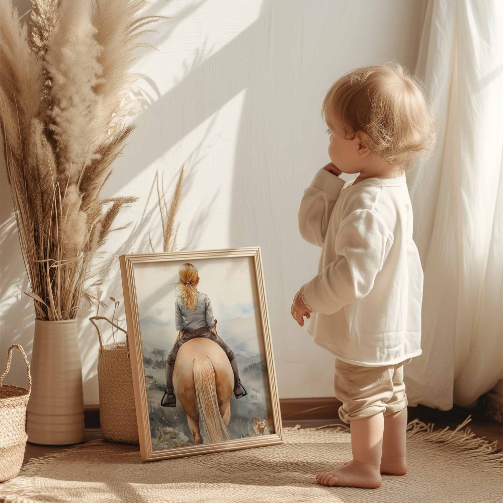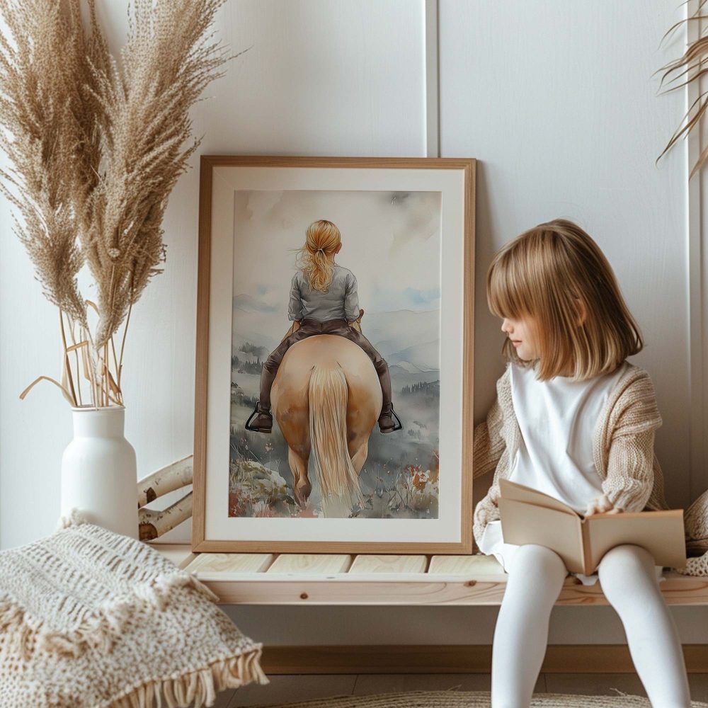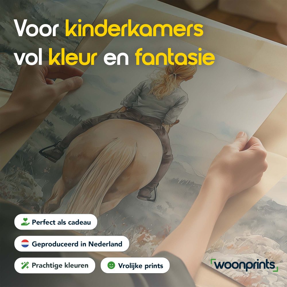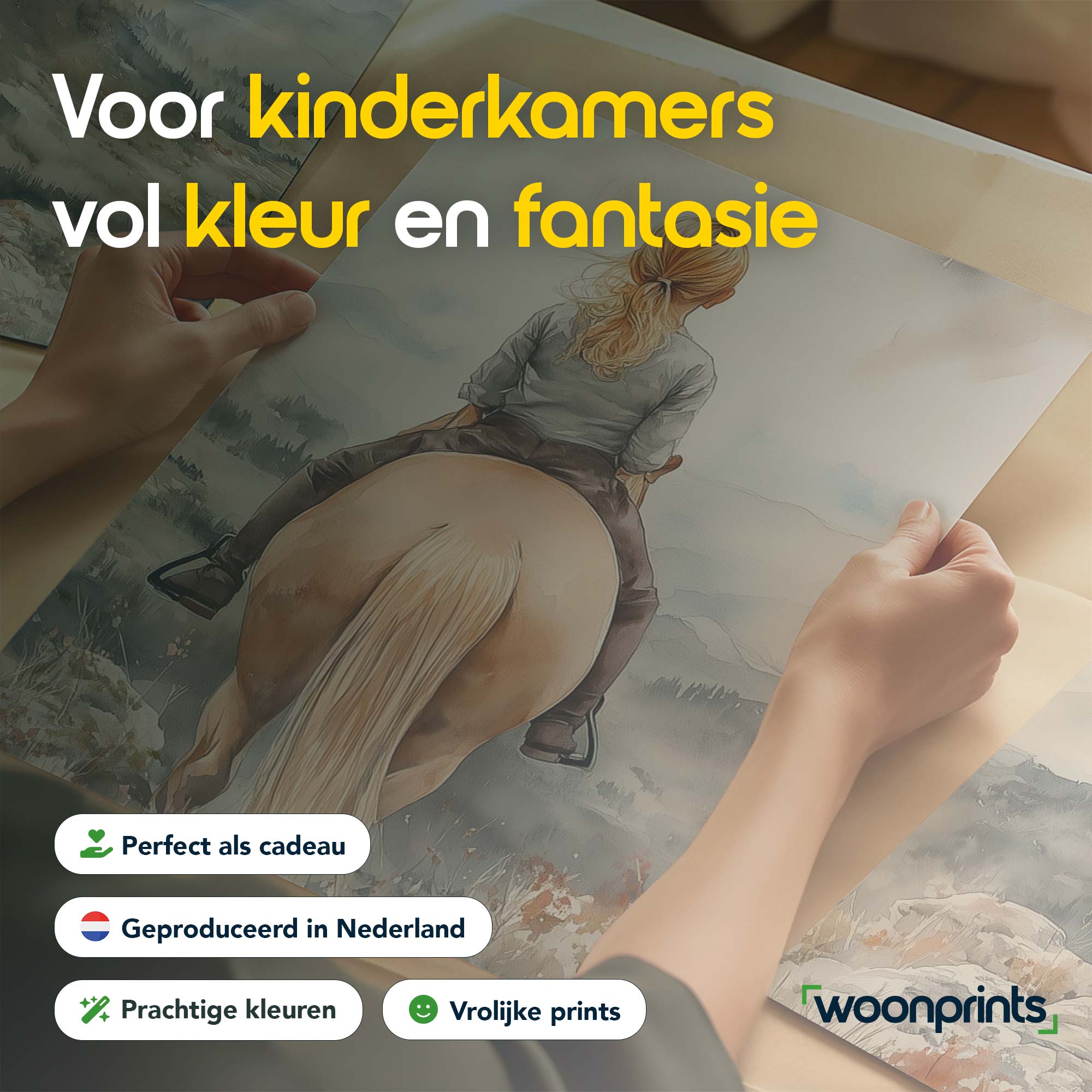 Terug naar collectie / Kinderkamer posters / Avontuurlijk posters / Dromerig Paardrijavontuur in Berglandschap