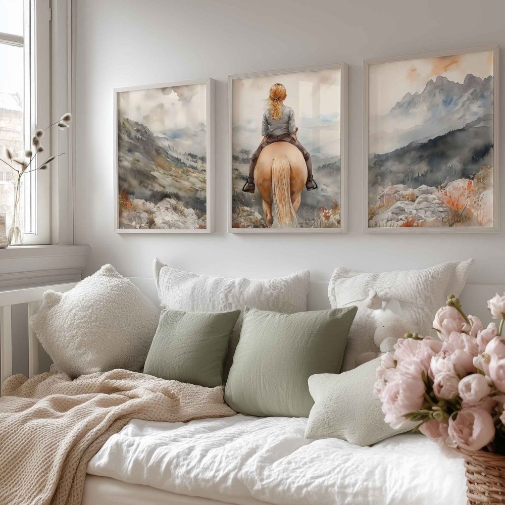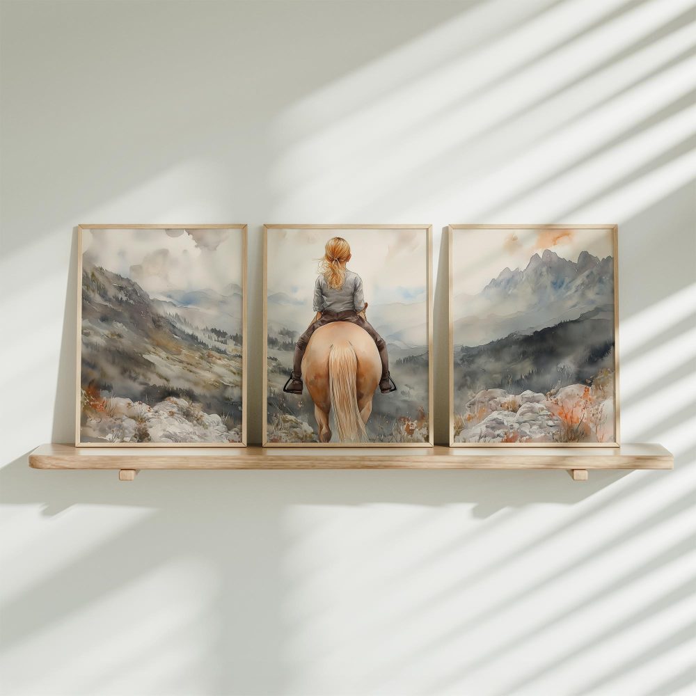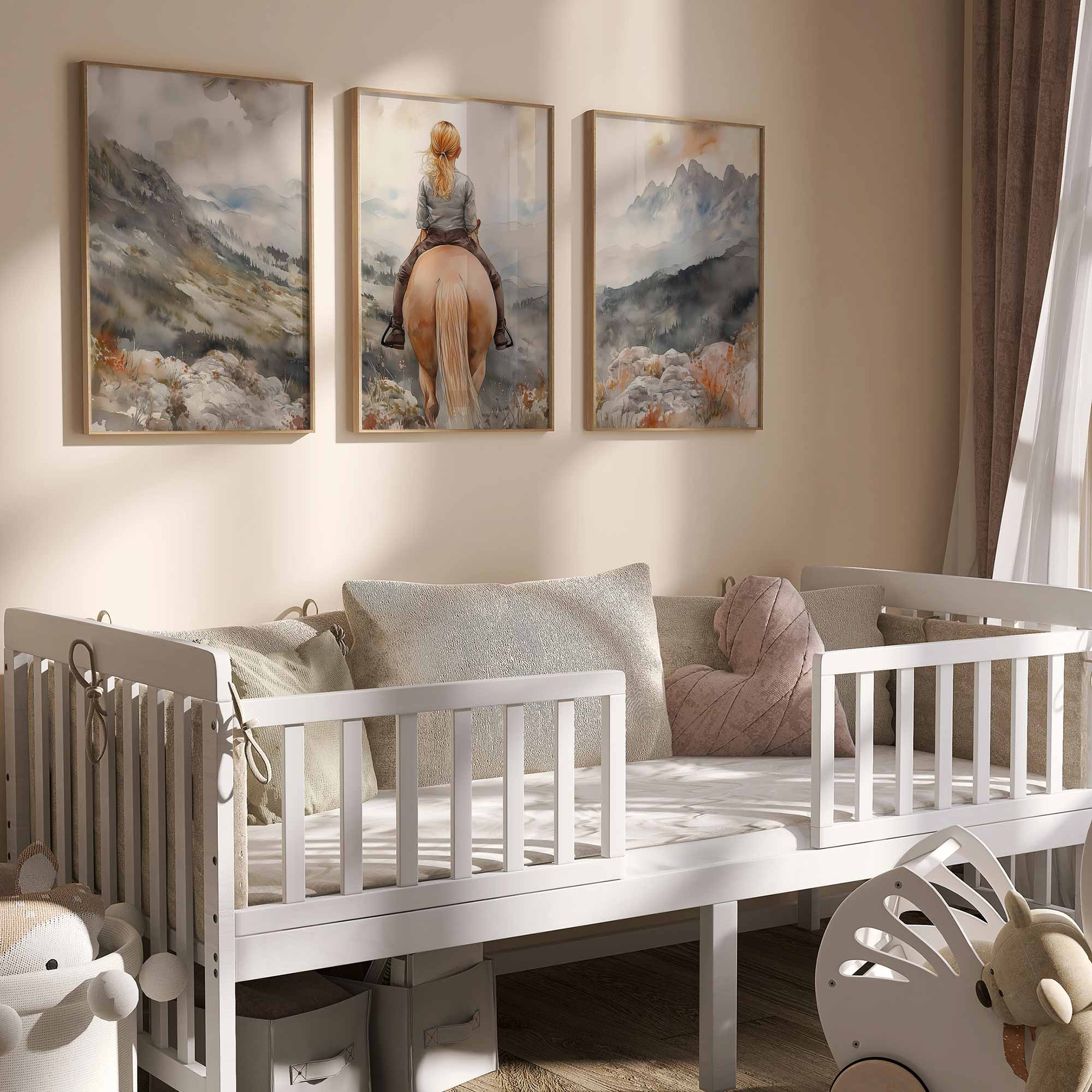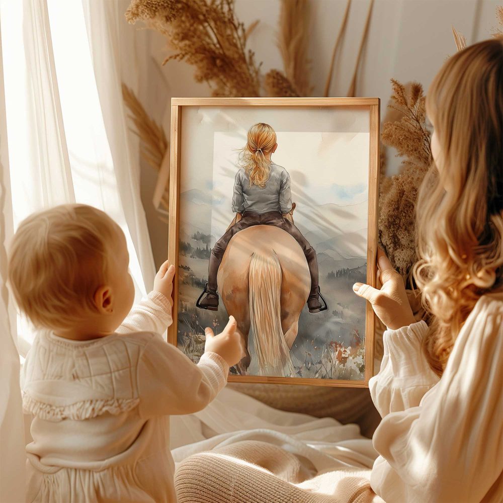 Terug naar collectie / Kinderkamer posters / Avontuurlijk posters / Dromerig Paardrijavontuur in Berglandschap